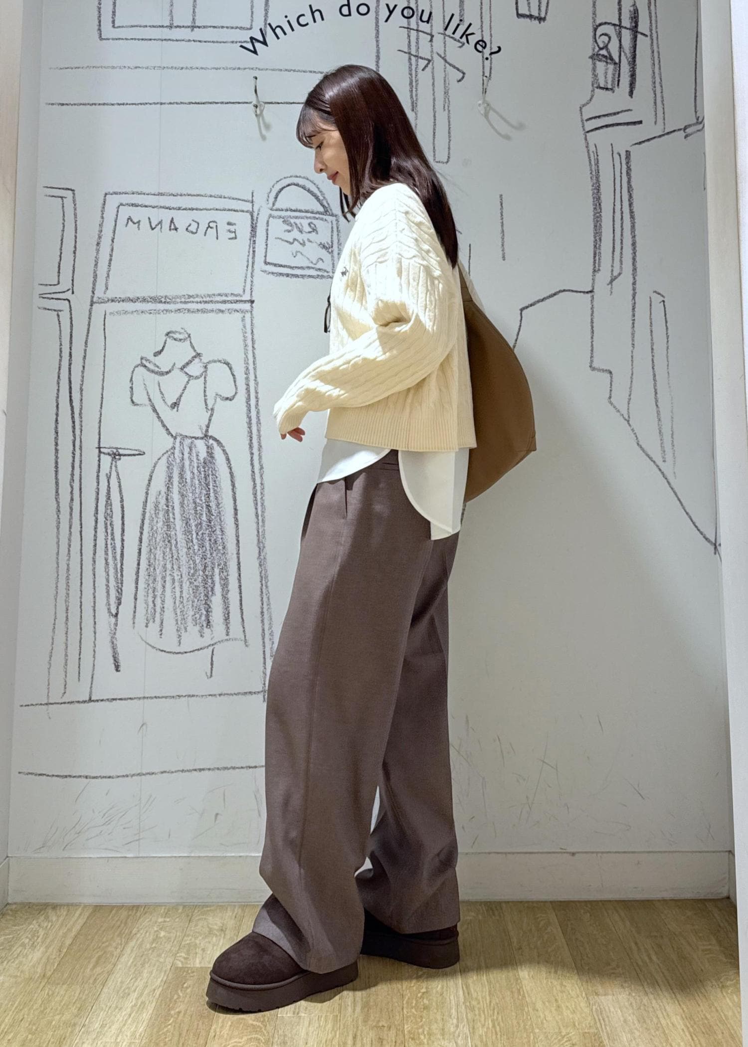 ROPÉ PICNICレディハンサムシリーズ ウールライクウエストタックセミワイドパンツ/セットアップ対応ベージュ系 / M¥5,489レビュー前回も人気だったパンツが再登場♪センタープレスやハリのある生地感は美シルエットと高見えを両立してくれます。162㎝でローヒールと合わせると丁度いいバランスで履けました。