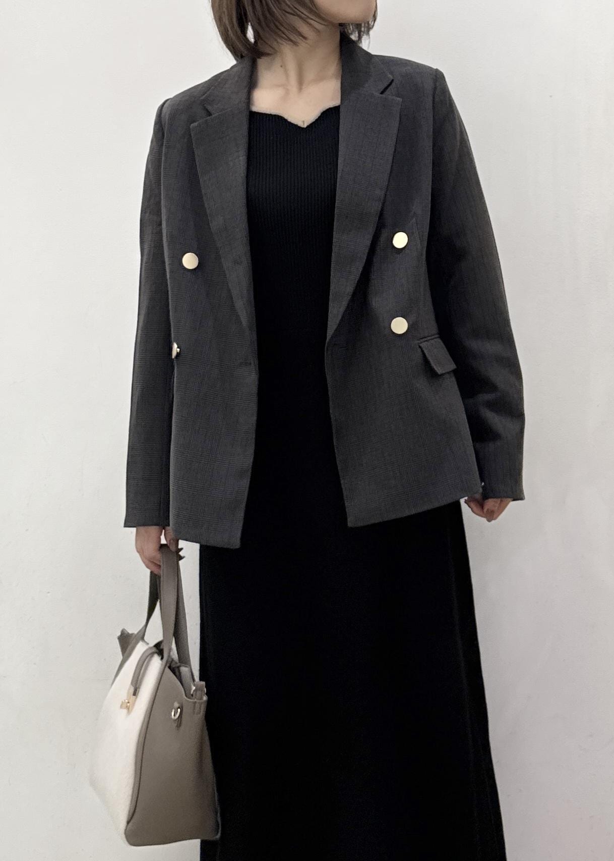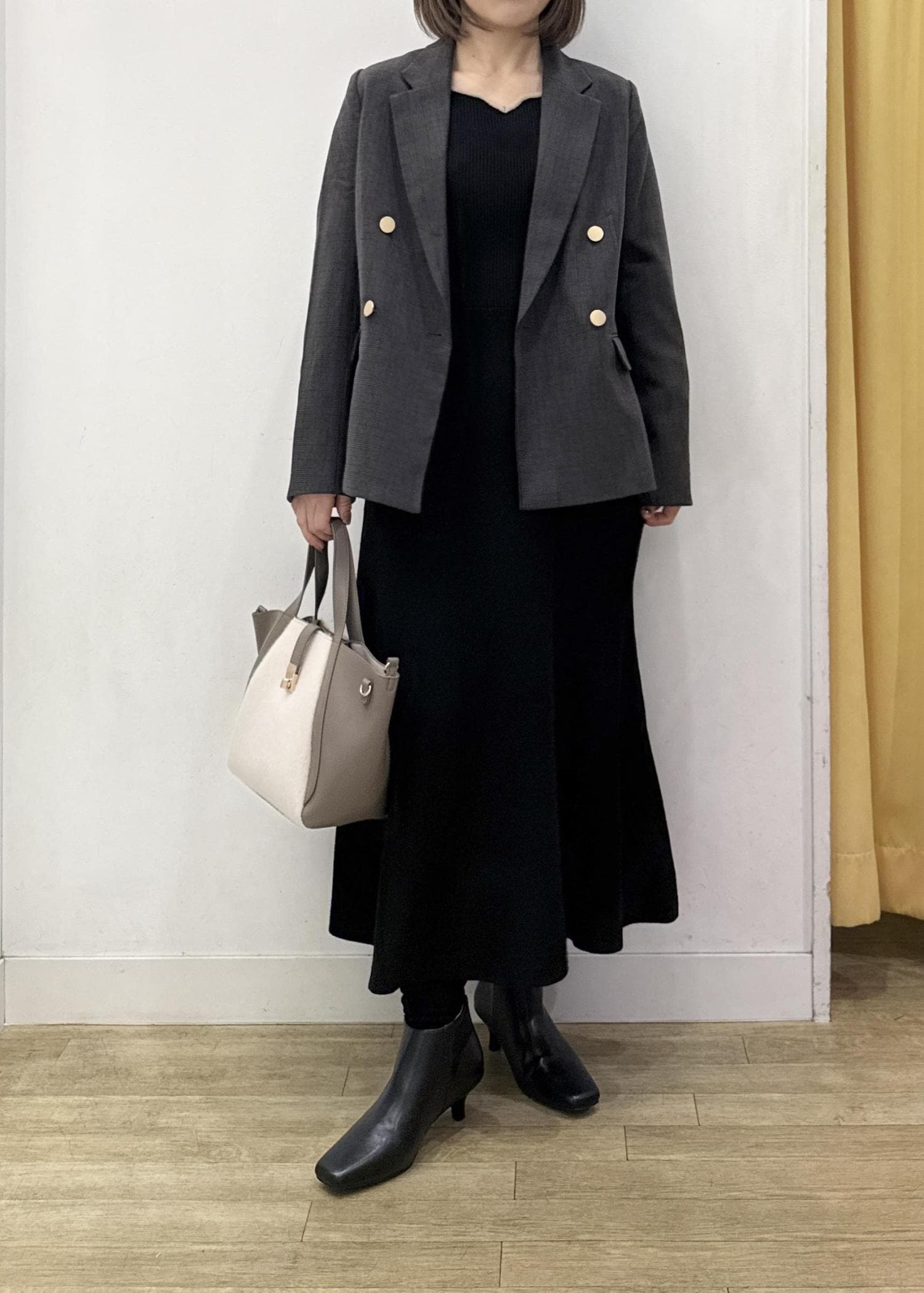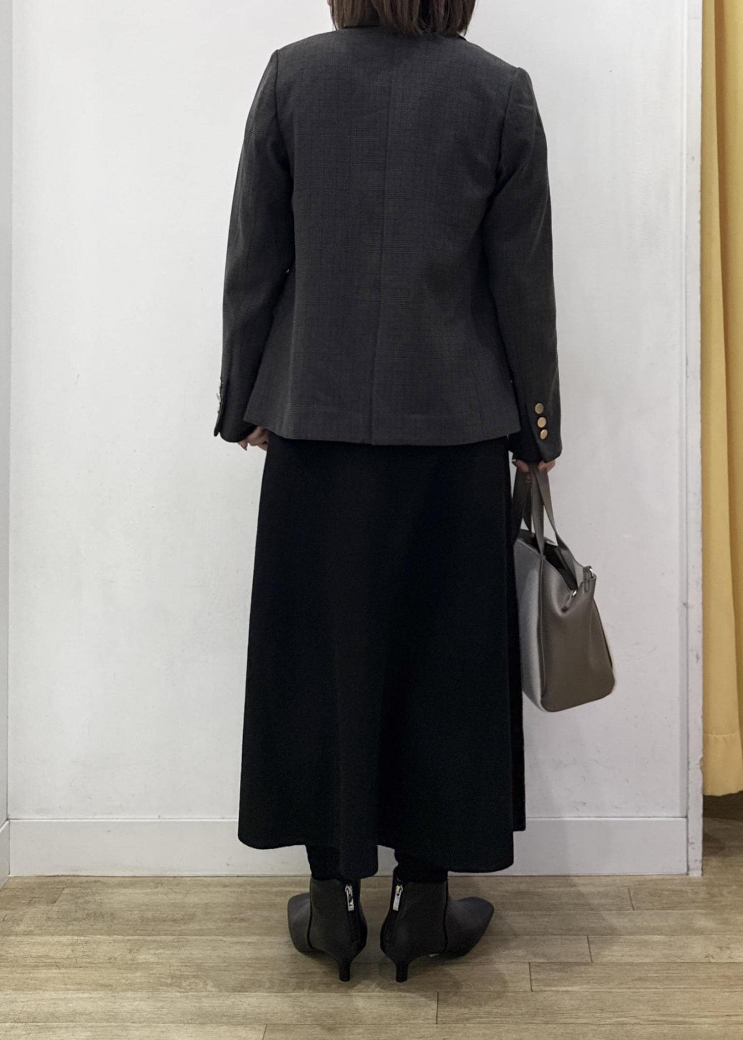 着丈はヒップにかかるぐらいの長さで、スカート、パンツどちらにも合わせやすい着丈です。 -