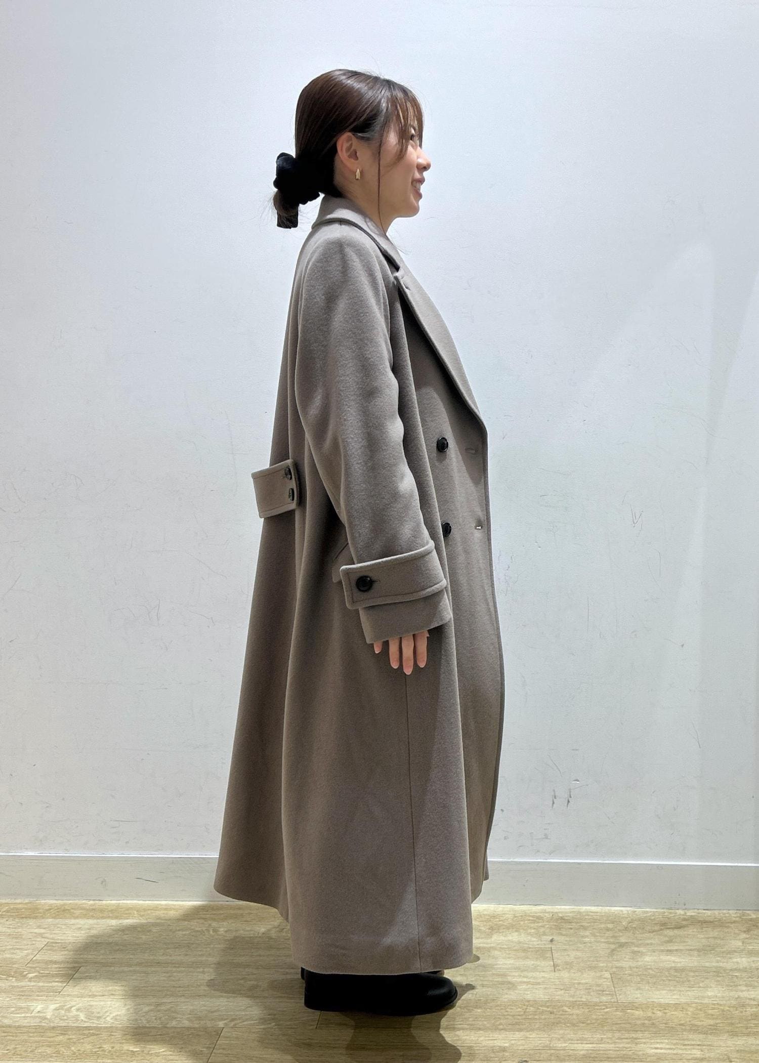 あたたかいウール混のコートをメインに、インナーはコンパクトなシルエットでまとめました!