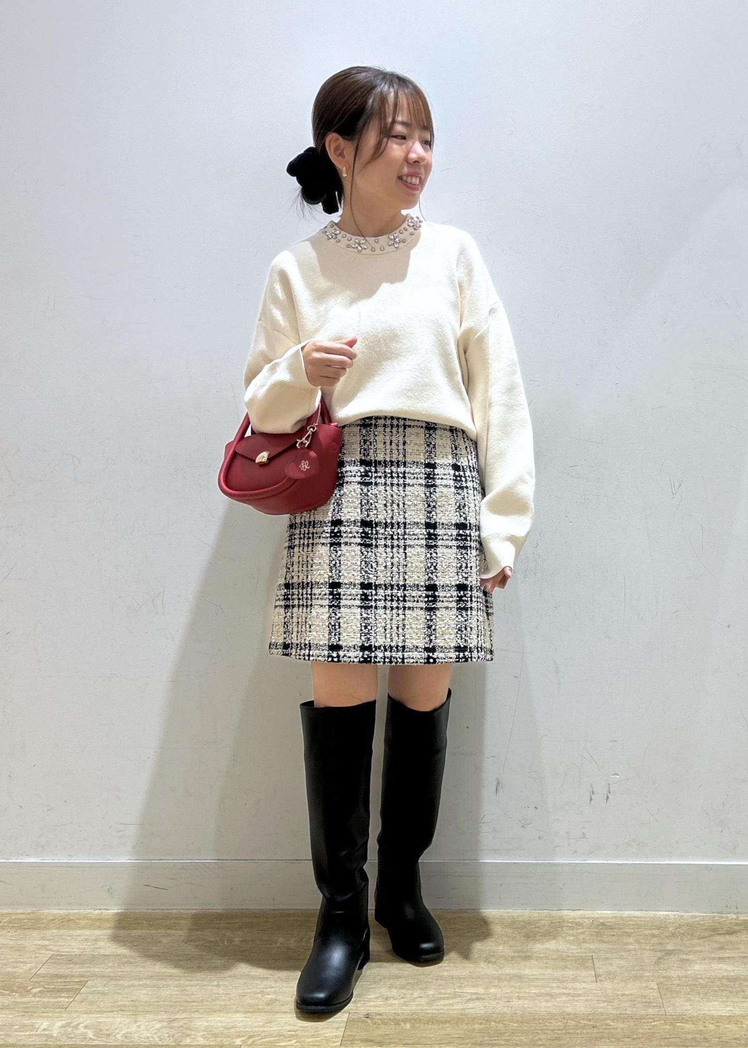 クリスマスシーズンのお出かけや、きれいめシーンにもオススメなコーデです◎