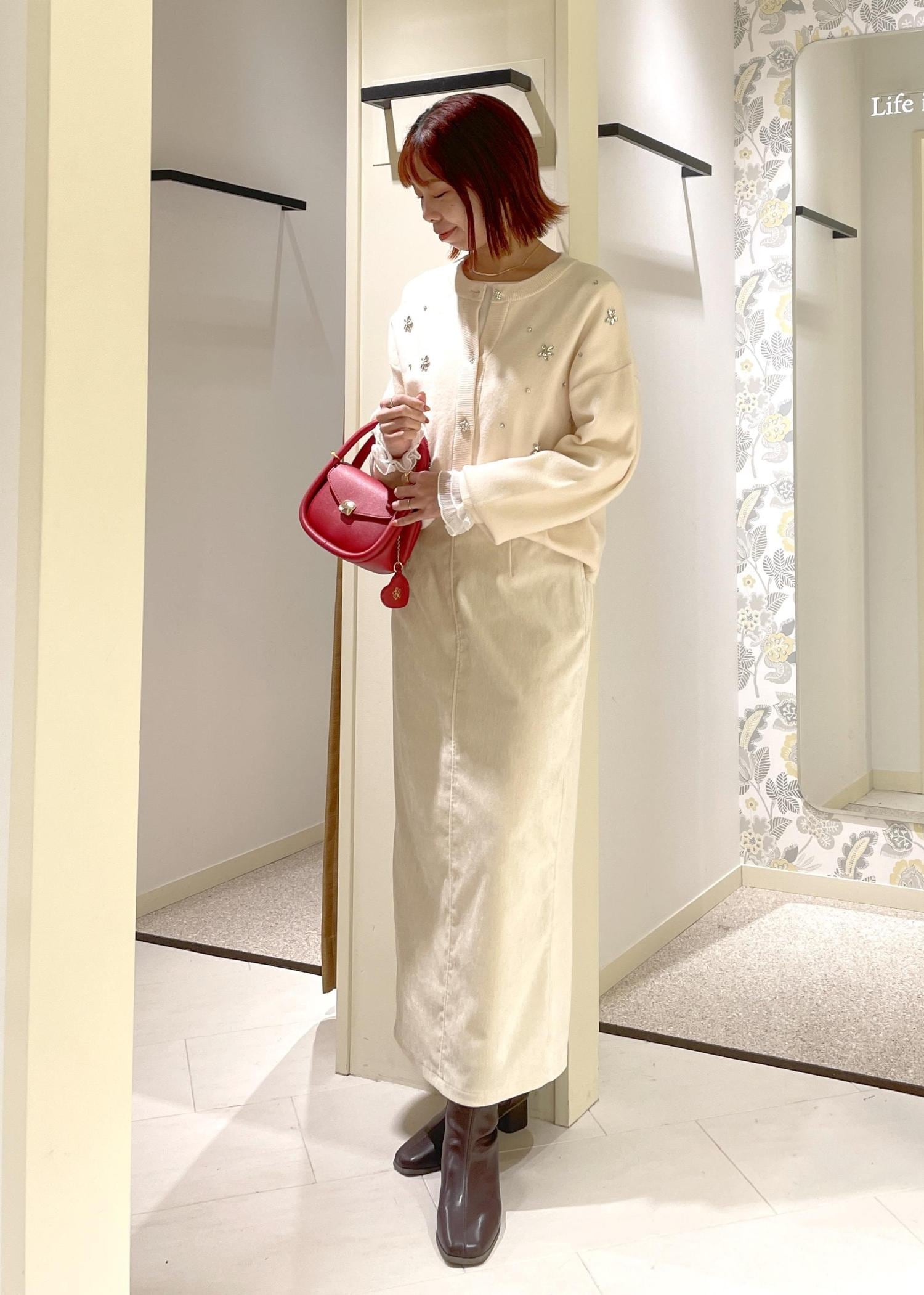ビジューのキラッと感がホリデーシーズンにもピッタリで女性らしくキマるカーディガン!