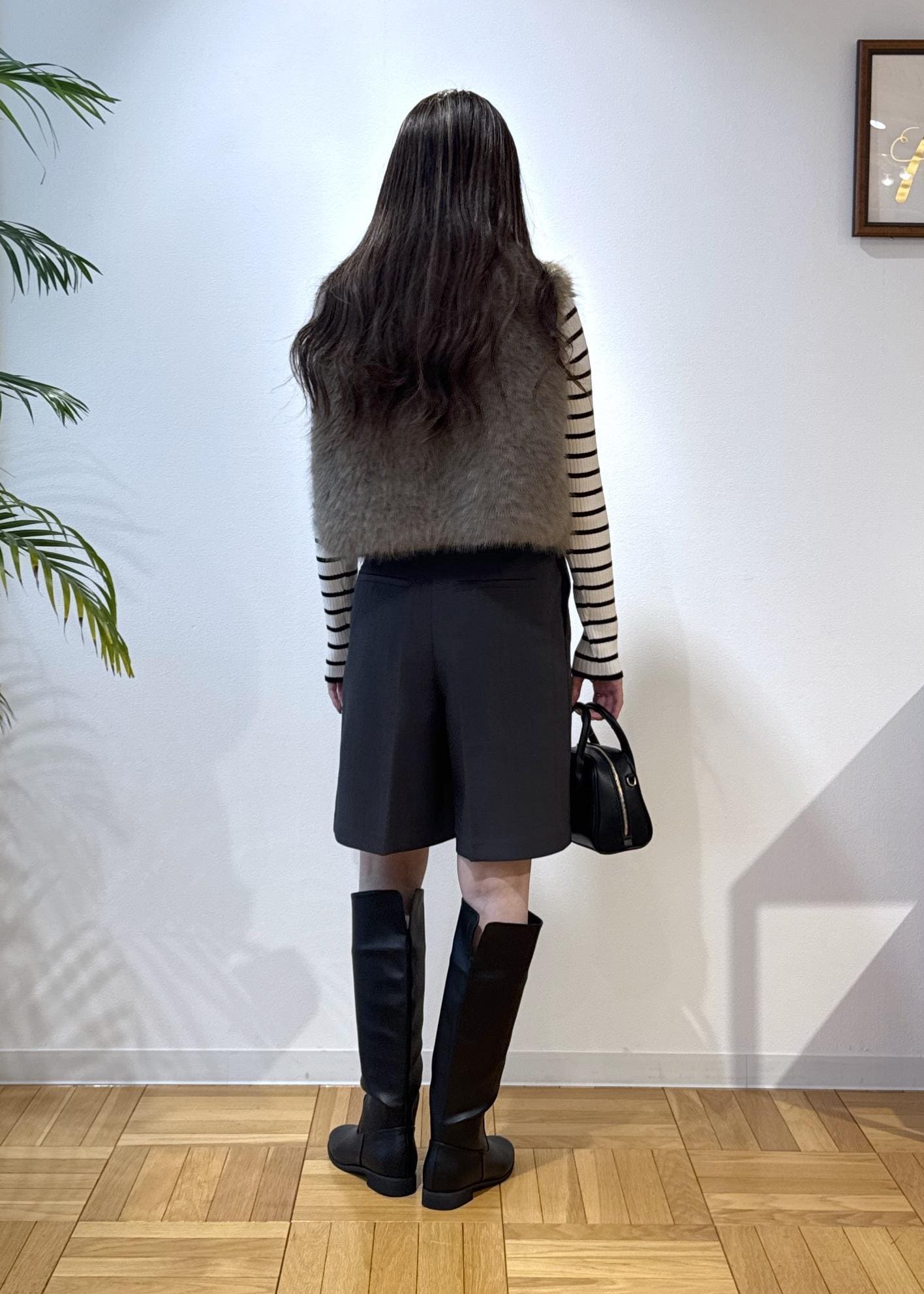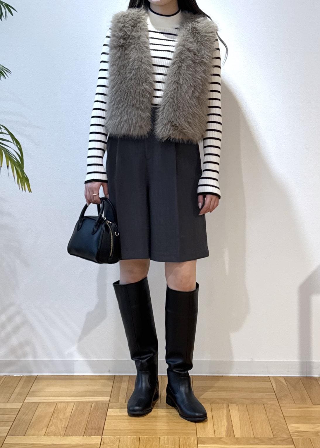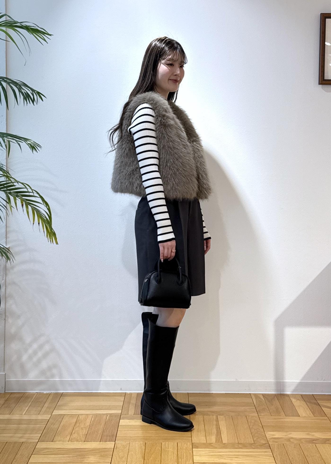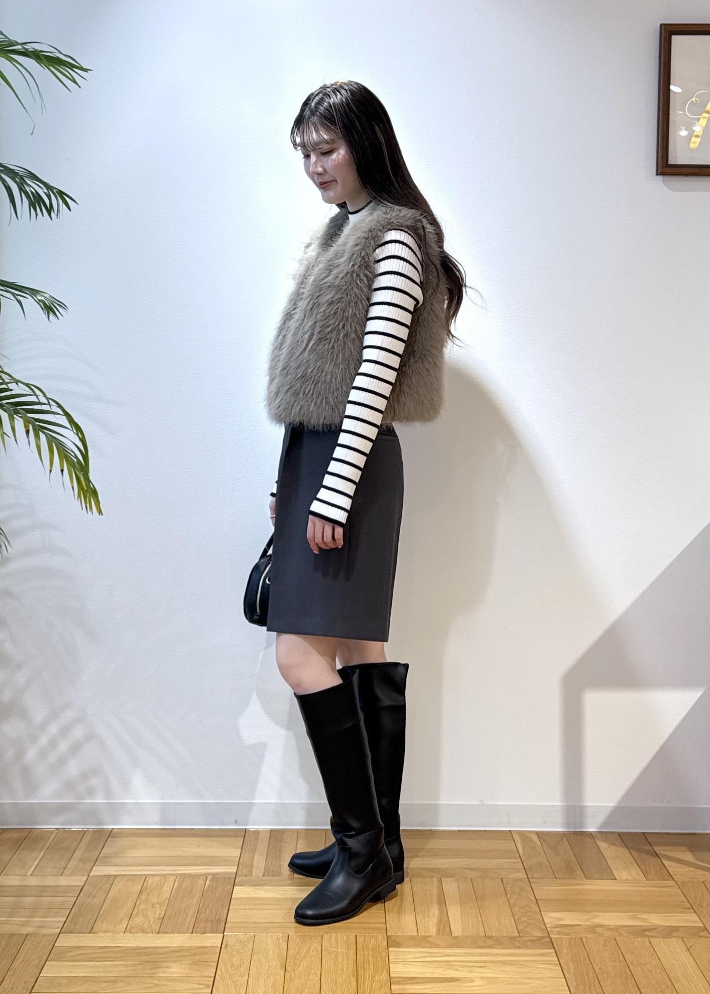 ファーベストとロングブーツが冬っぽく、お出かけ向けのスタイリングにしてみました!