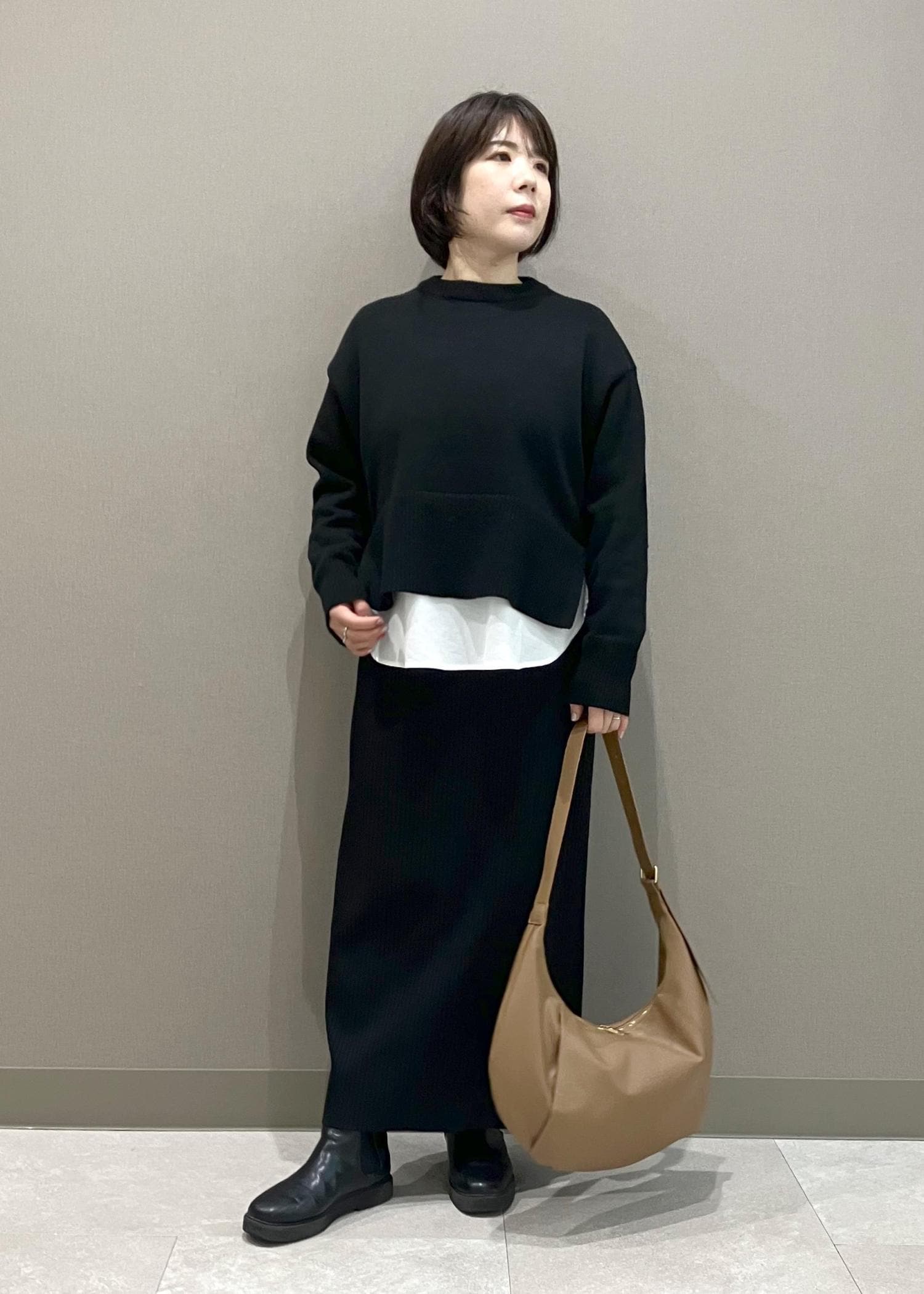 身幅はゆとりがあるので、レイヤードもしやすいです。 -