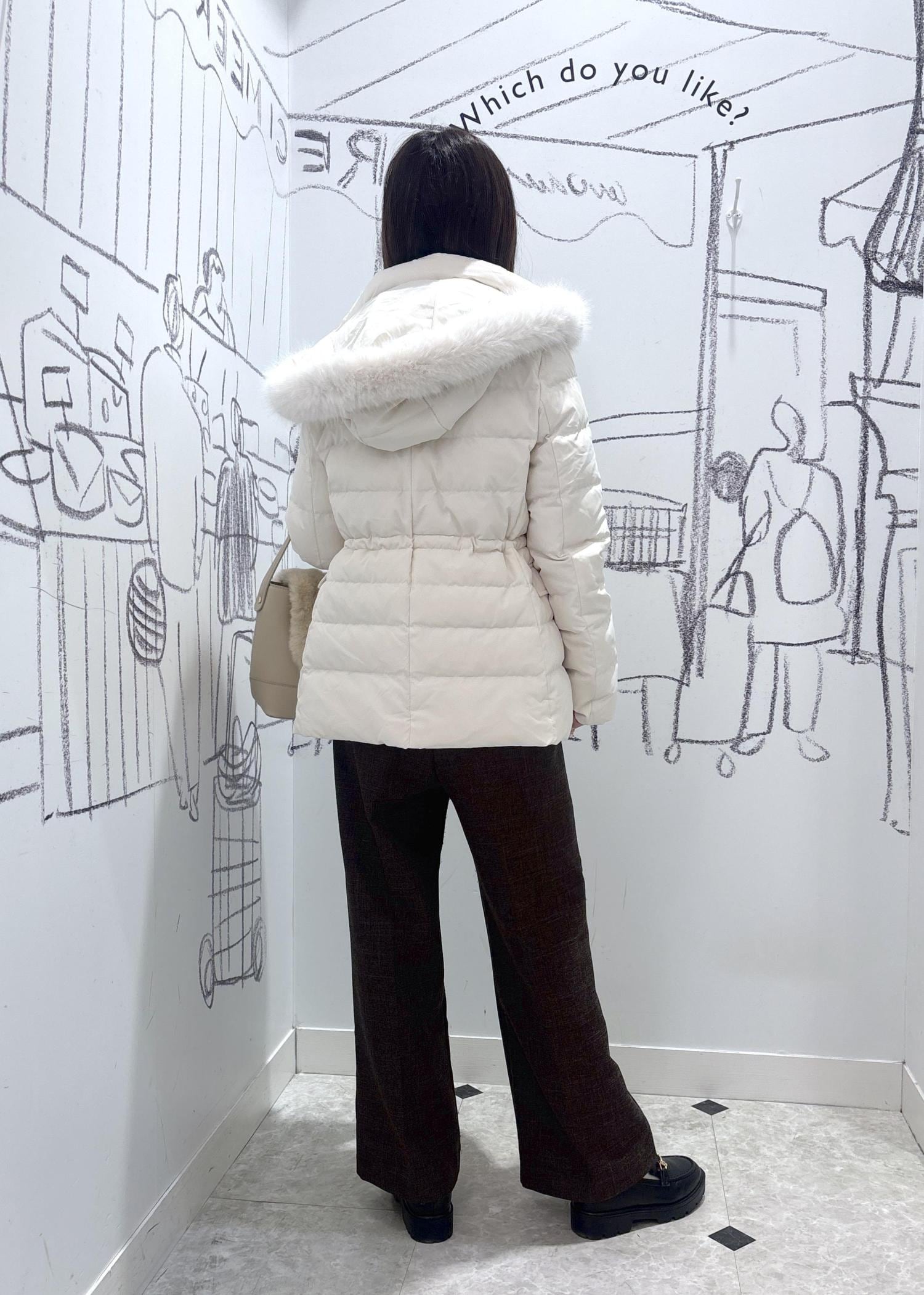 ROPÉ PICNIC【GREEN DOWN/グリーンダウン】ファー付きダウンミドル丈コート/リンクコーデオフホワイト / S¥18,700レビューダウンが80%、フェザー20%で暖かみがあり、