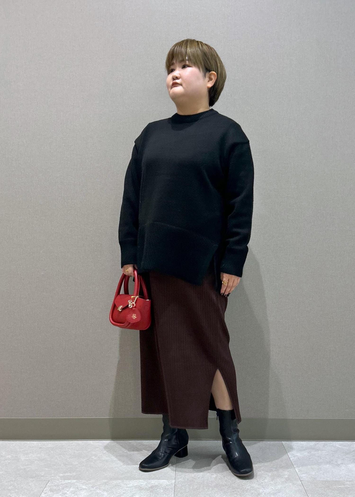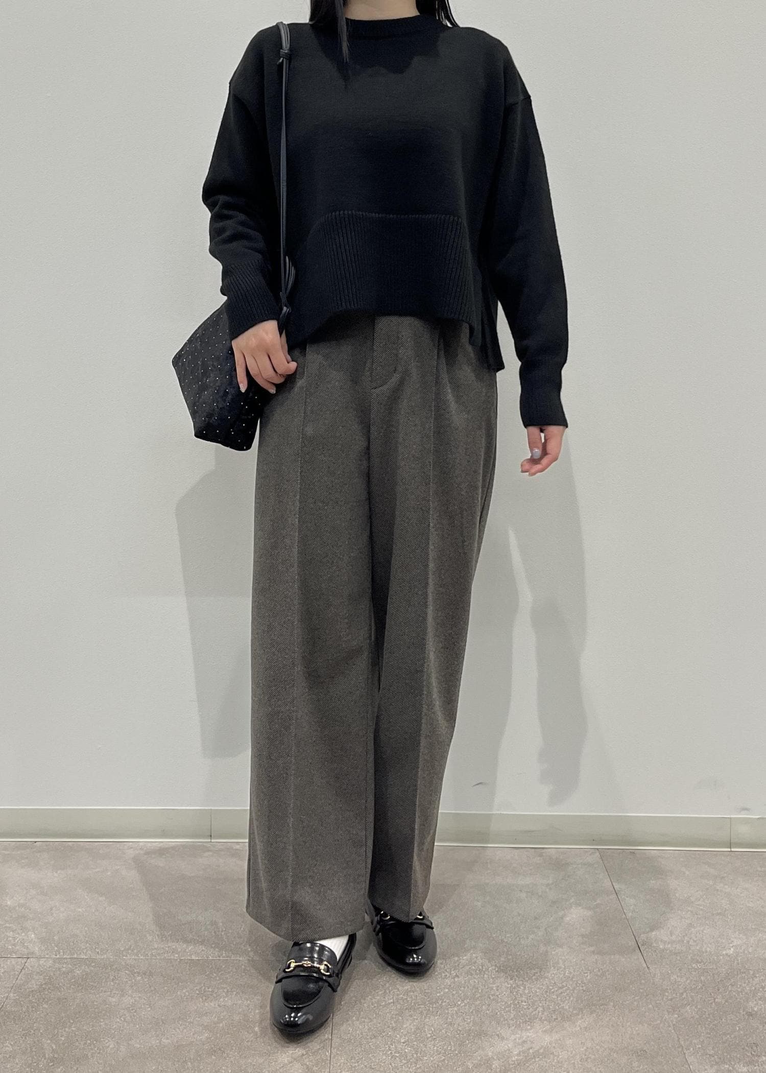 薄手のニットくらいまでウエストインできて、丈はくるぶしが隠れる長さです。