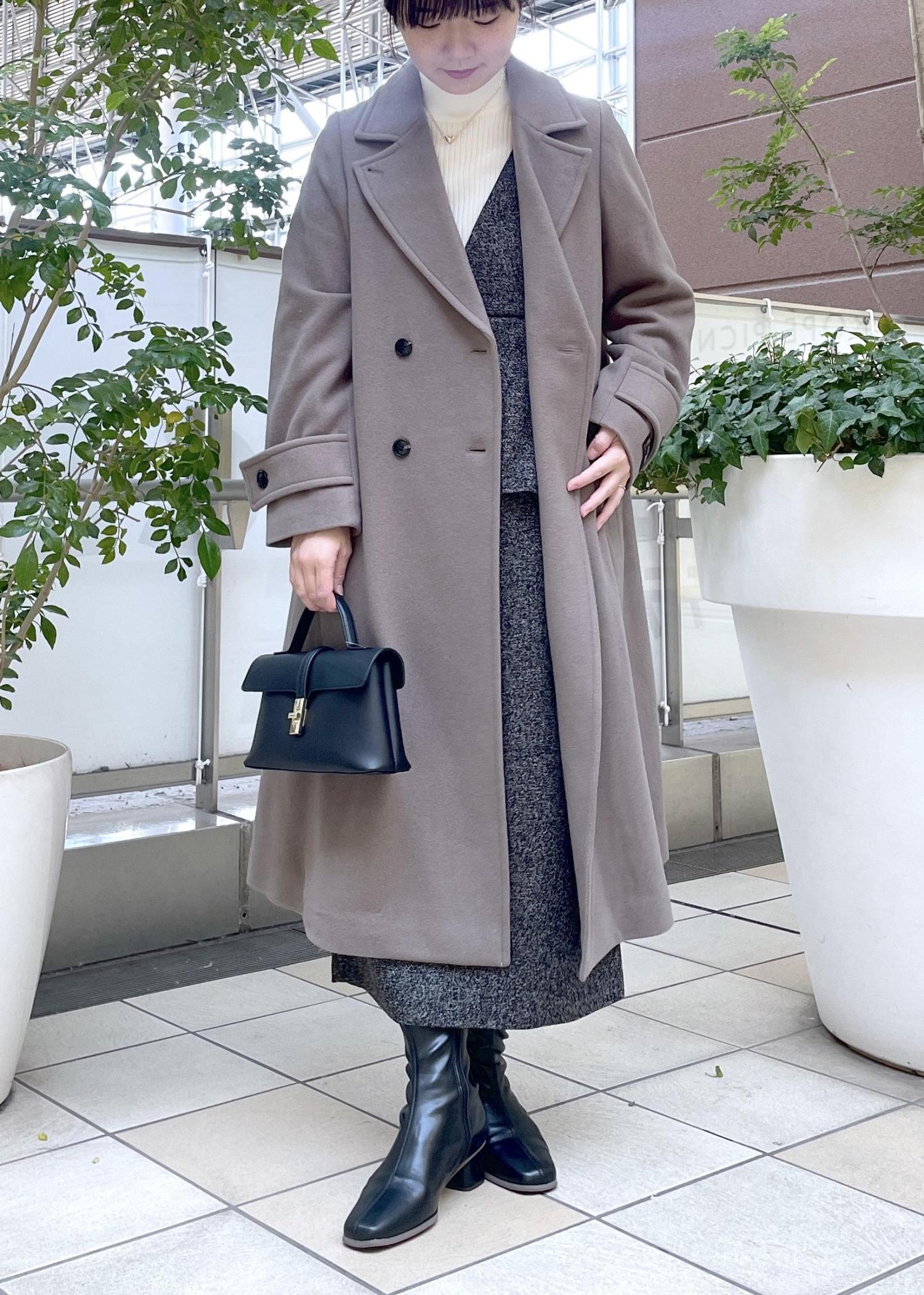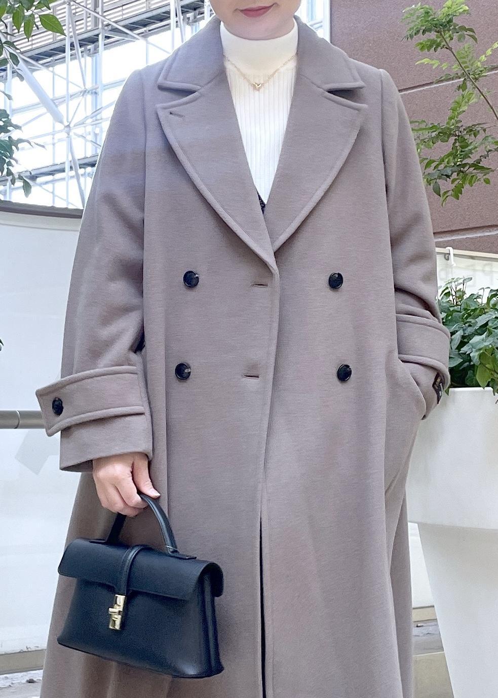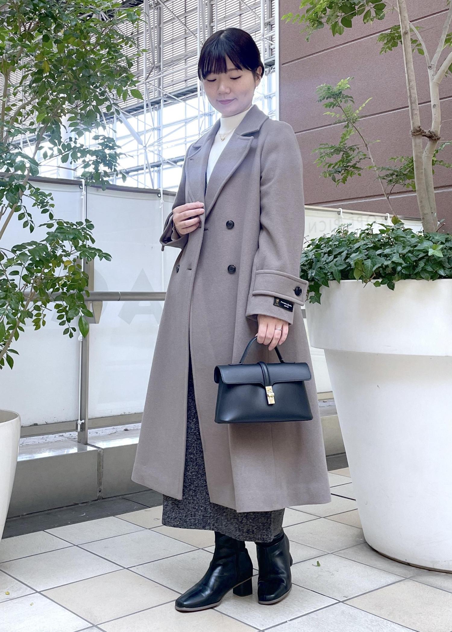 ROPÉ PICNICJAPAN FABRIC ダブルチェスターコート/一部WEB限定カラーベージュ系 / F¥19,800レビュー160cmの私が着用してふくらはぎが半分隠れる程度の着丈でした。