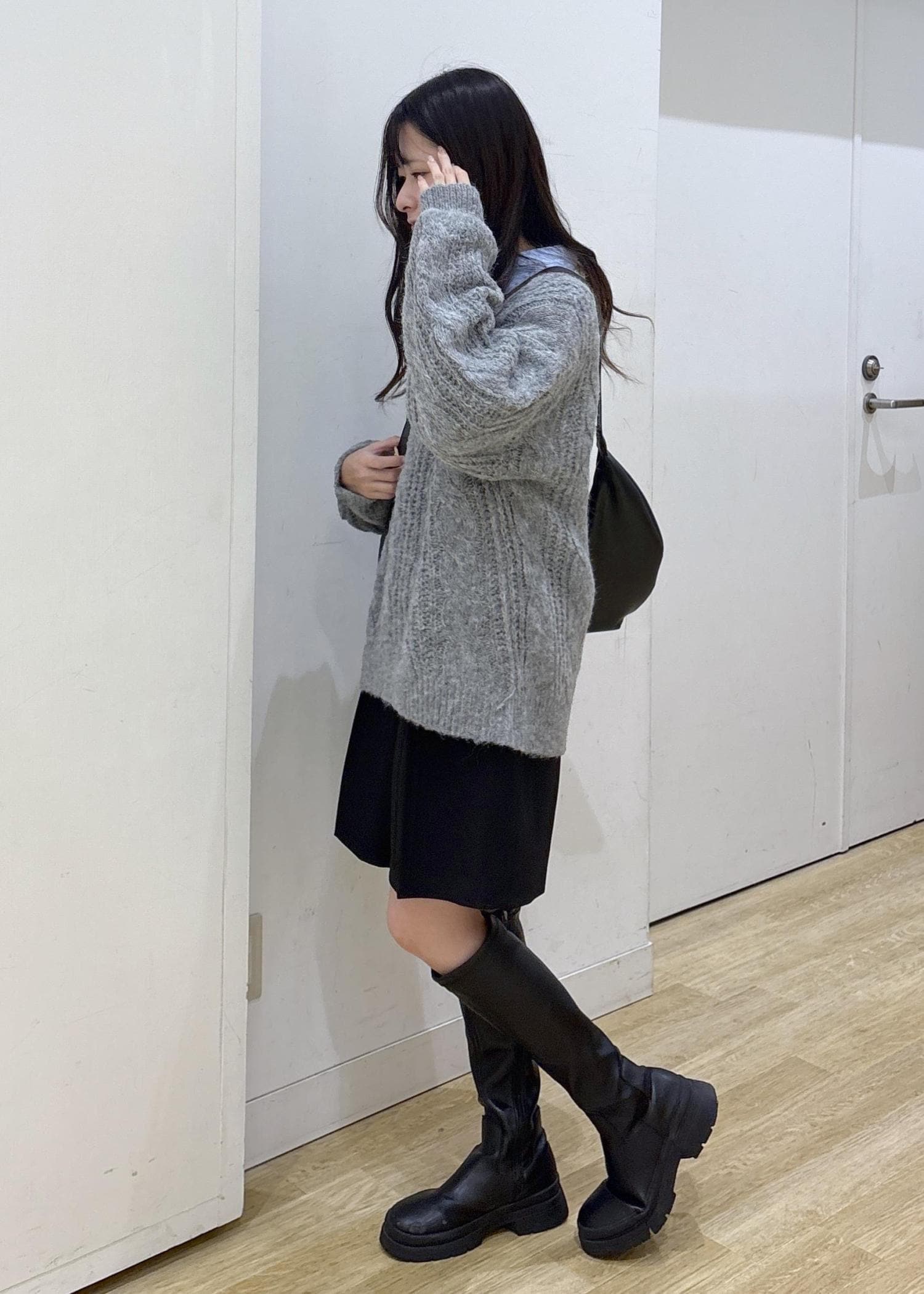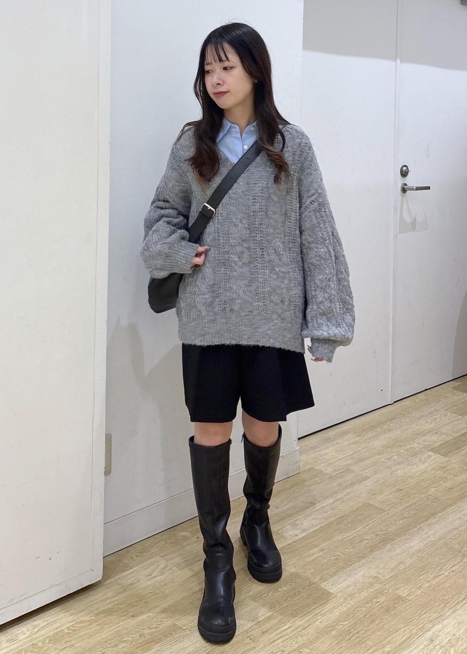 ニットはゆるっとしたシルエットなのでミニ丈との相性も抜群です◎