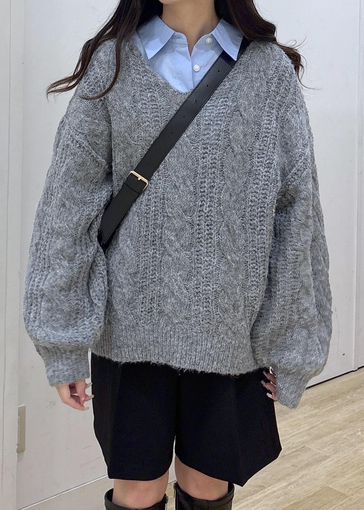 ROPÉ PICNICゆるケーブル編みVネックニットグレー / F¥5,489レビュー全体的にゆったりとしています!