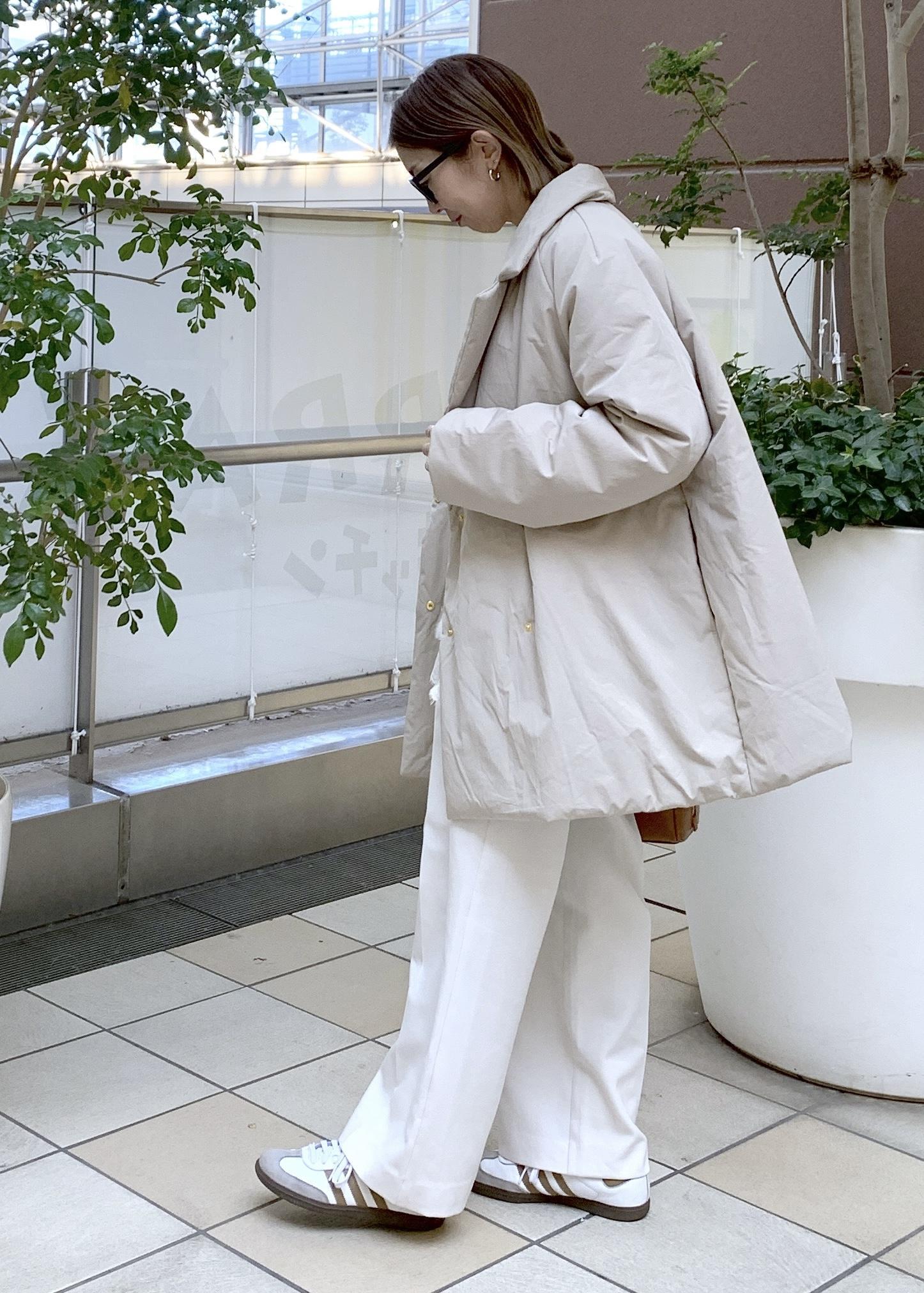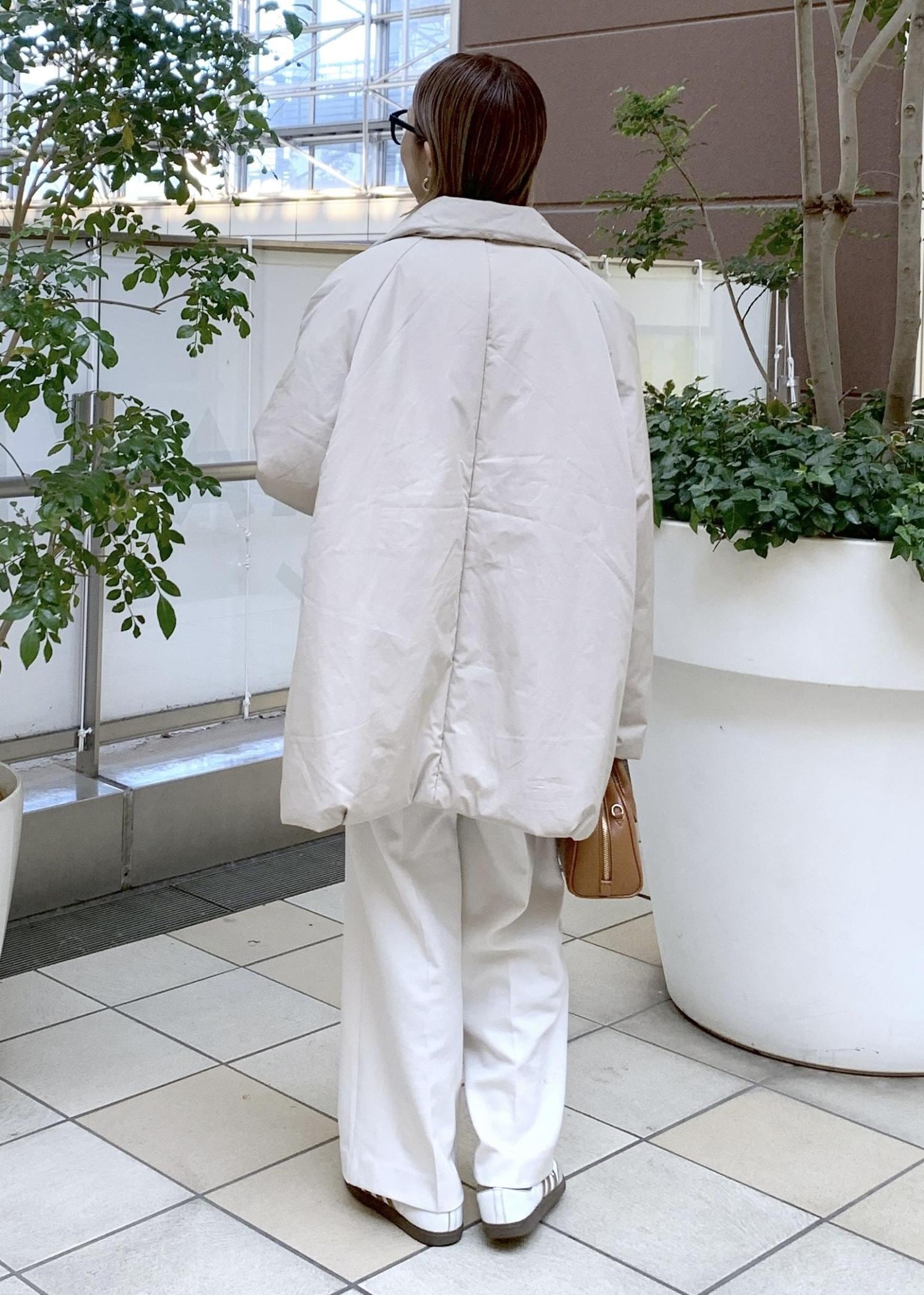 ゆったり感のあるコクーンシルエットの中綿アウター