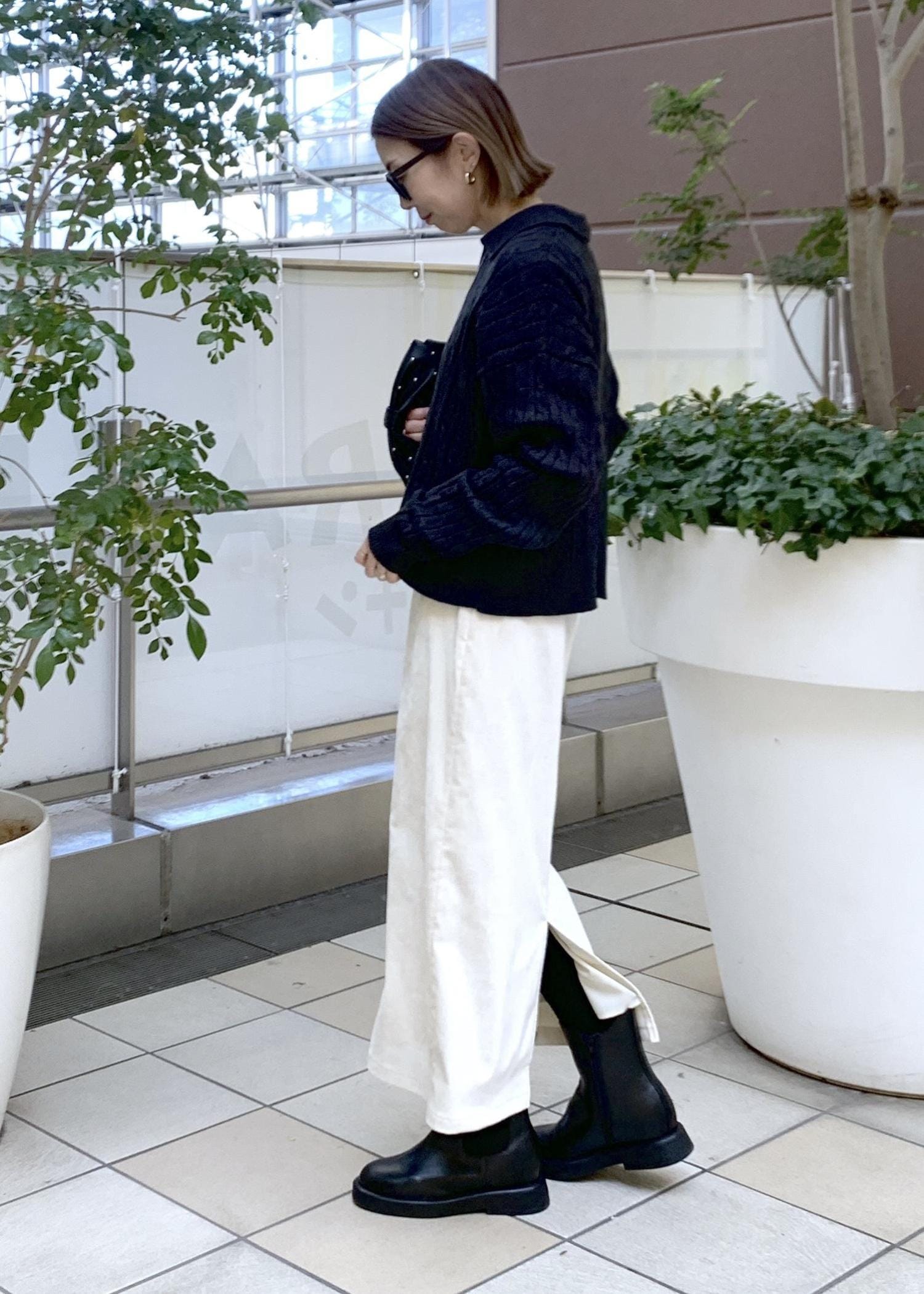 クロップド丈でボトムは選ばず合わせやすい。 -