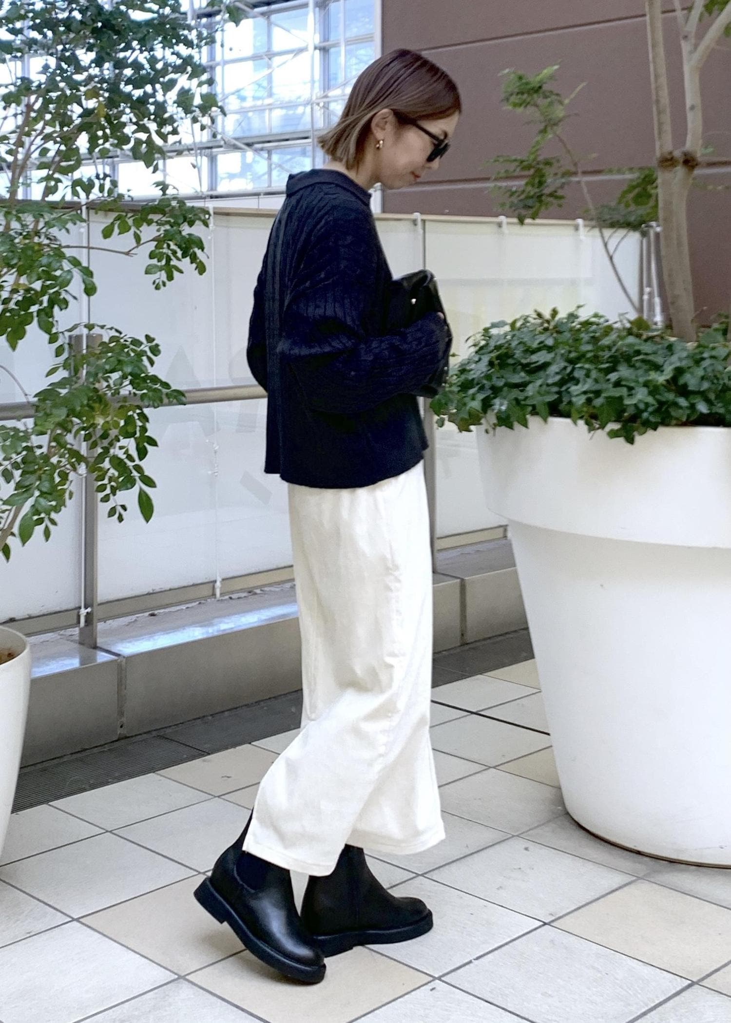 大人も着やすいベーシックなカラーで合わせたコーデ