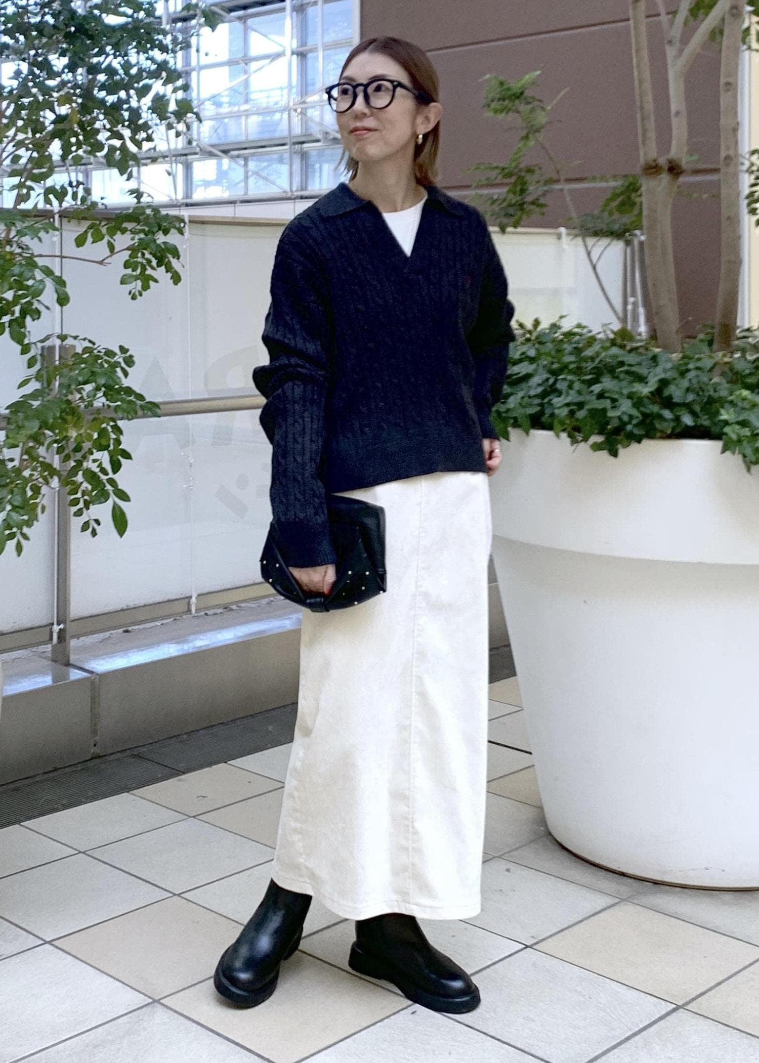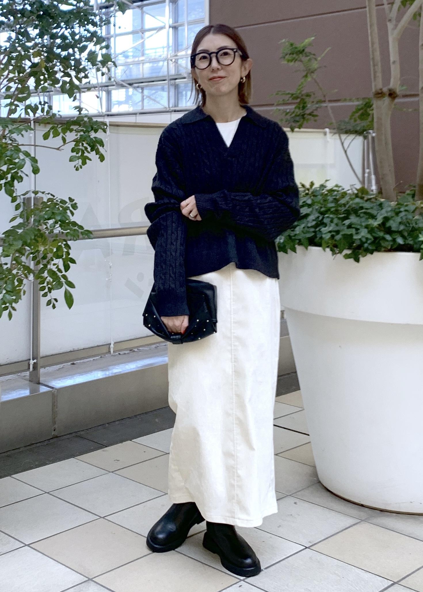 人気のスキッパーニットの大人カジュアルスタイリング。