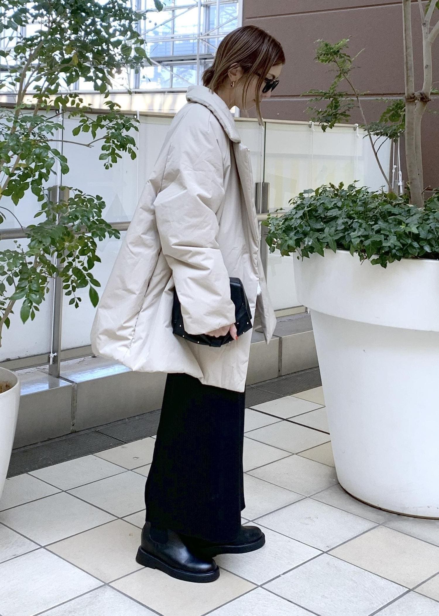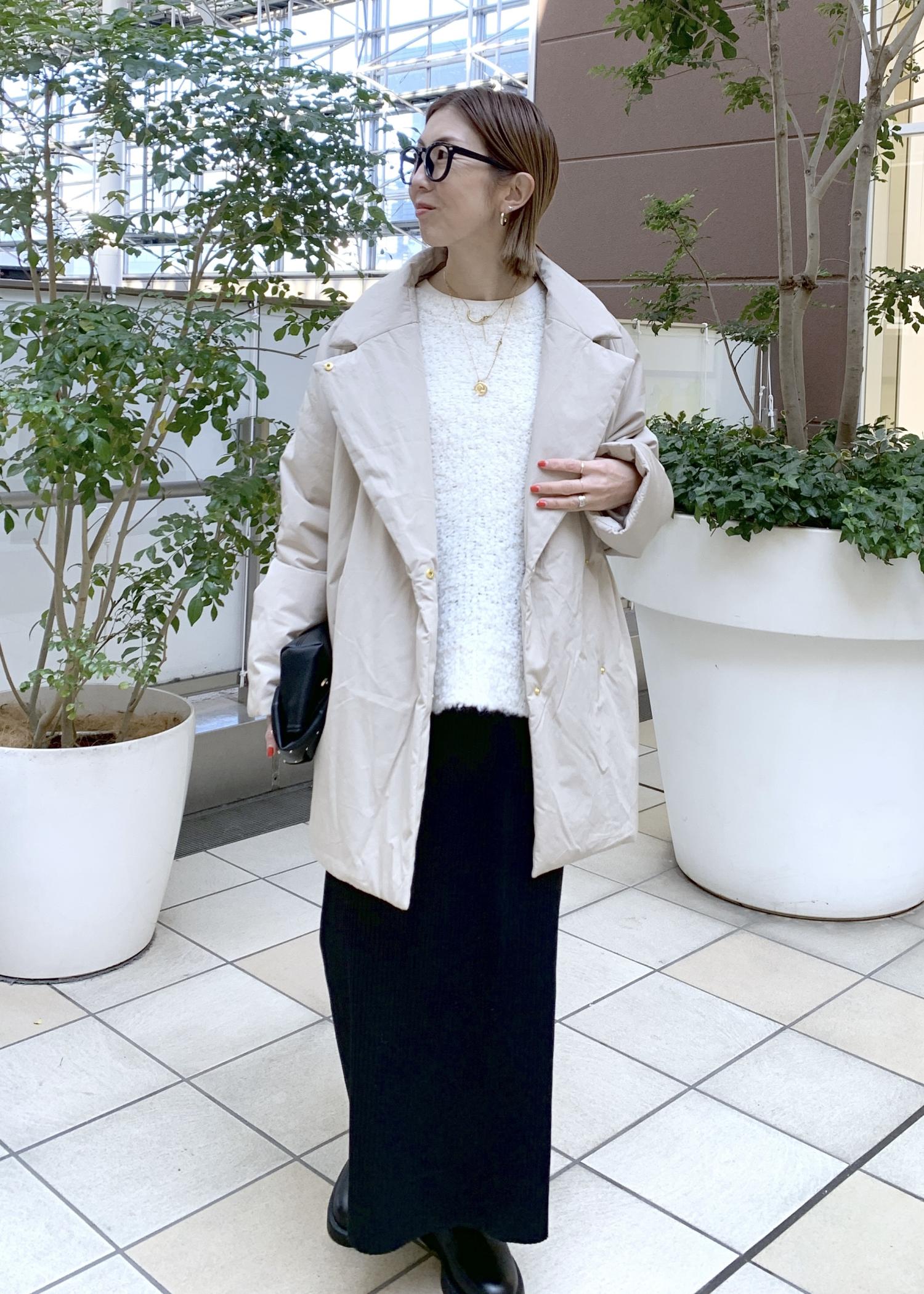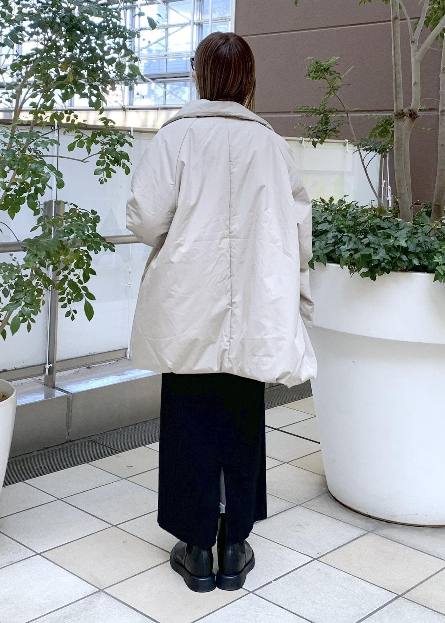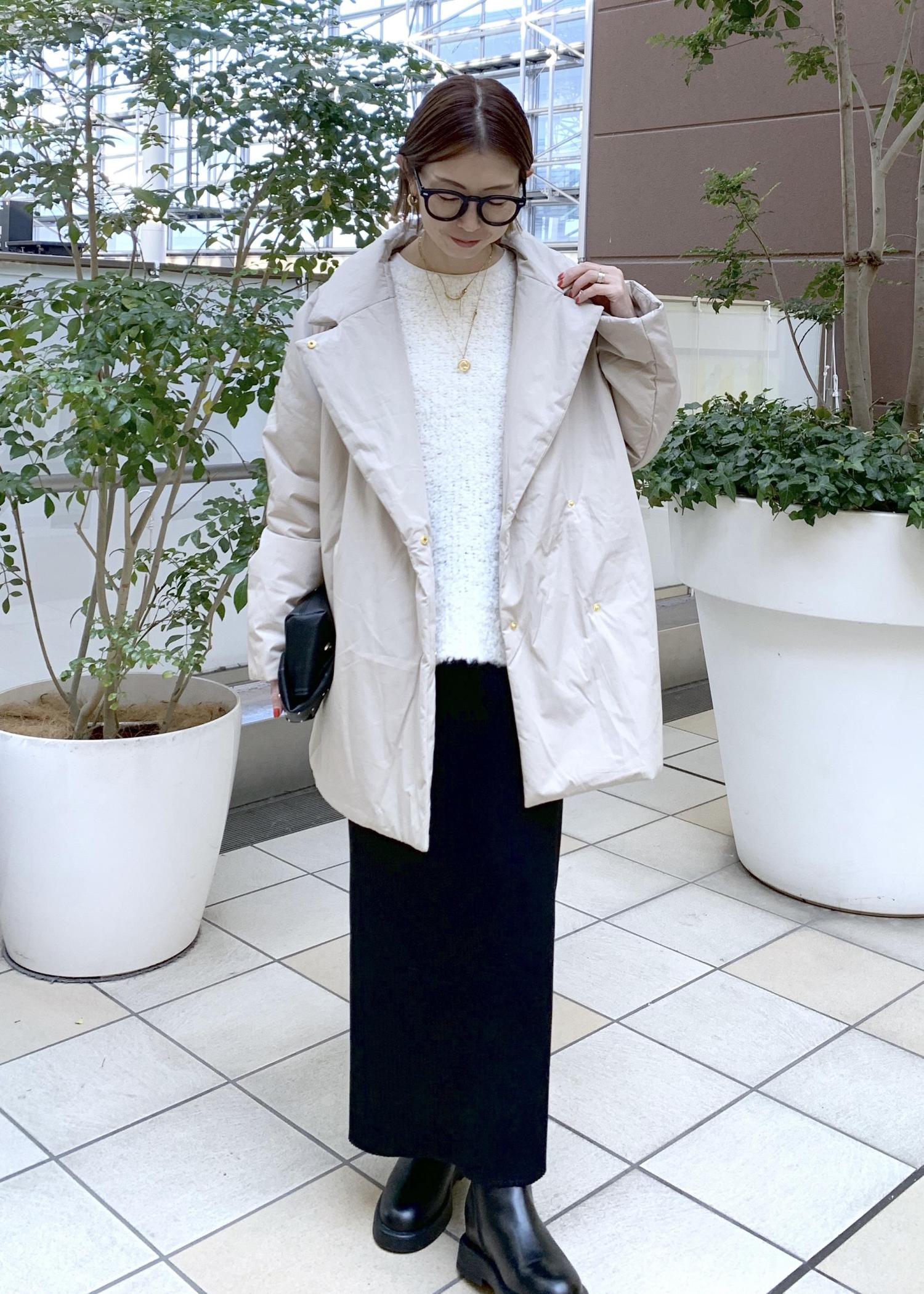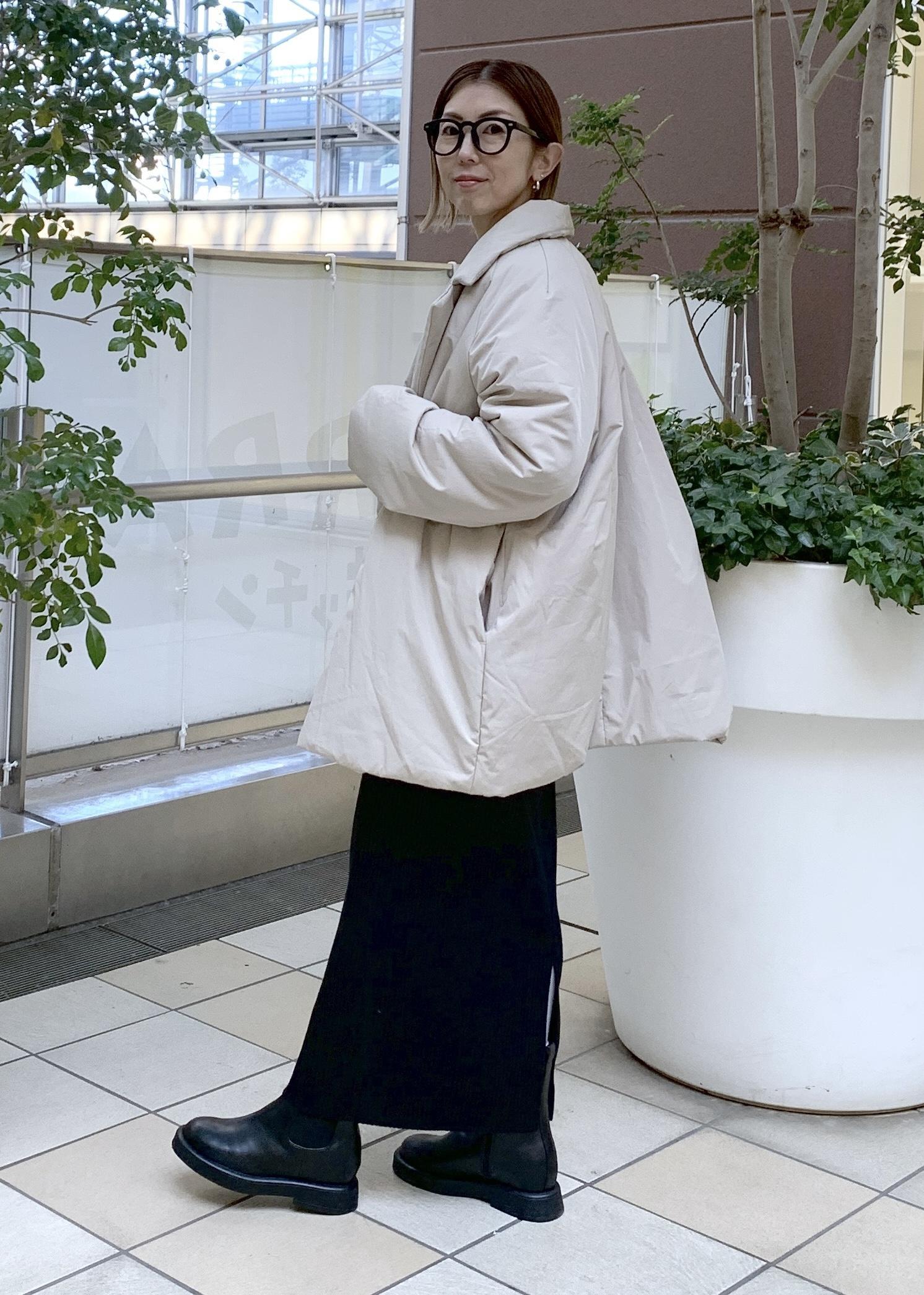 ゆったり感のあるコクーンシルエットの中綿アウター