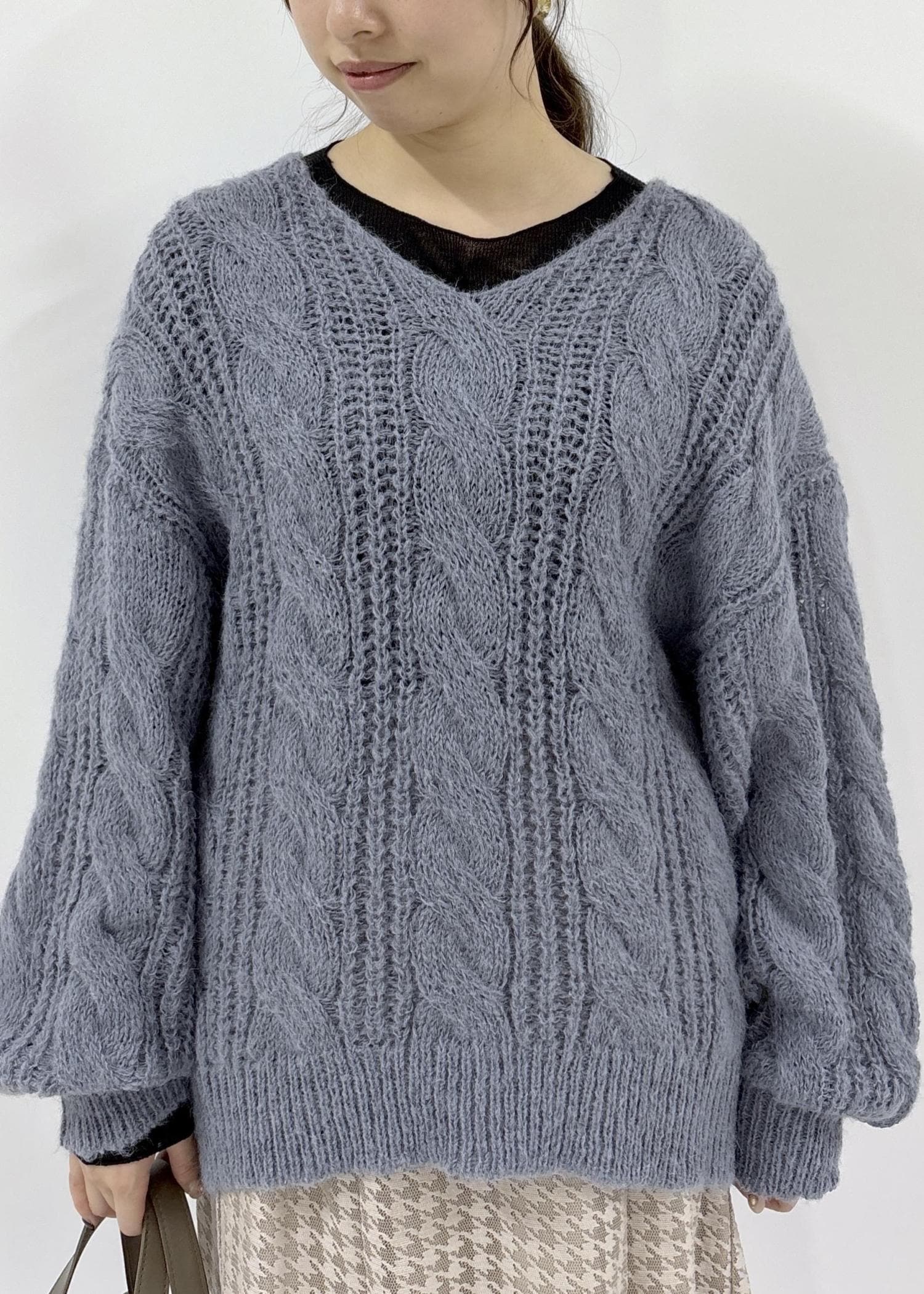 ROPÉ PICNICゆるケーブル編みVネックニットブルー系 / F¥5,489レビューふわっと柔らかいニットアイテムです♪