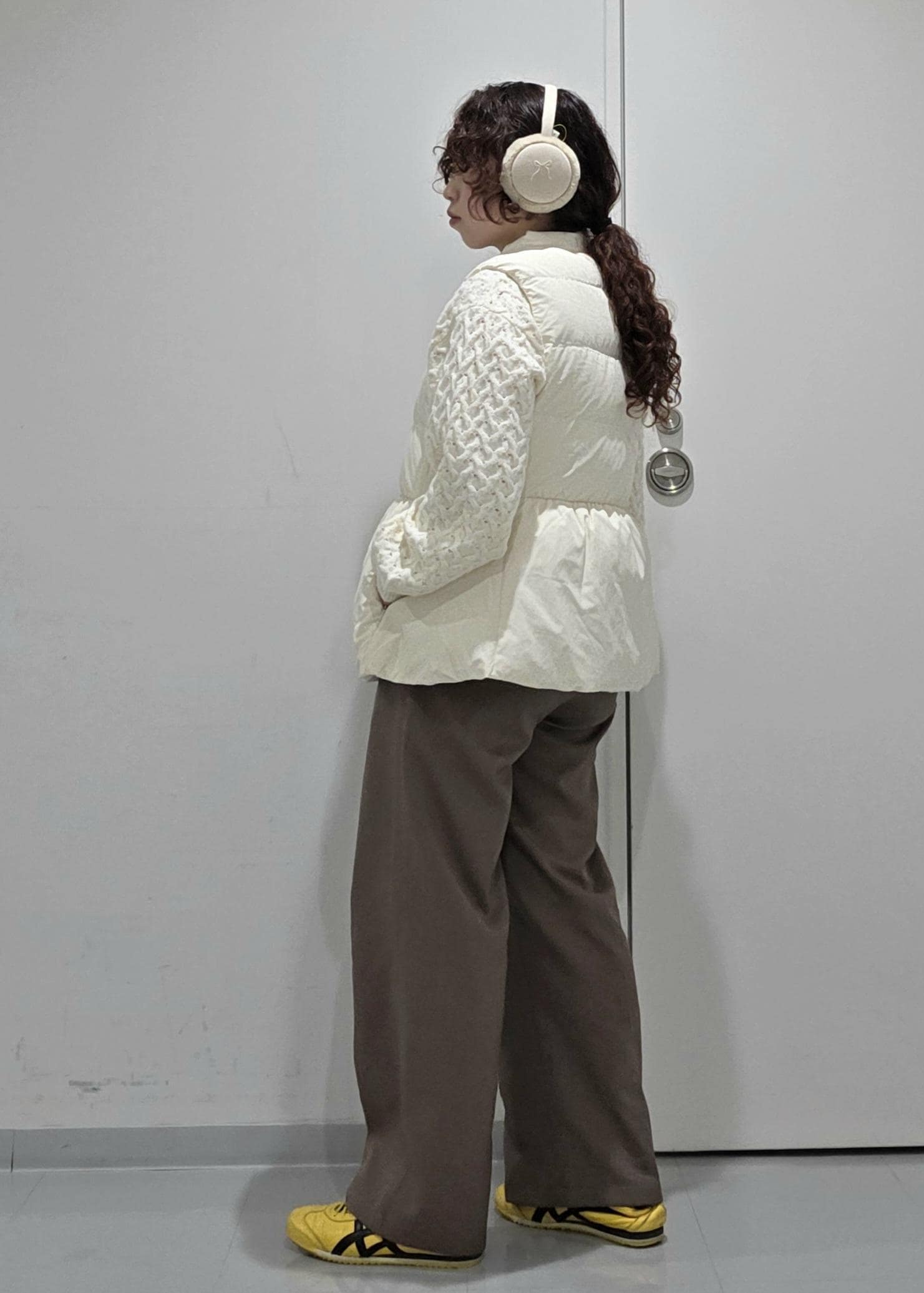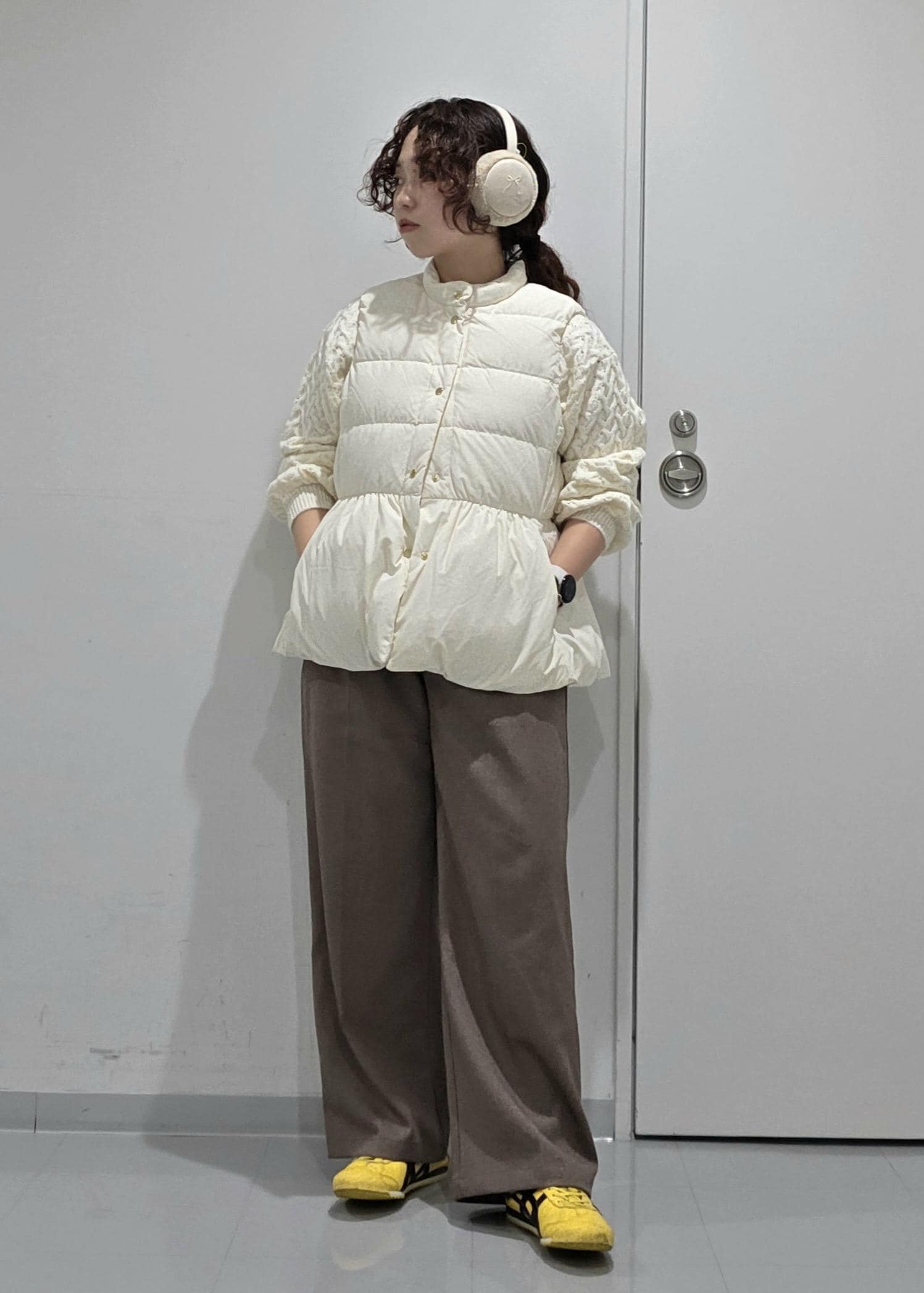 ペプラムシルエットのダウンベストでカジュアルすぎないコーディネートにしました!