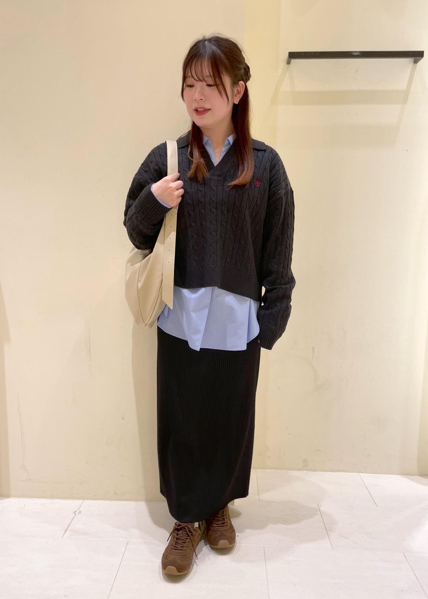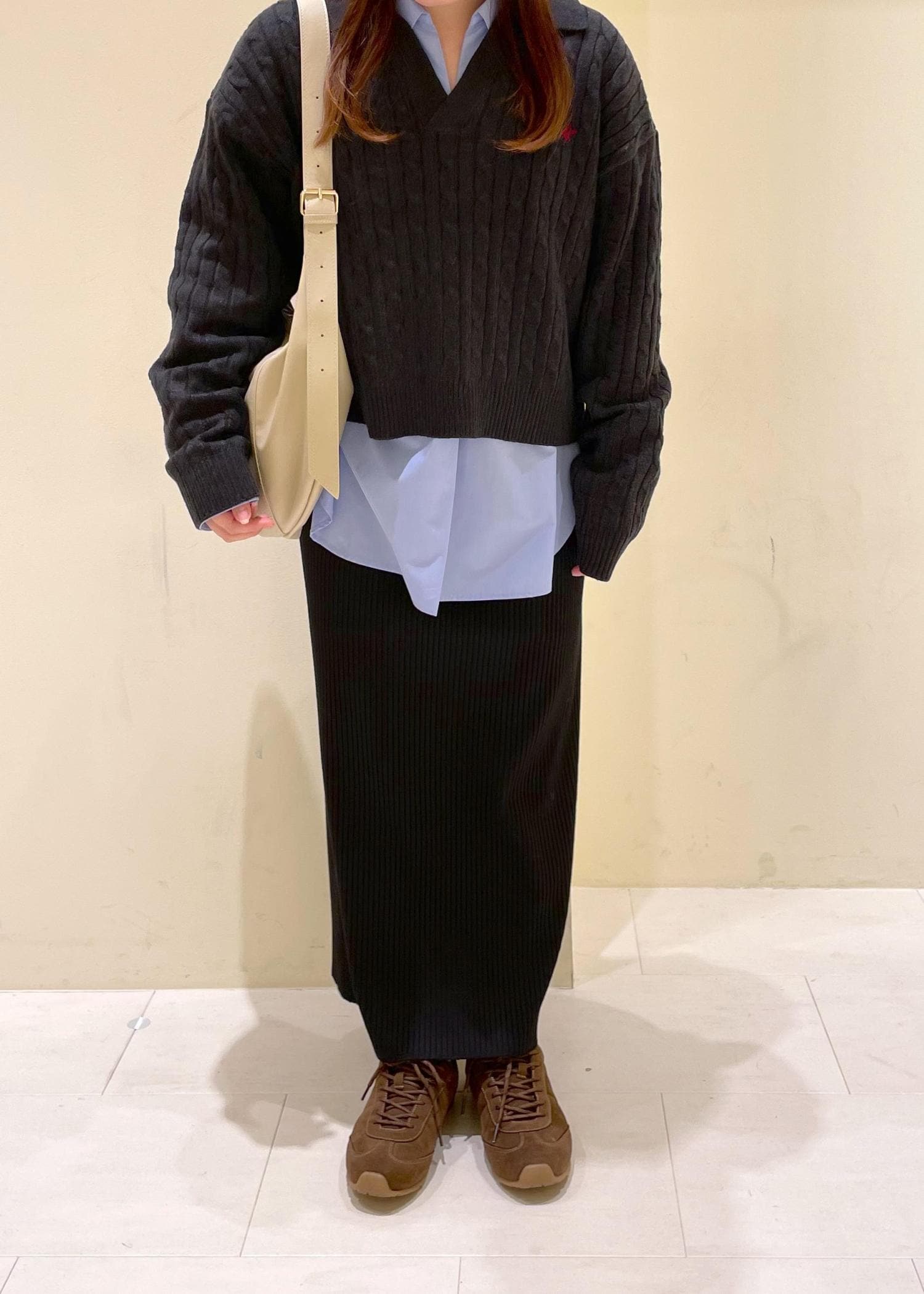 NEW!ROPÉ PICNIC【BEVERLYHILLS POLO CLUB・新色追加】ケーブル編みクロップドスキッパーニットチャコール / F¥5,995レビュー襟付きのポロニットトップスです。
