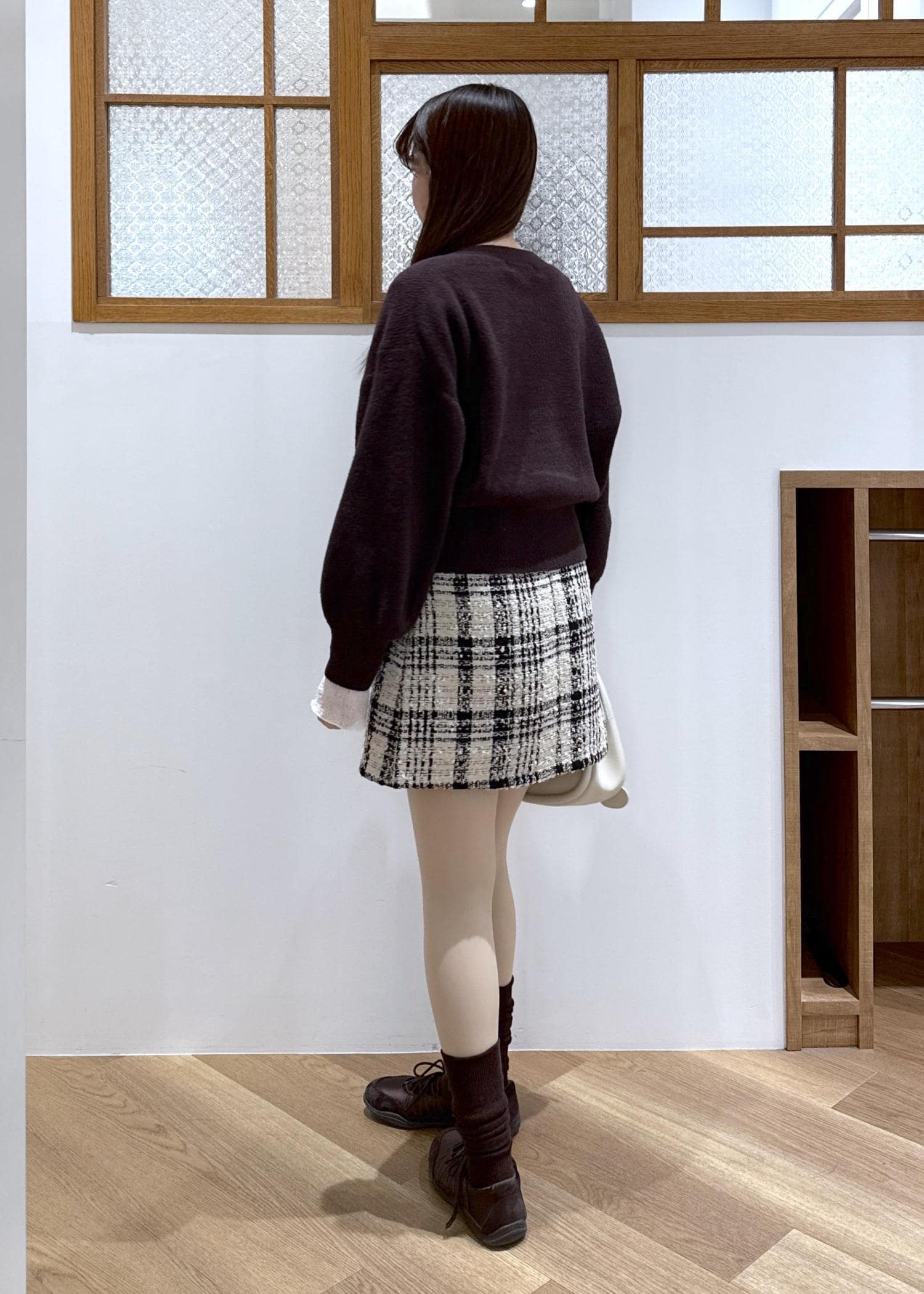 ダークブラウン×チェック カジュアルガーリーコーデ