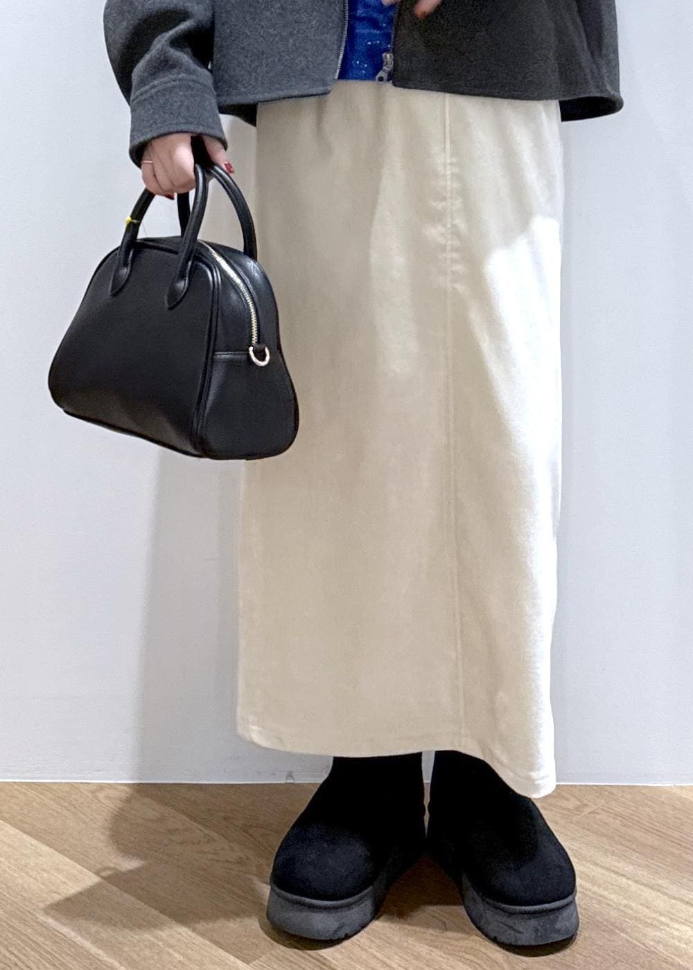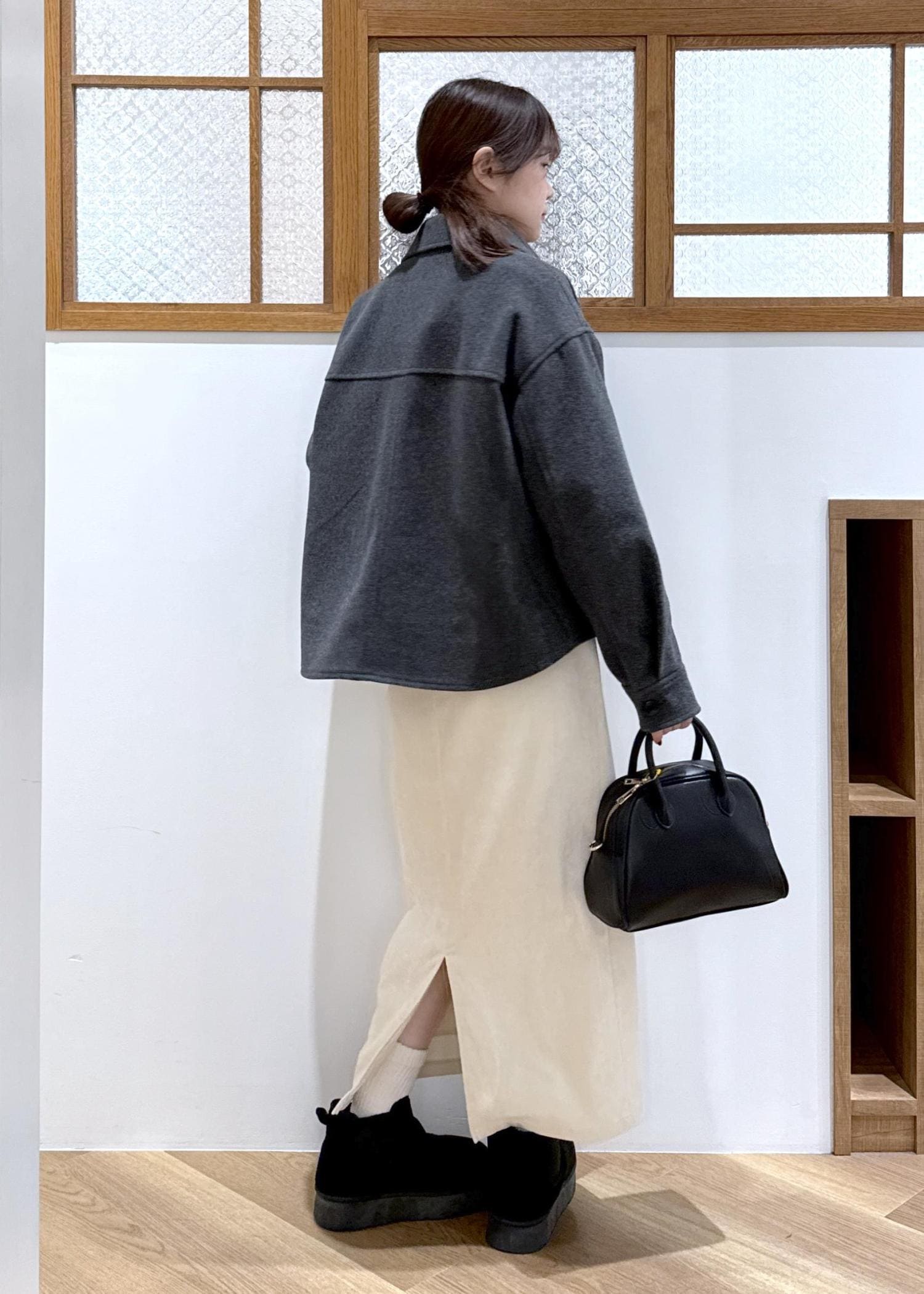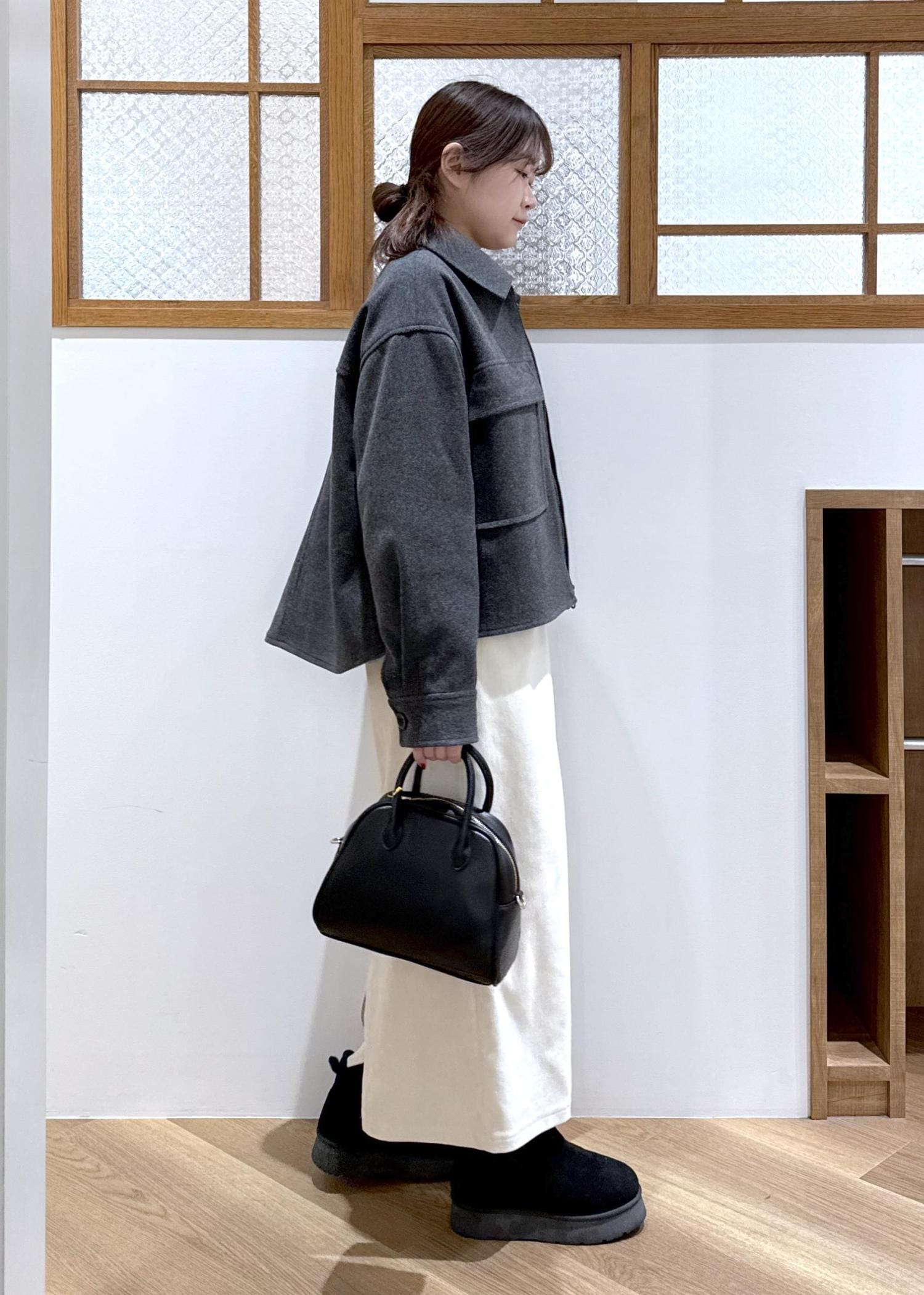 厚底のムートンブーツを合わせて、カジュアルな要素もプラスしました。