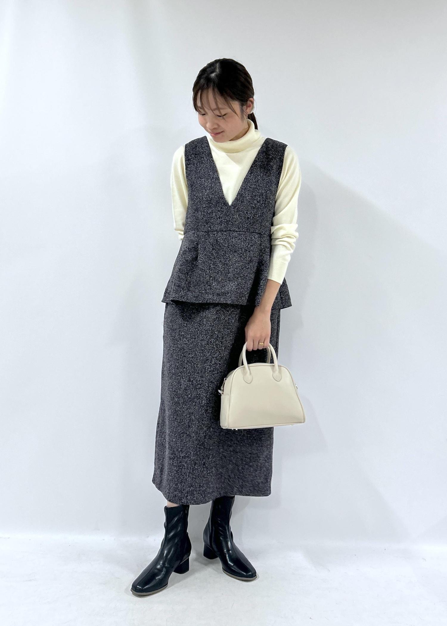 ROPÉ PICNIC【新色追加】レイヤード風ペプラムジャンパースカートチャコール / M¥7,997レビュー1枚でセットアップ見えするワンピース◎