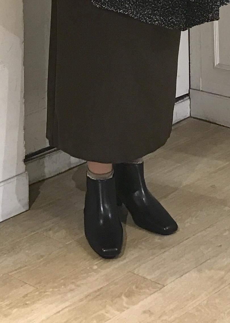 足首までの長さのブーティ。足の形に沿ったインソールで安定感のあるアイテム。