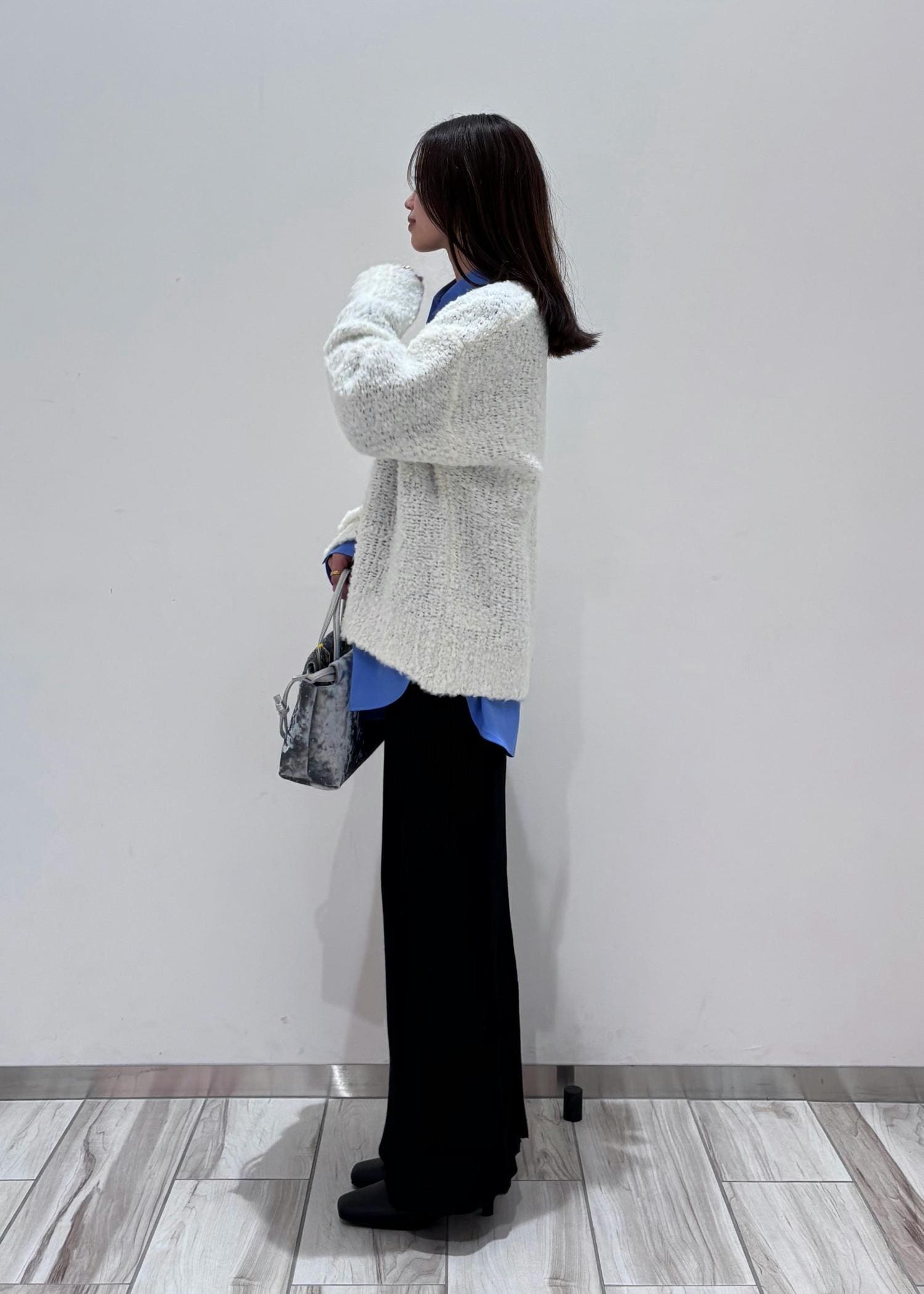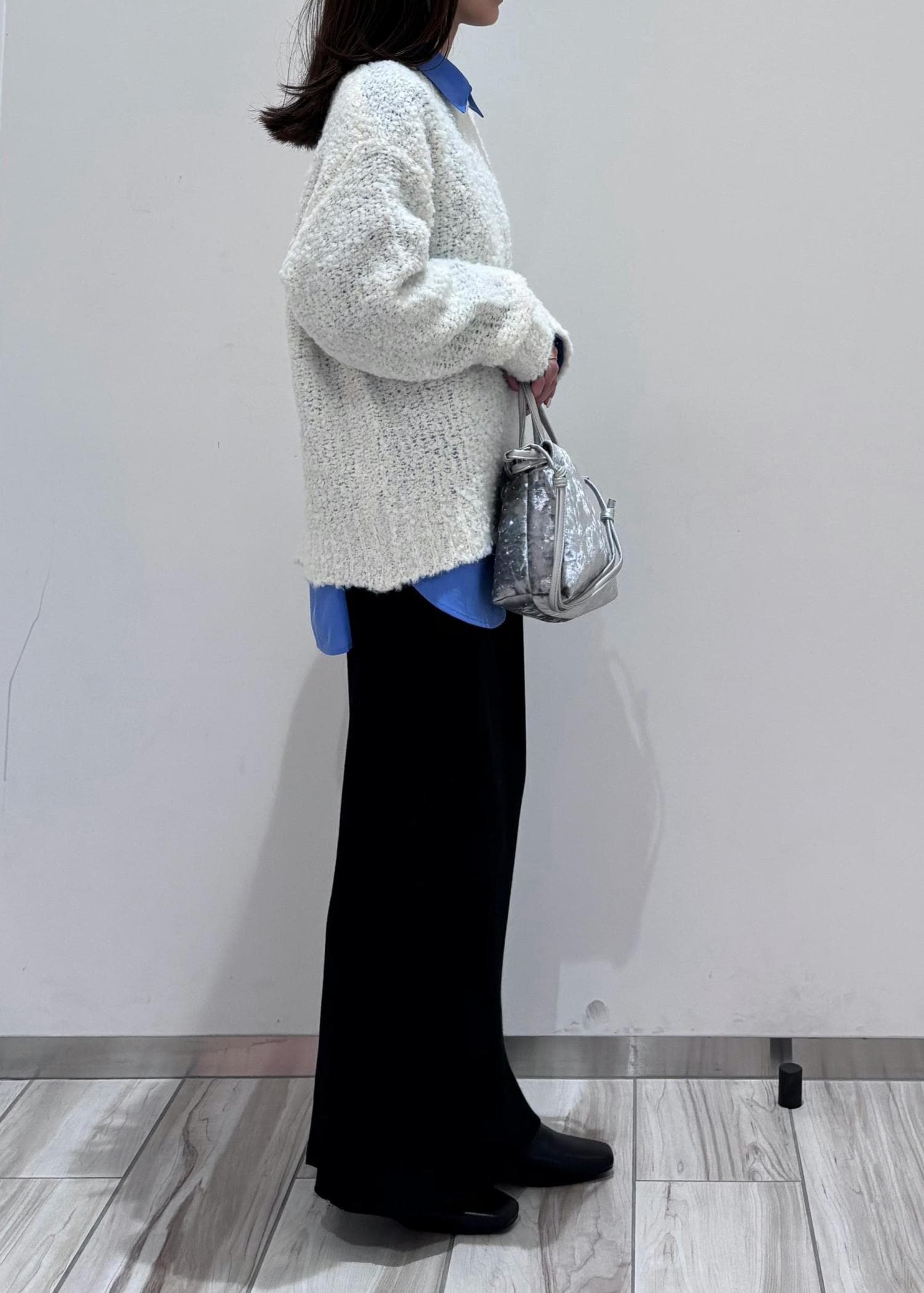 トップスはあえてインせず、アウトスタイルにすることで縦のラインを綺麗に見せることを意識しました♪