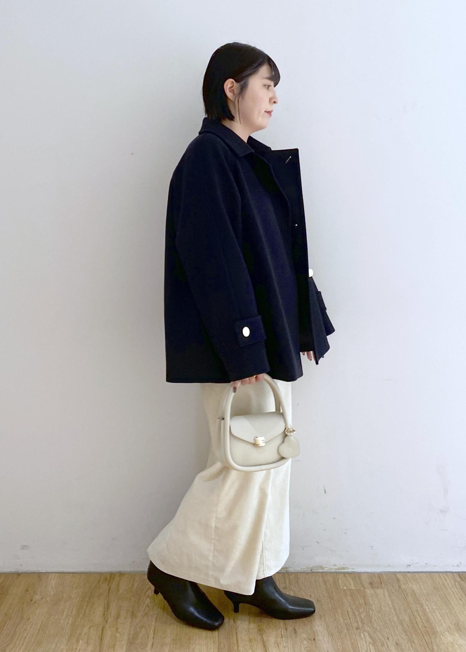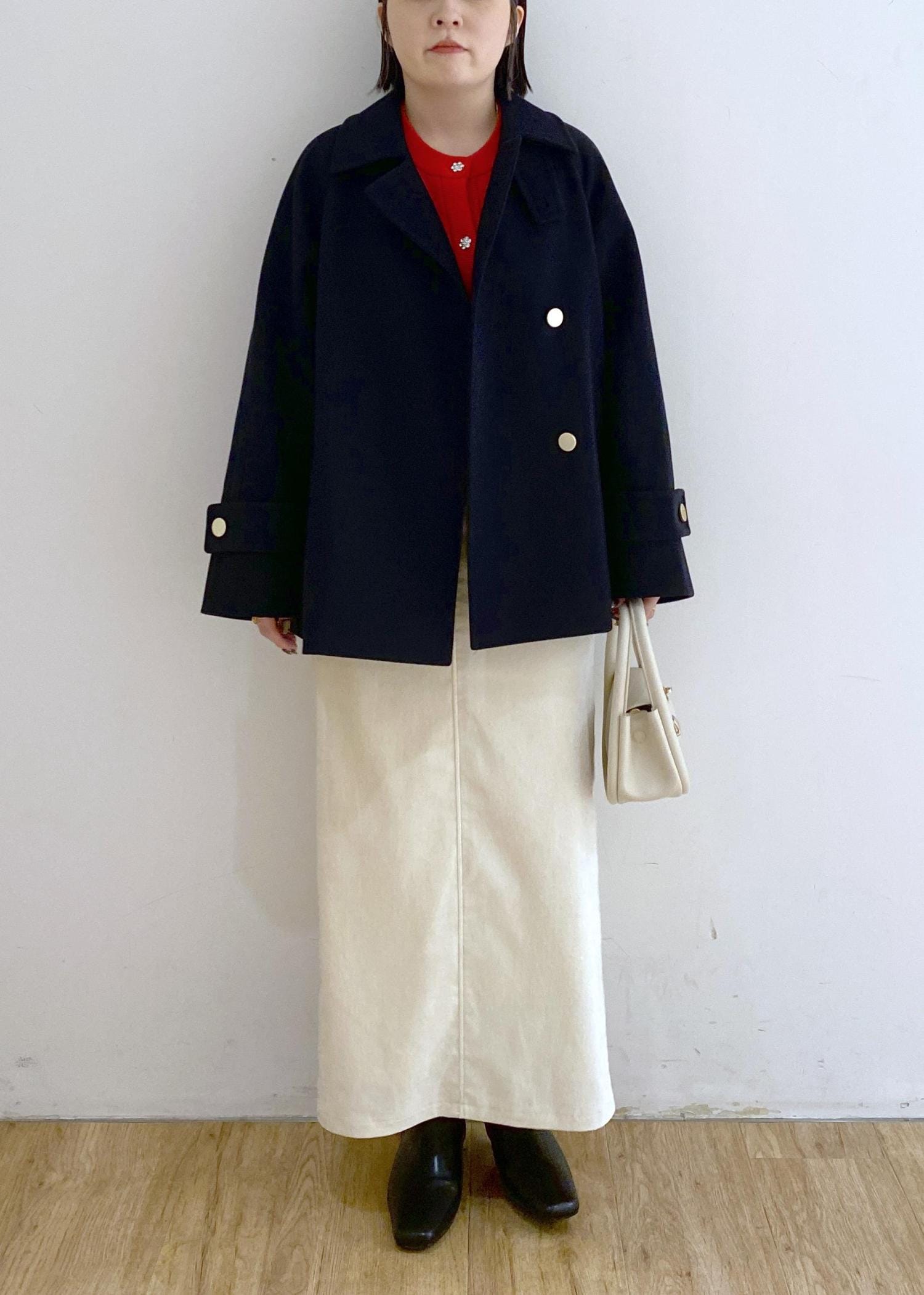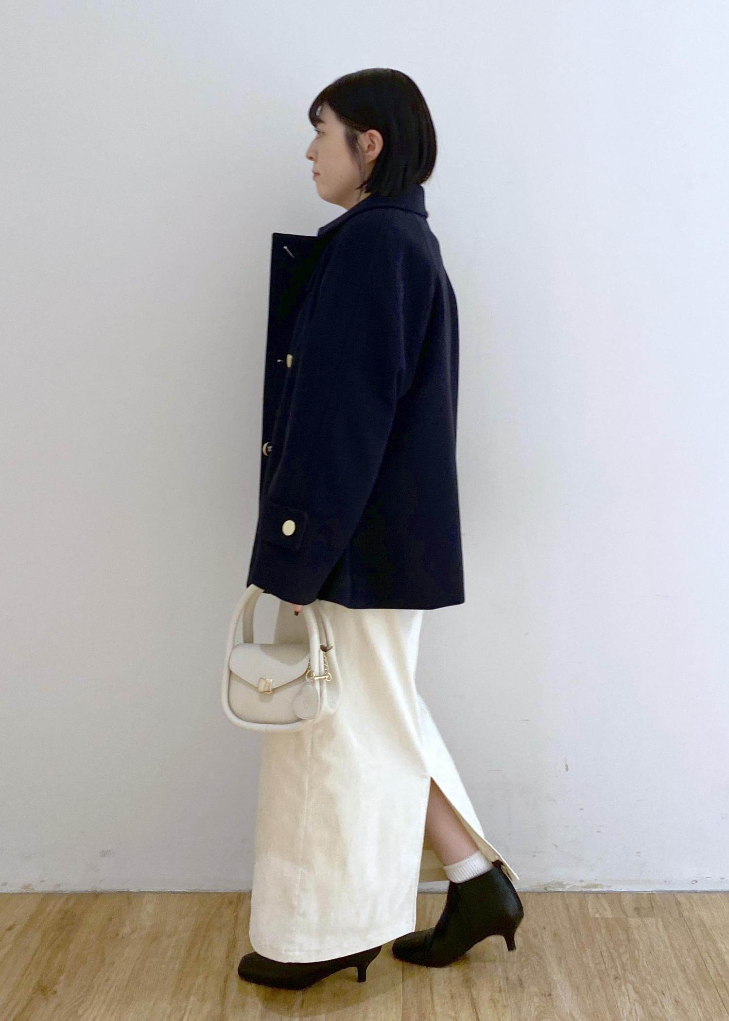 店頭でも大人気の金ボタンコートを合わせました◎