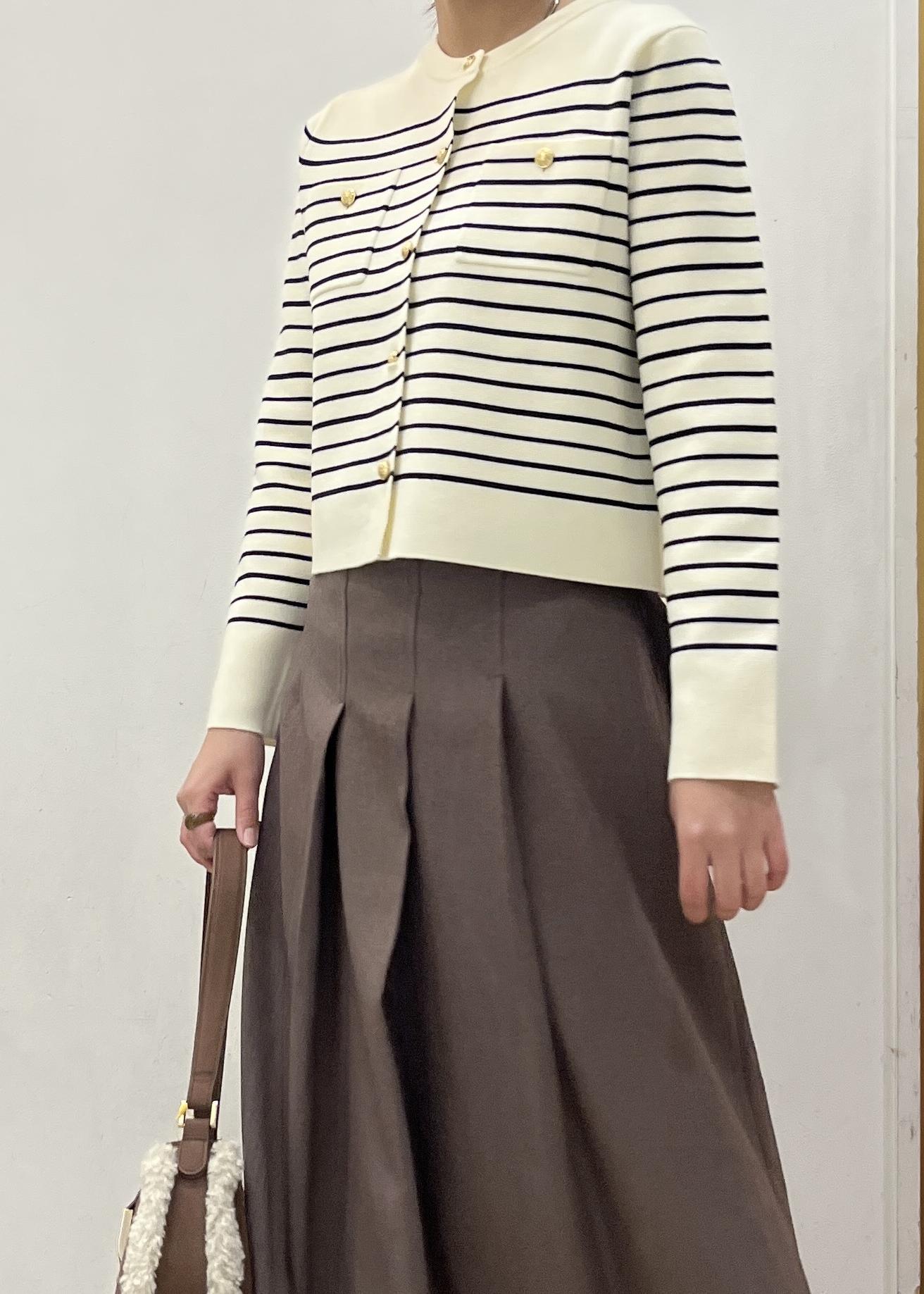 ROPÉ PICNICレディハンサムシリーズ ウールライクタックキルトスカート/セットアップ対応ベージュ系 / M¥5,995レビュー丈感を長めで合わせたかったので、Mサイズで着用していますが少しウエストにゆとりがありました。横のベルト部分で調節は可能になります。カジュアル・キレイめどちらにも合わせていただけます。