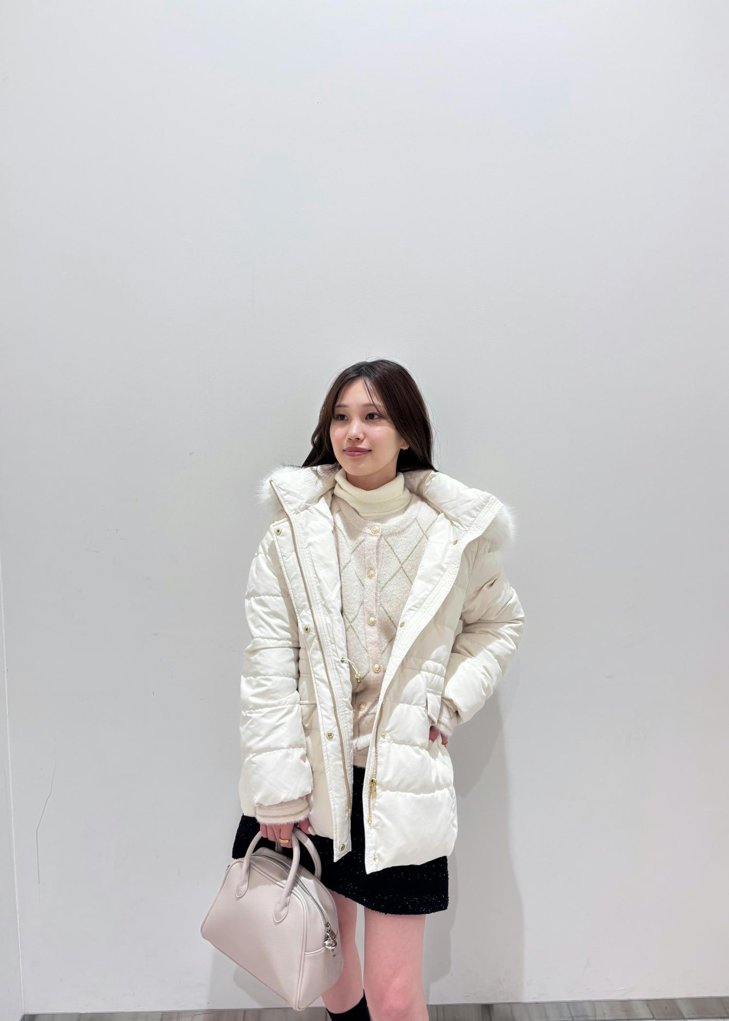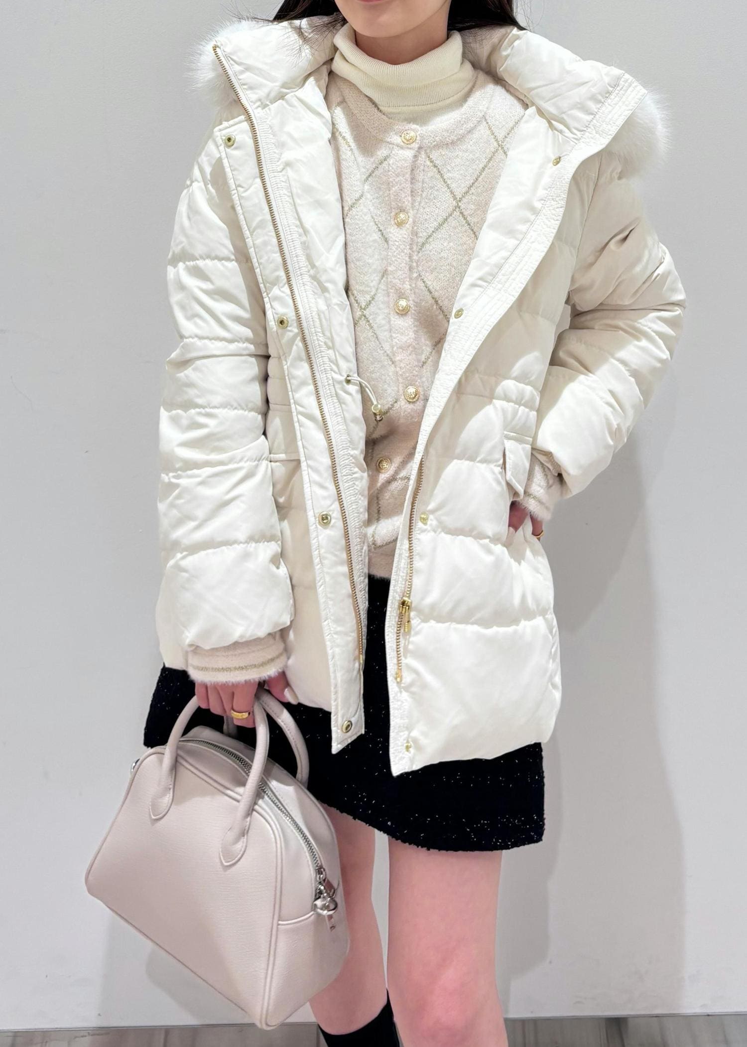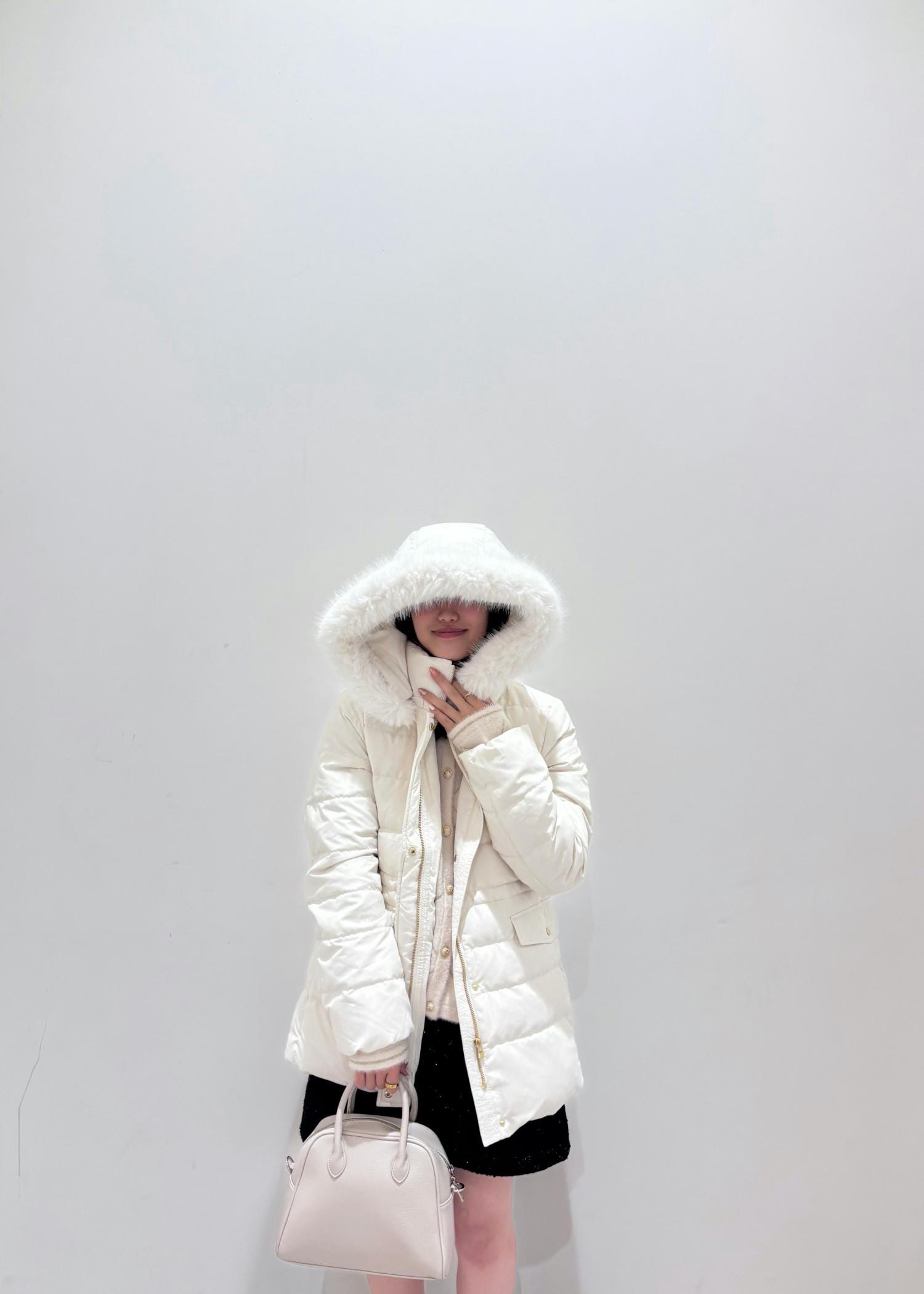 ファー付き白ダウンで上品な大人可愛いコーデ♡