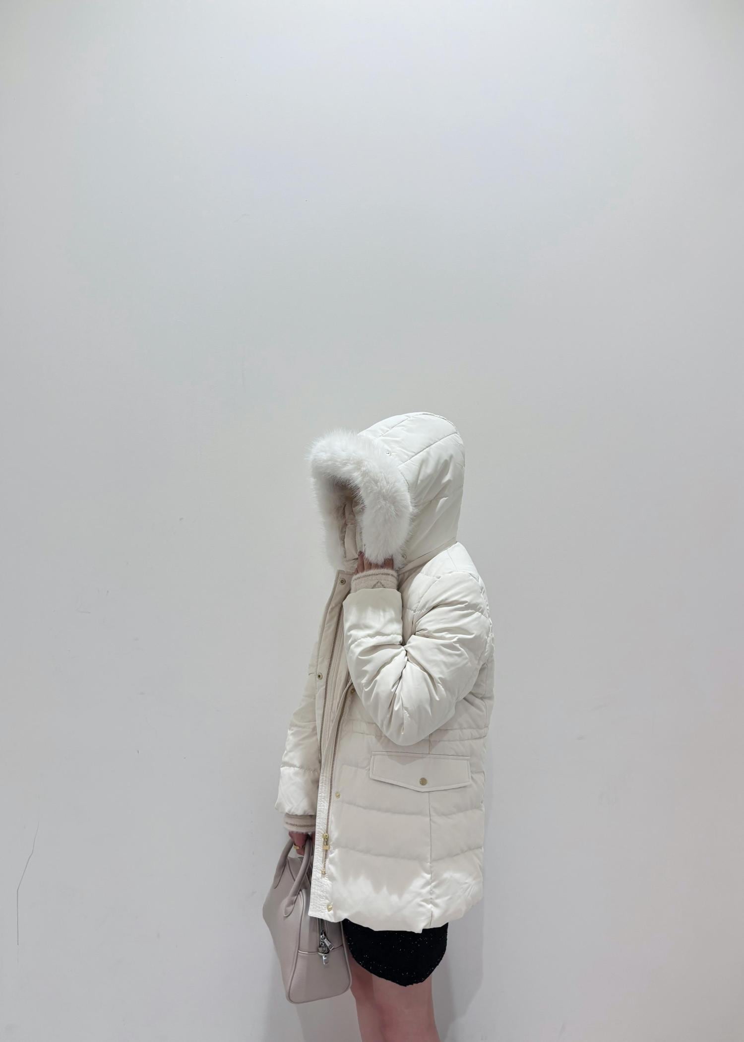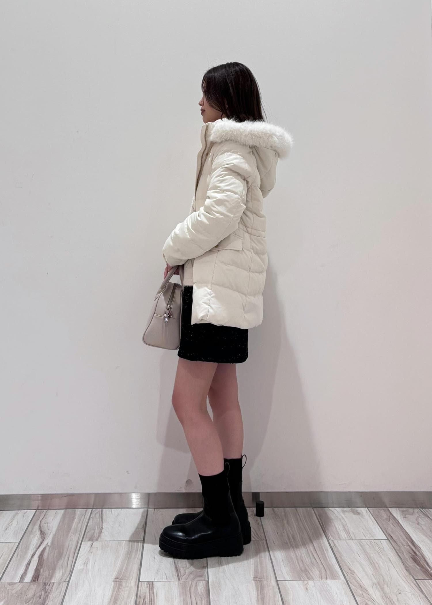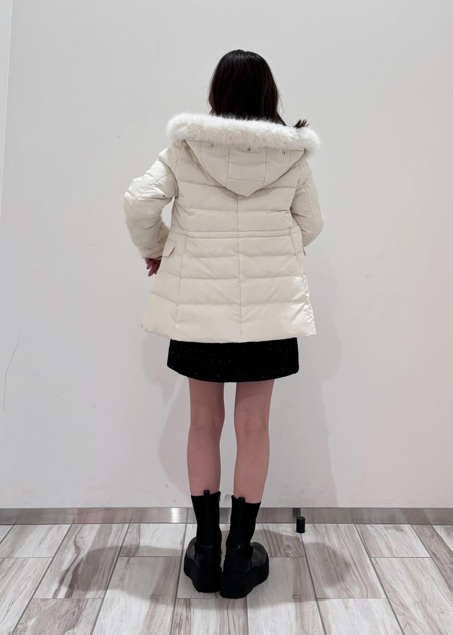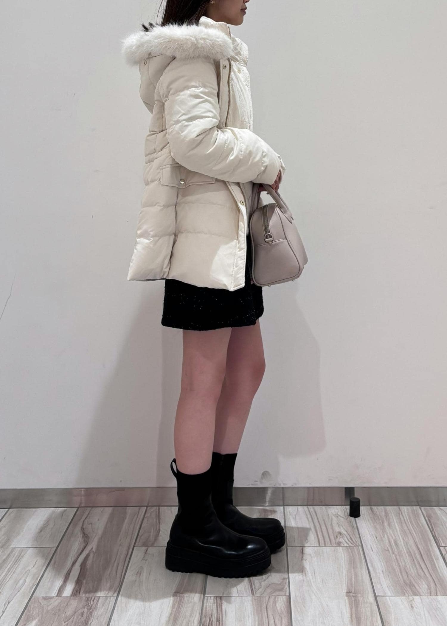 ファー付き白ダウンで上品な大人可愛いコーデ♡