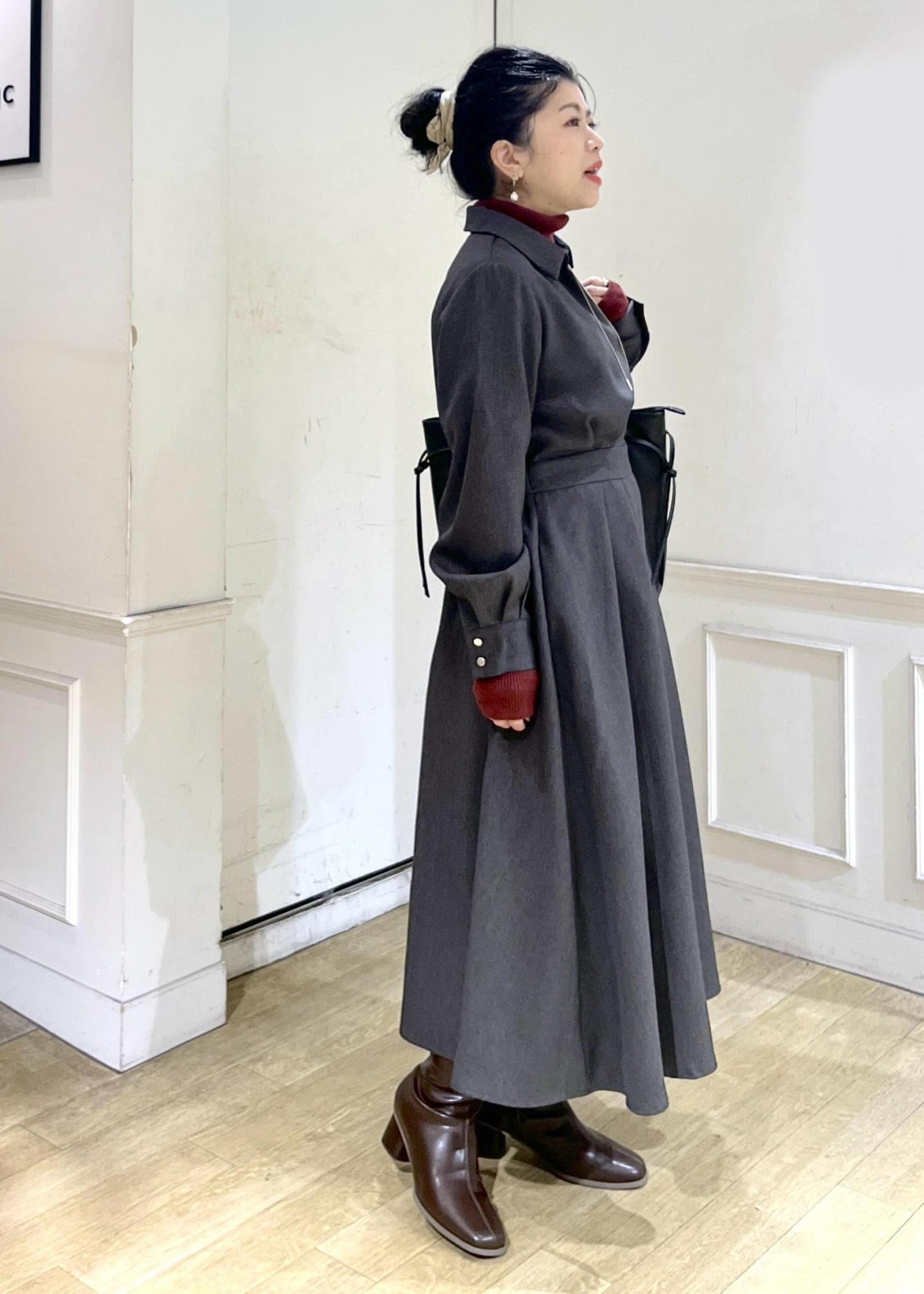 綺麗目スタイリングにもお勧めなワンピースを温かみのあるハイネックと合わせて◎