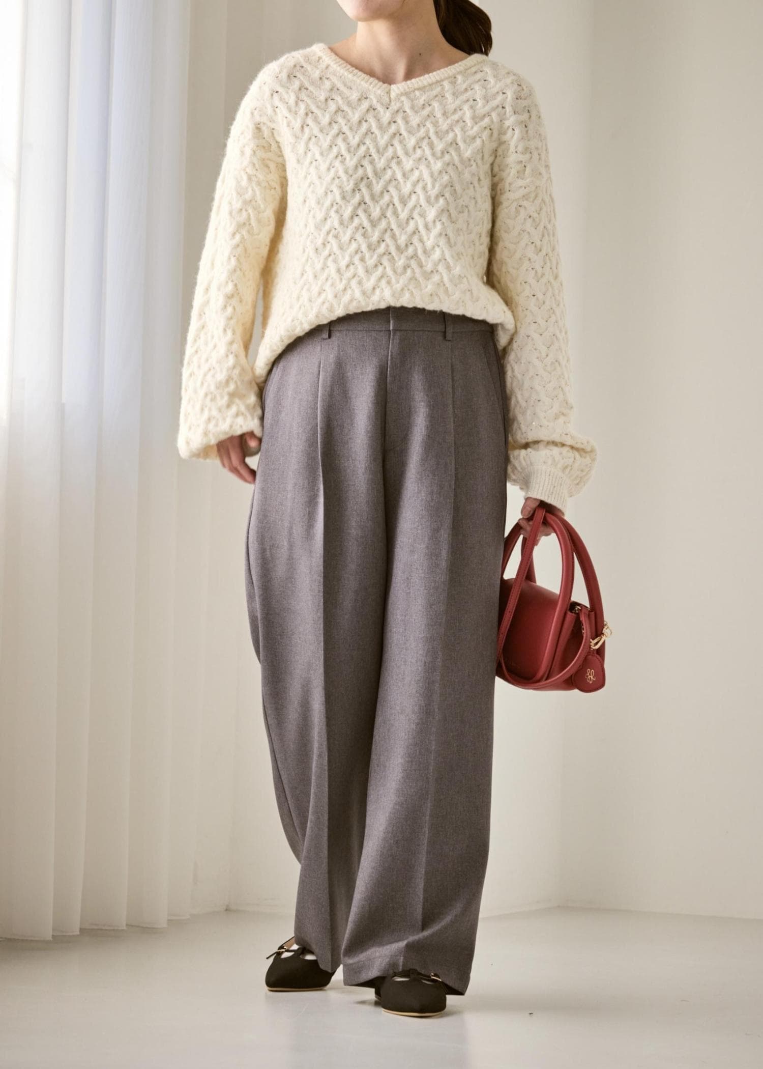 小柄さん向けに作られているので、だぼっと感がなくすっきりした印象で履けるワイドパンツです。 -