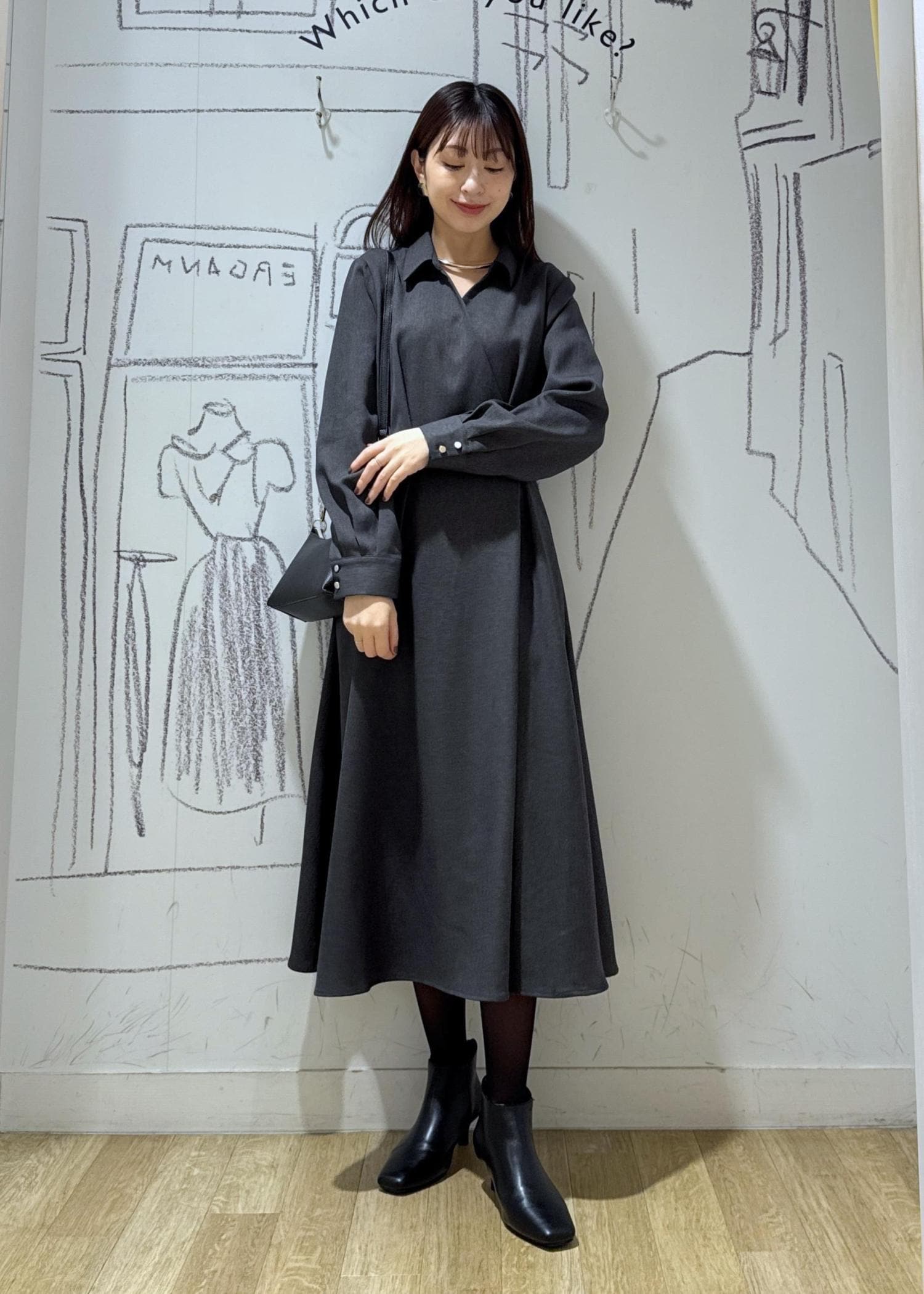 ROPÉ PICNICカシュクールシャツコンシャスワンピースチャコール / M¥7,997レビューそのまま着るのはもちろん、タートルニットなどレイヤードスタイルも様になります。襟付きやカシュクールデザインが大人の女性を上品に引き立たせます。スカート部分は動く度に大きく揺れ感があり華やかです。
