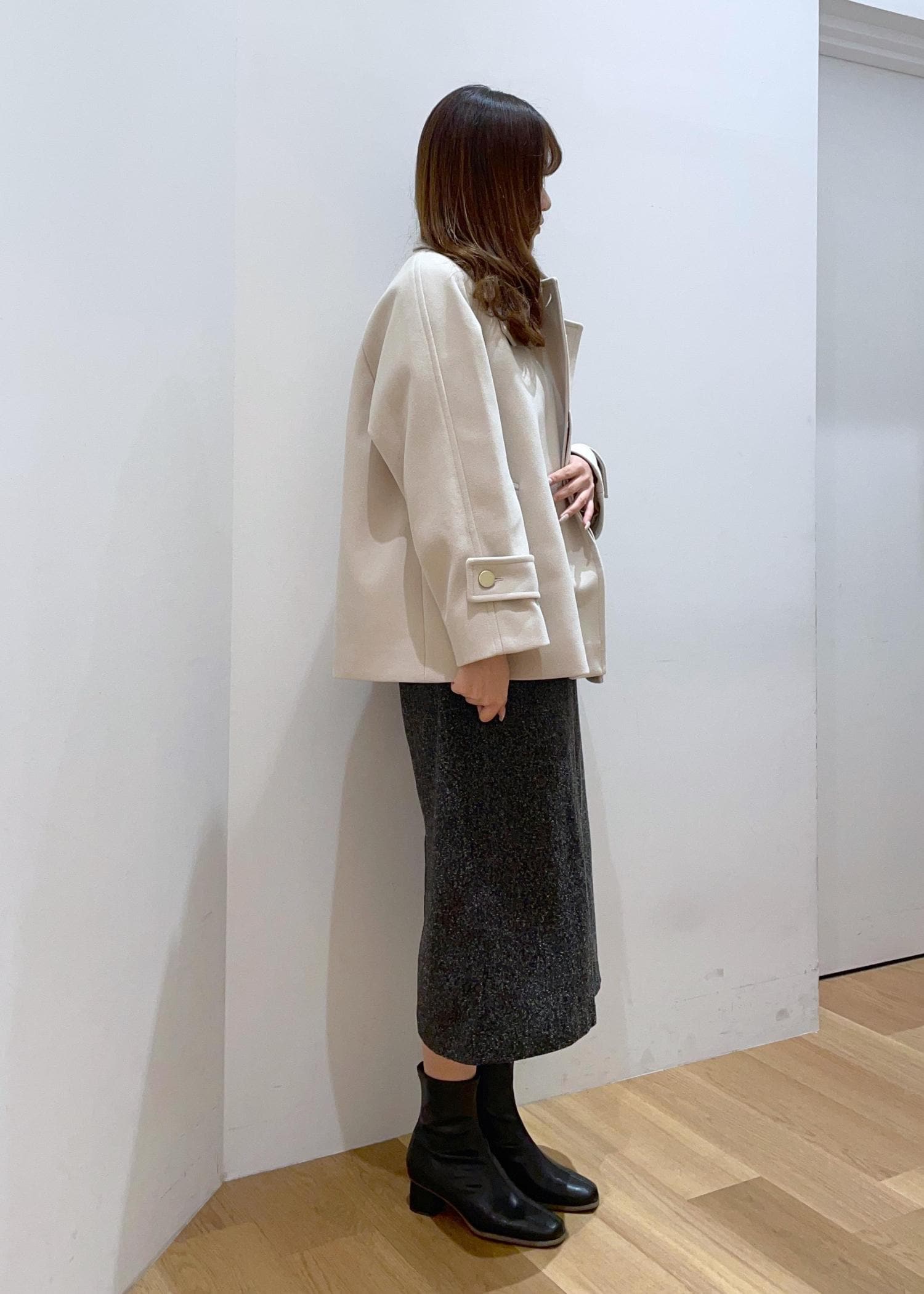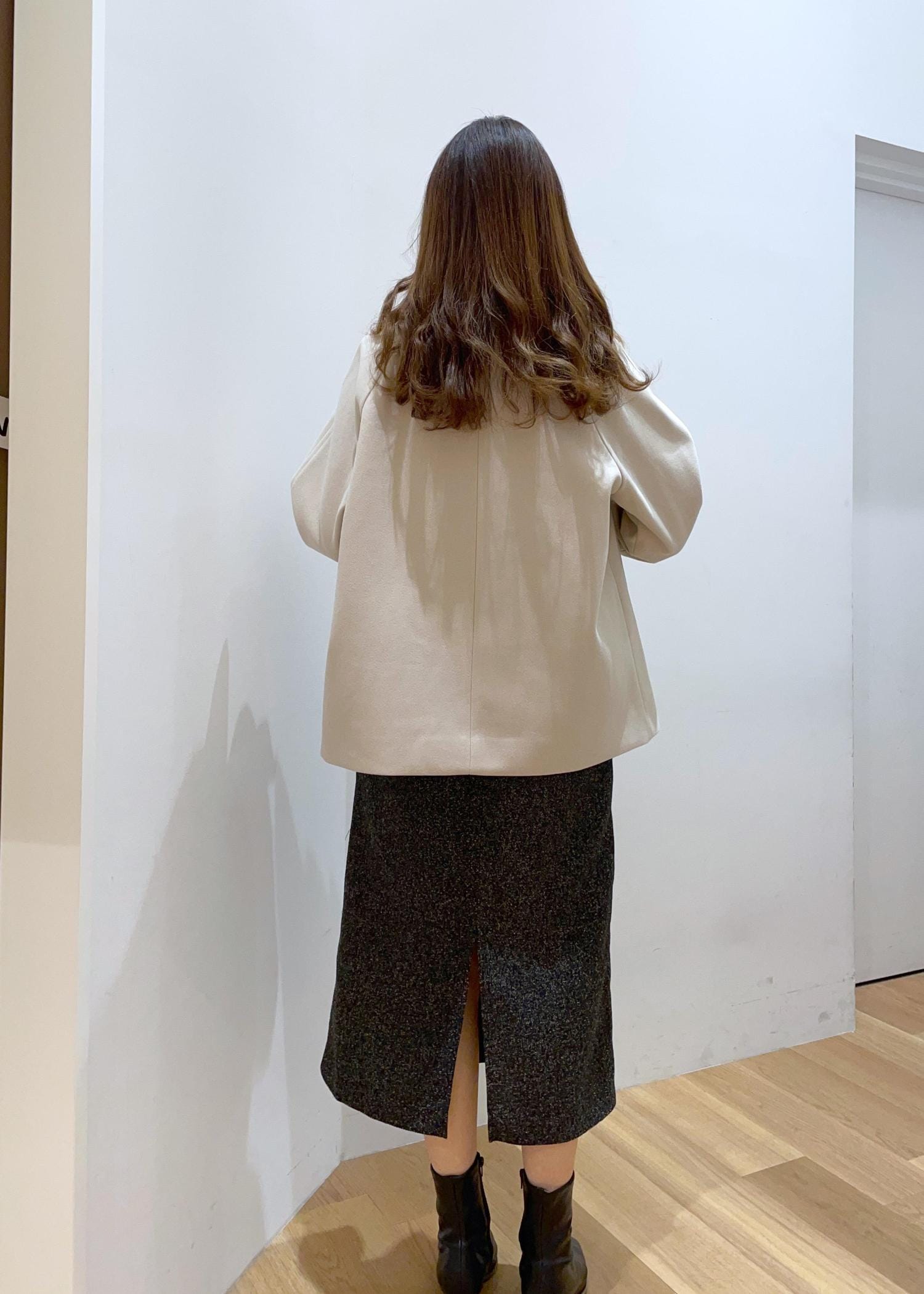 中に厚手のニットを着ても余裕があるくらいゆとりがあります。 -