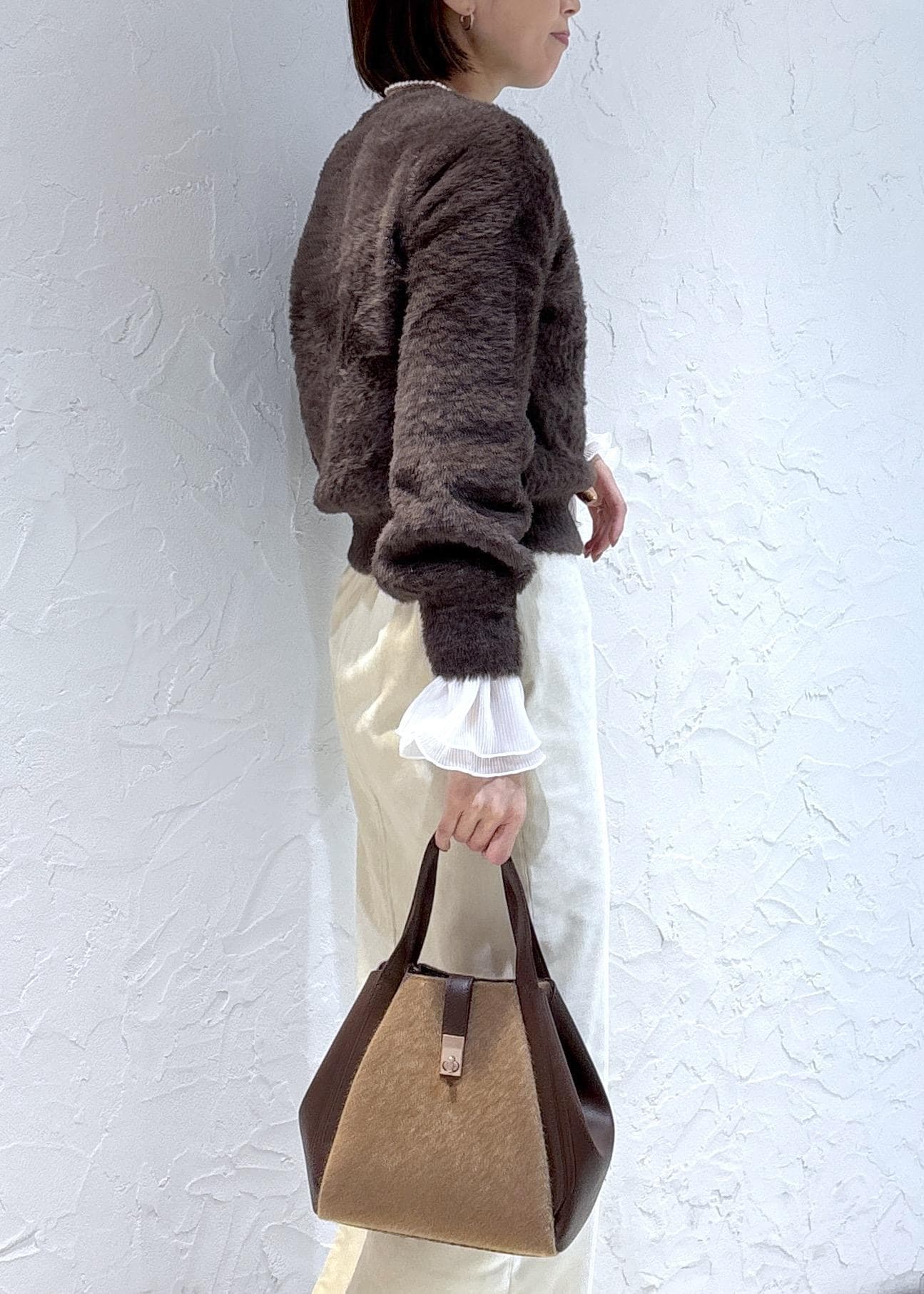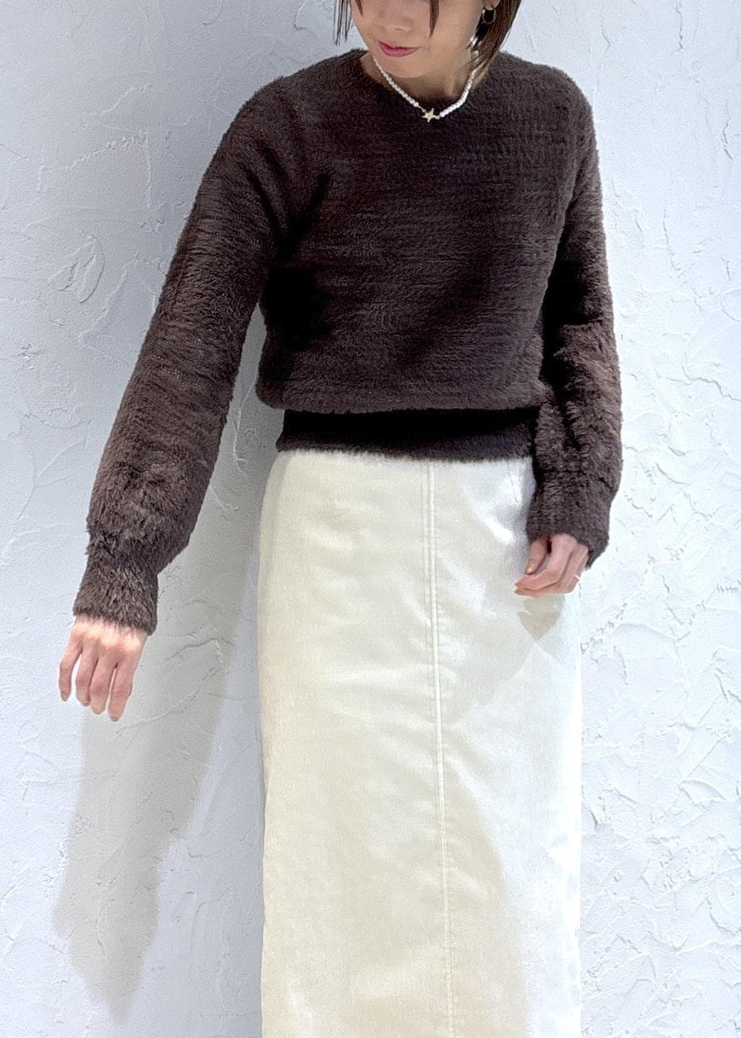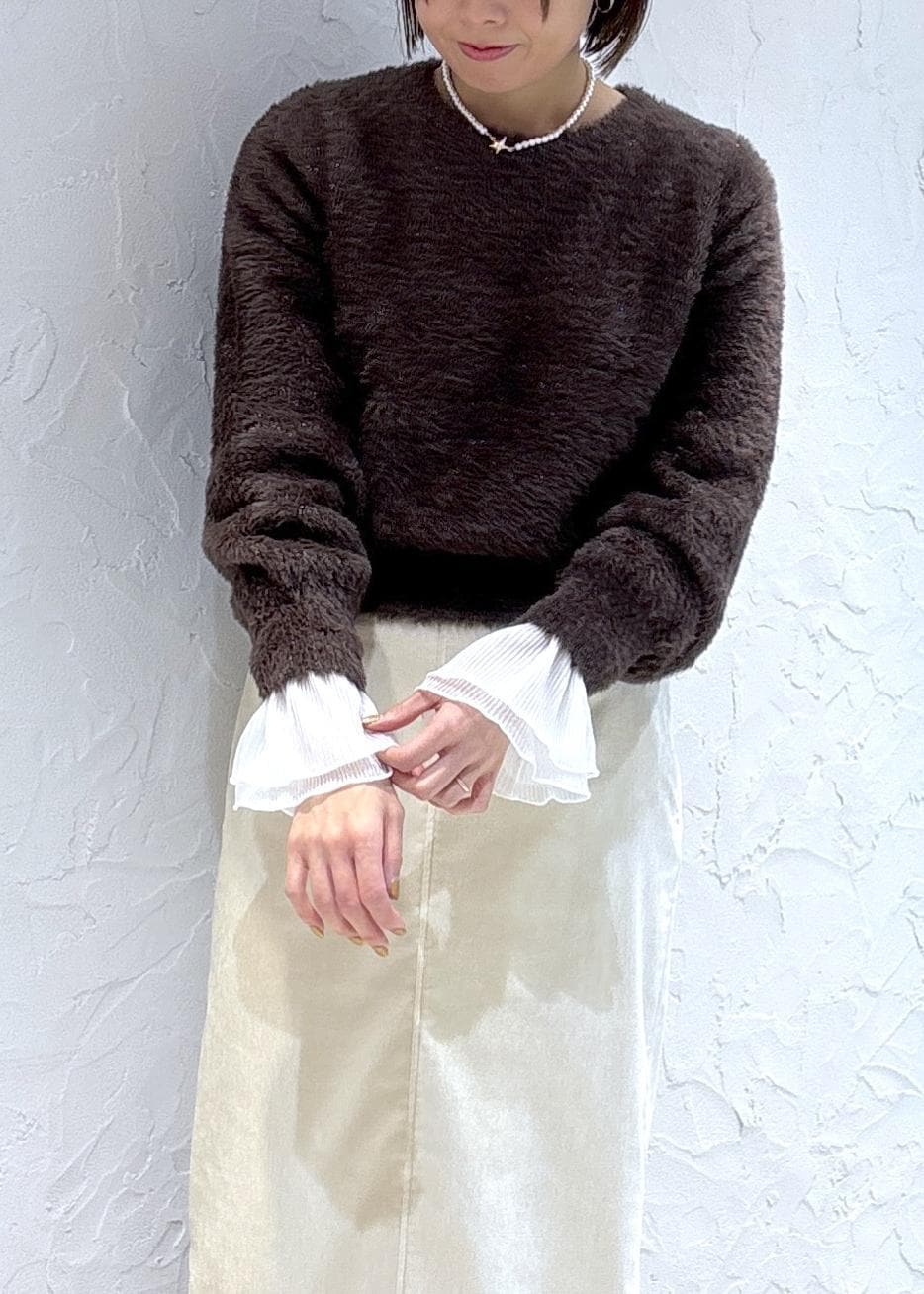 ショートフェザーニットコーデ