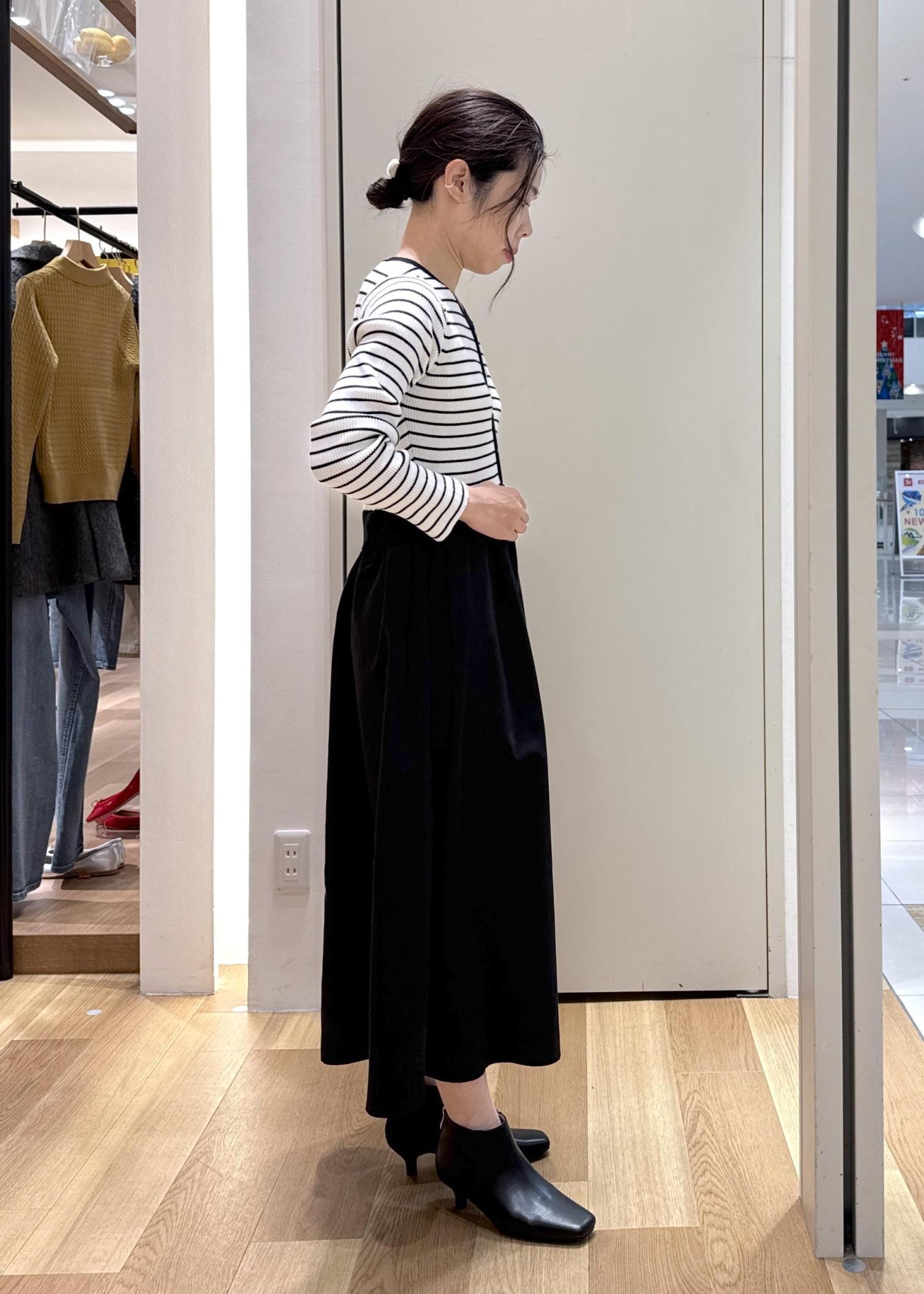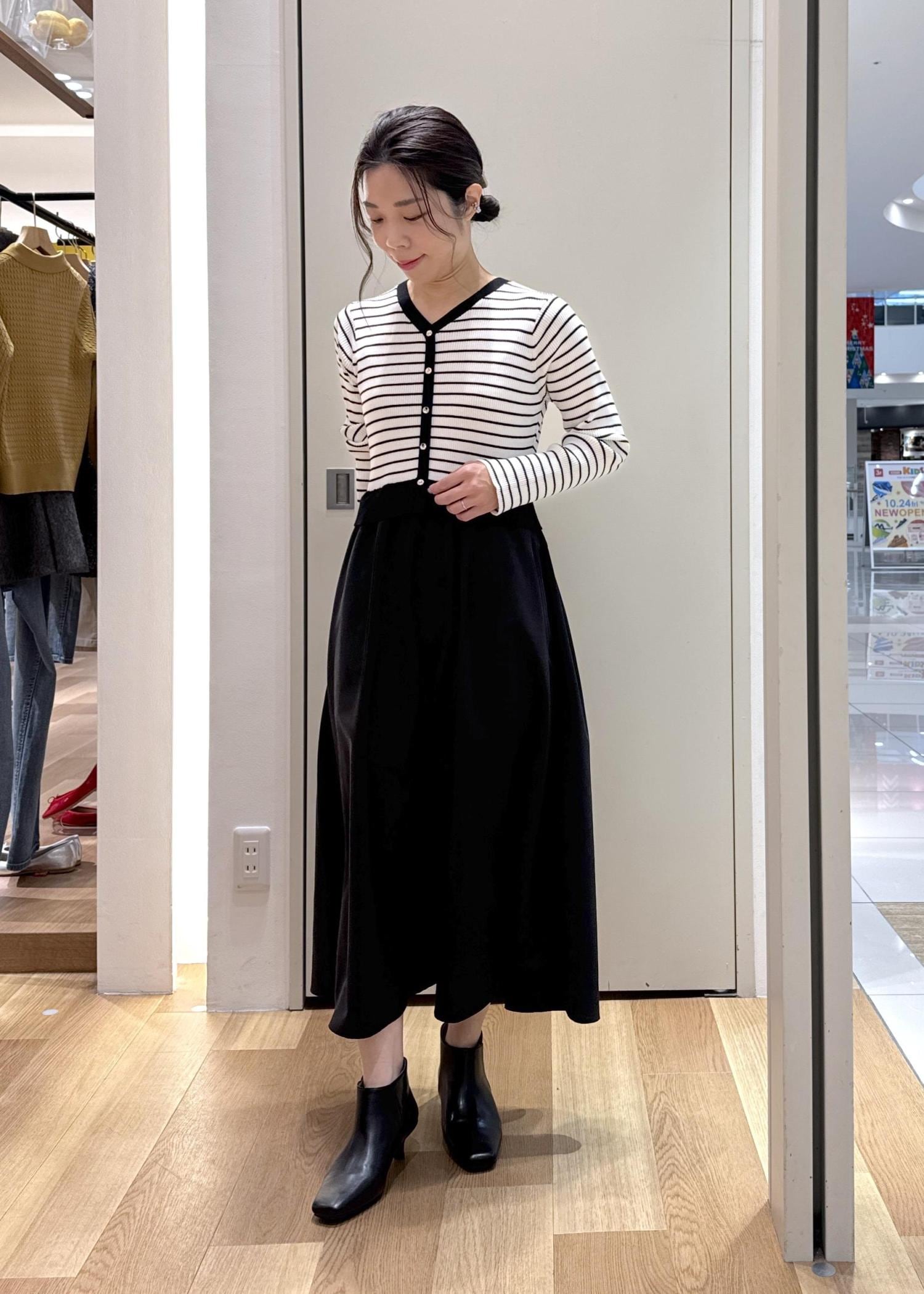 アンクル丈なので、スカートはもちろん、ワイドパンツなどのロングボトムとも相性が良いです。 -