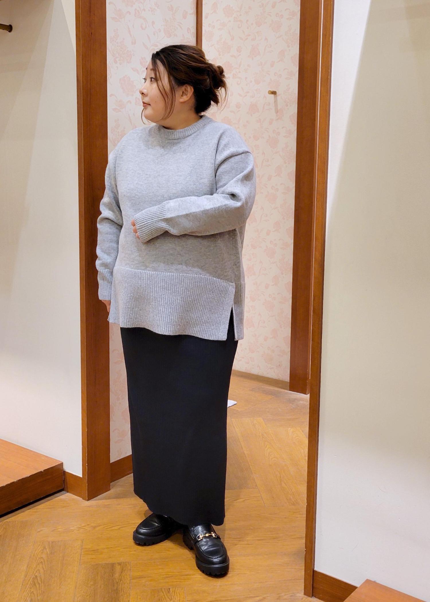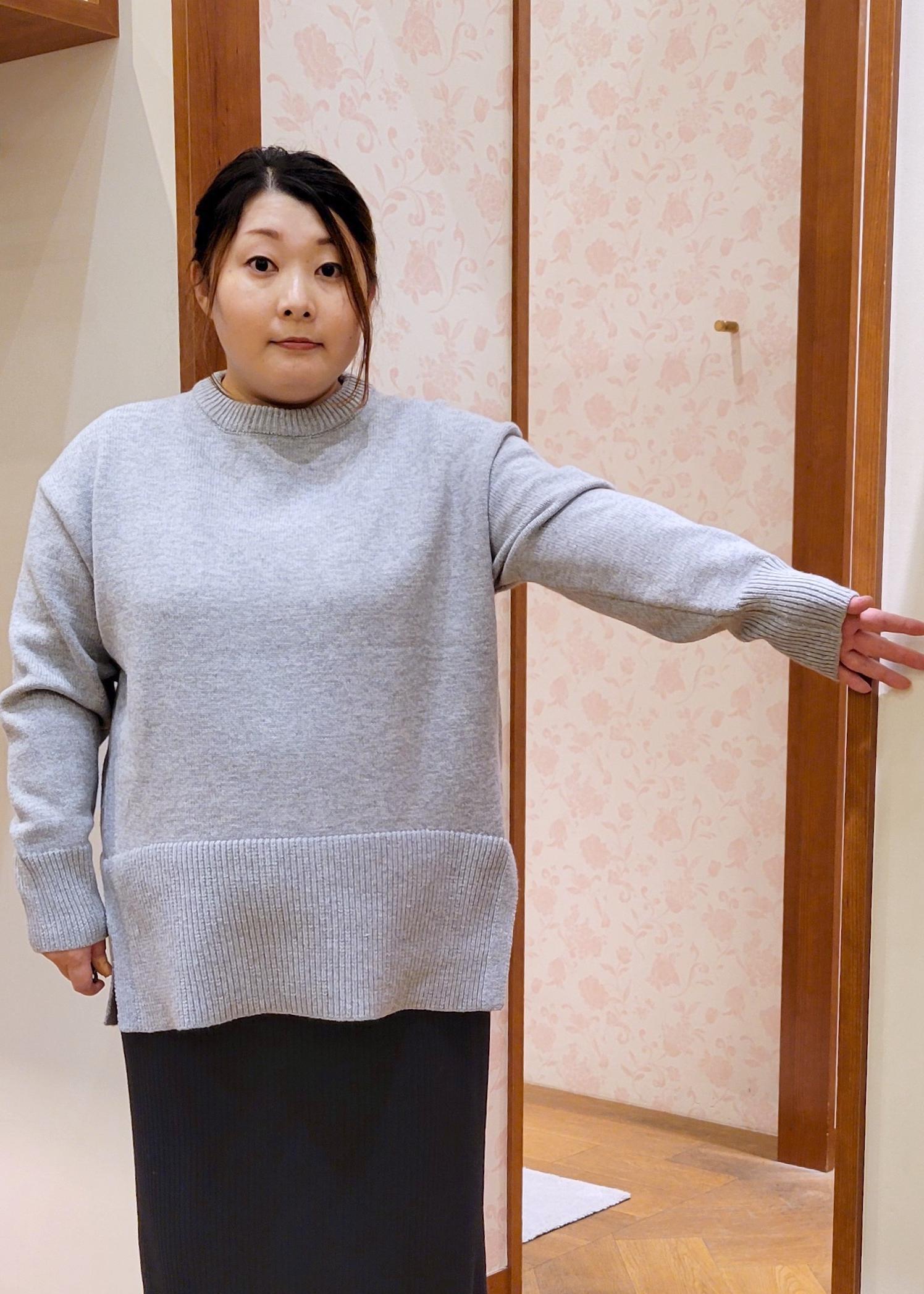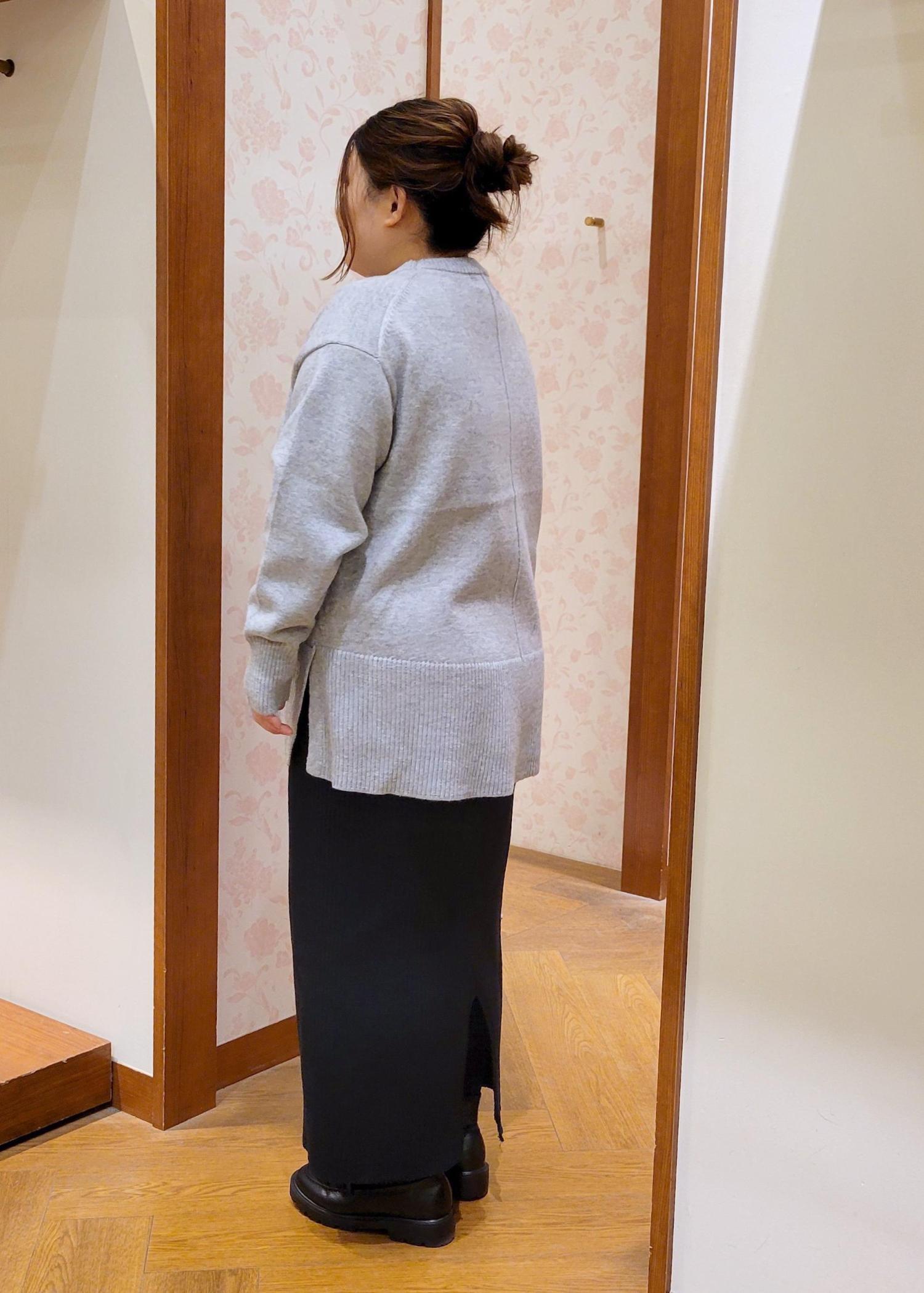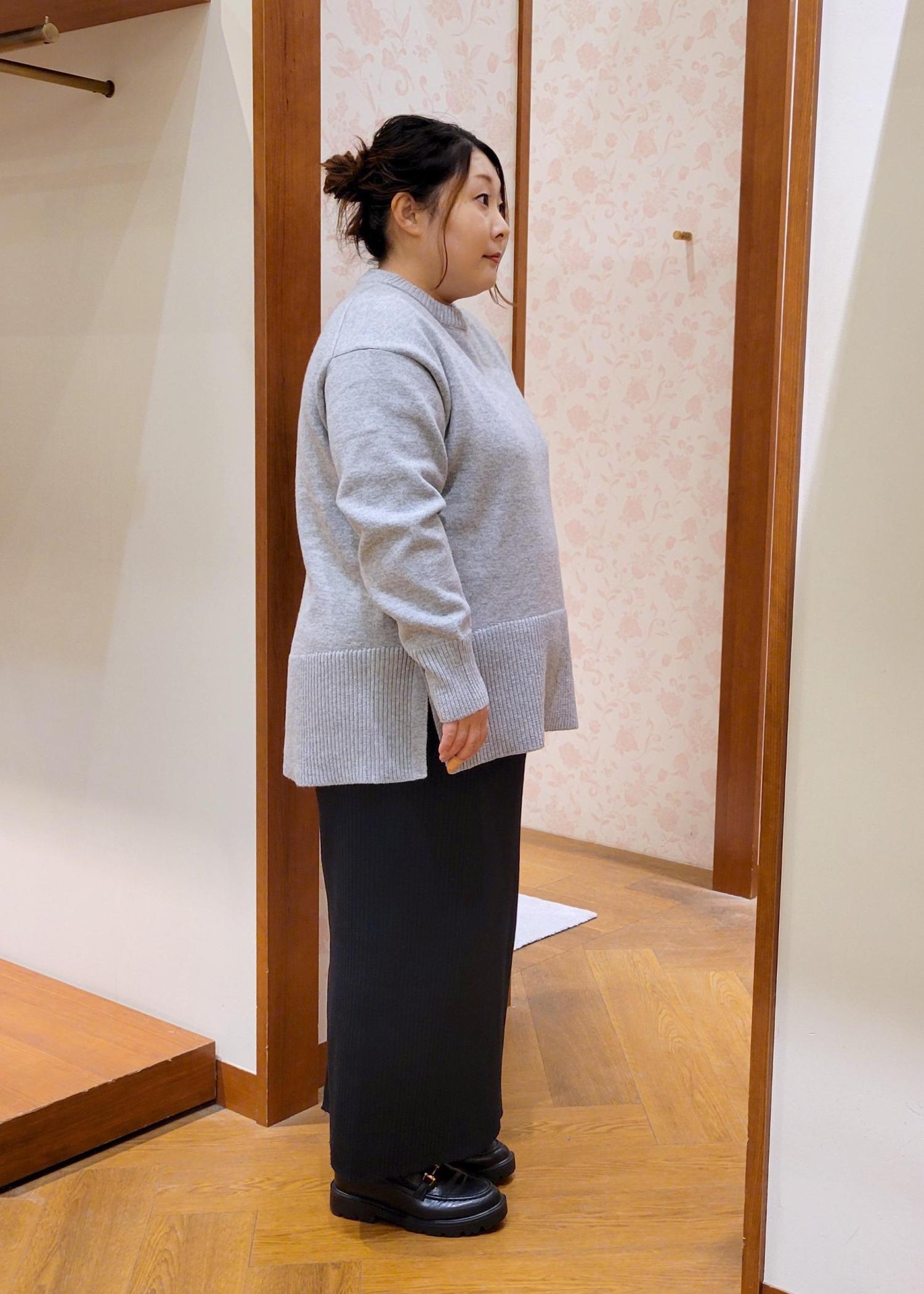 NEW!ROPÉ PICNIC【新色追加】着丈が選べるクルーネックサイドスリットニットプルオーバー/イージーケアライトグレー / MT¥3,993レビュー全体的にゆったりシルエットです。着丈が選べるニットのMTサイズ着用してます。お尻が隠れるぐらいの着丈で体型カバーしてくれます。チクチク感もないので安心して着れます。
