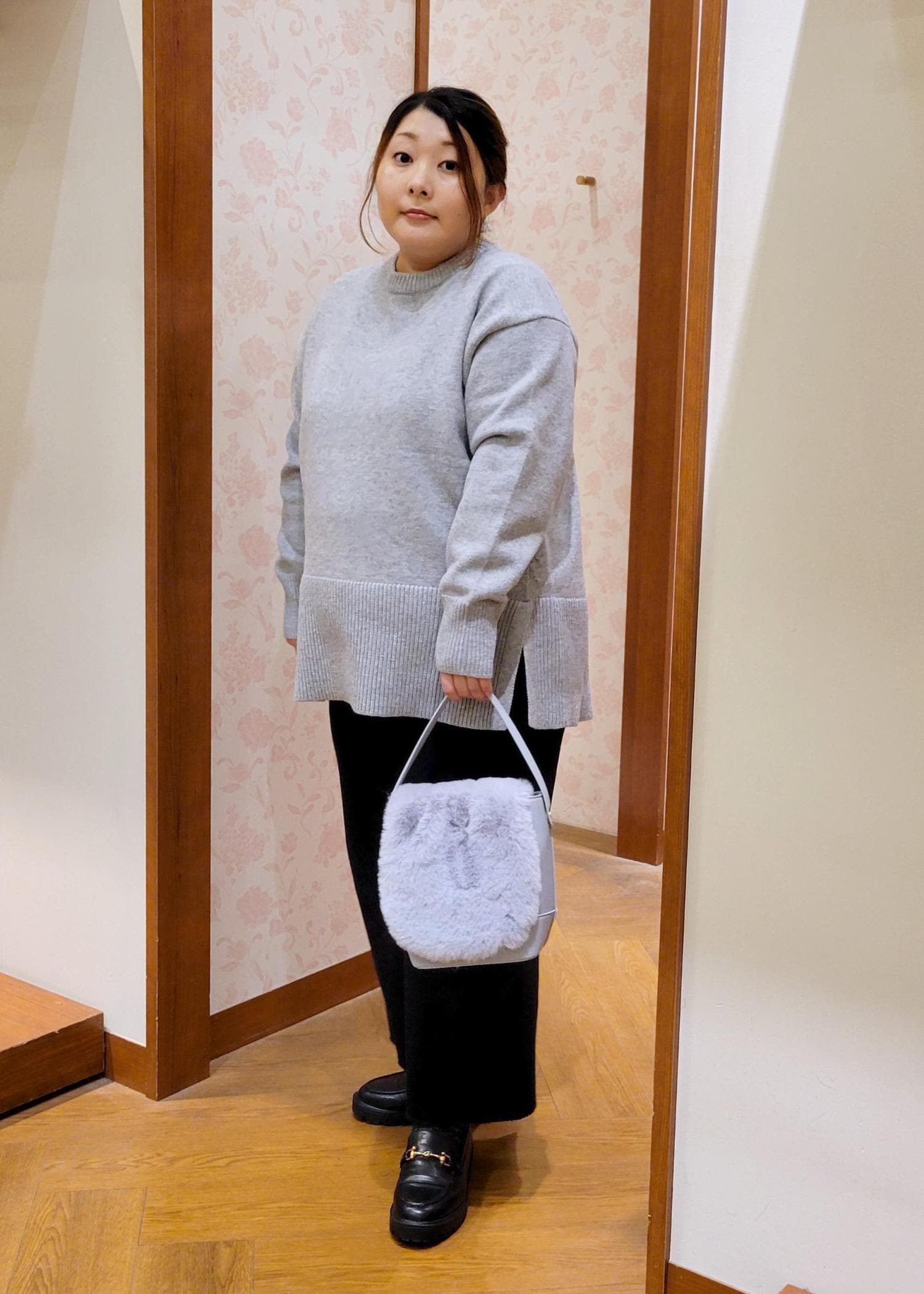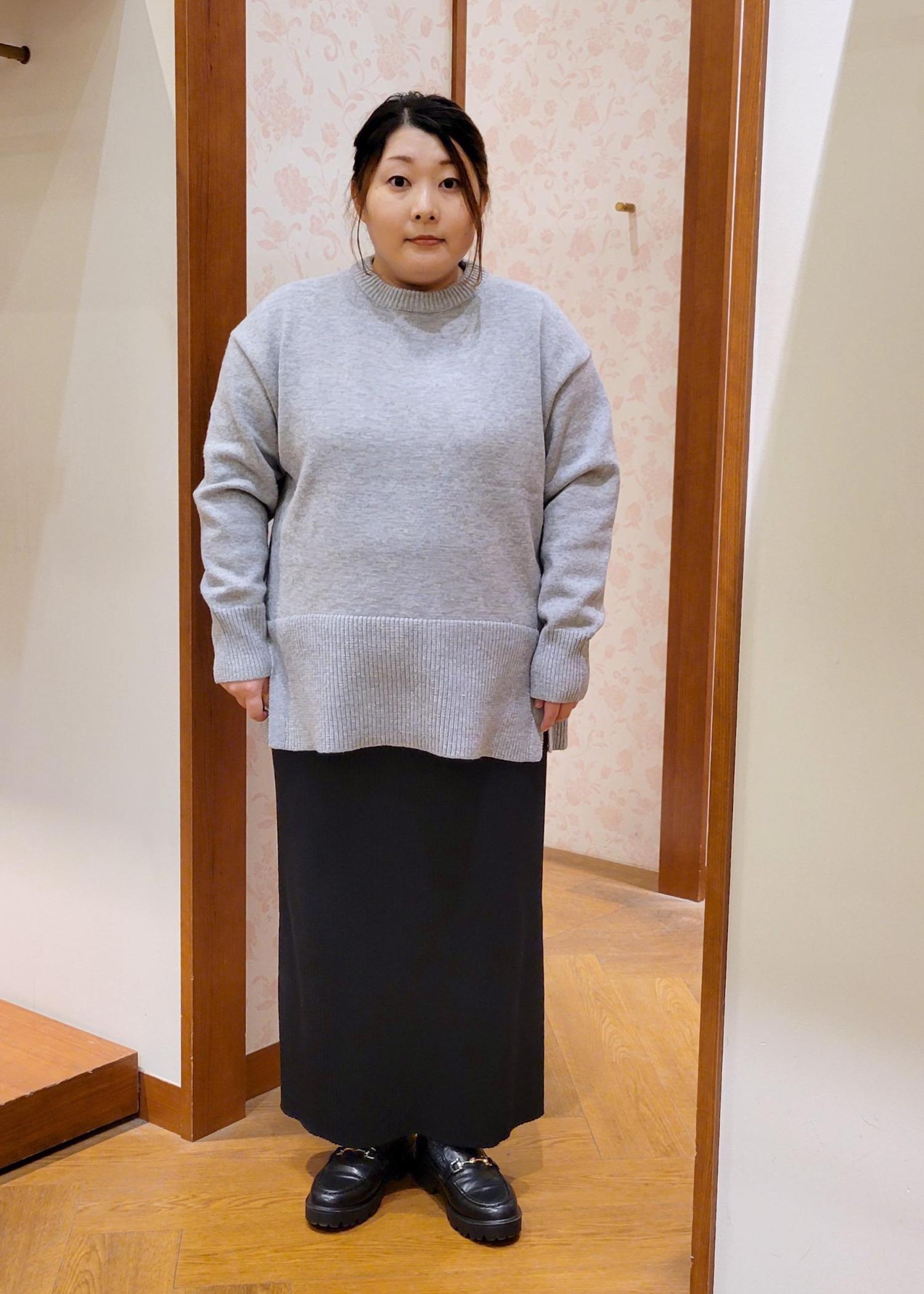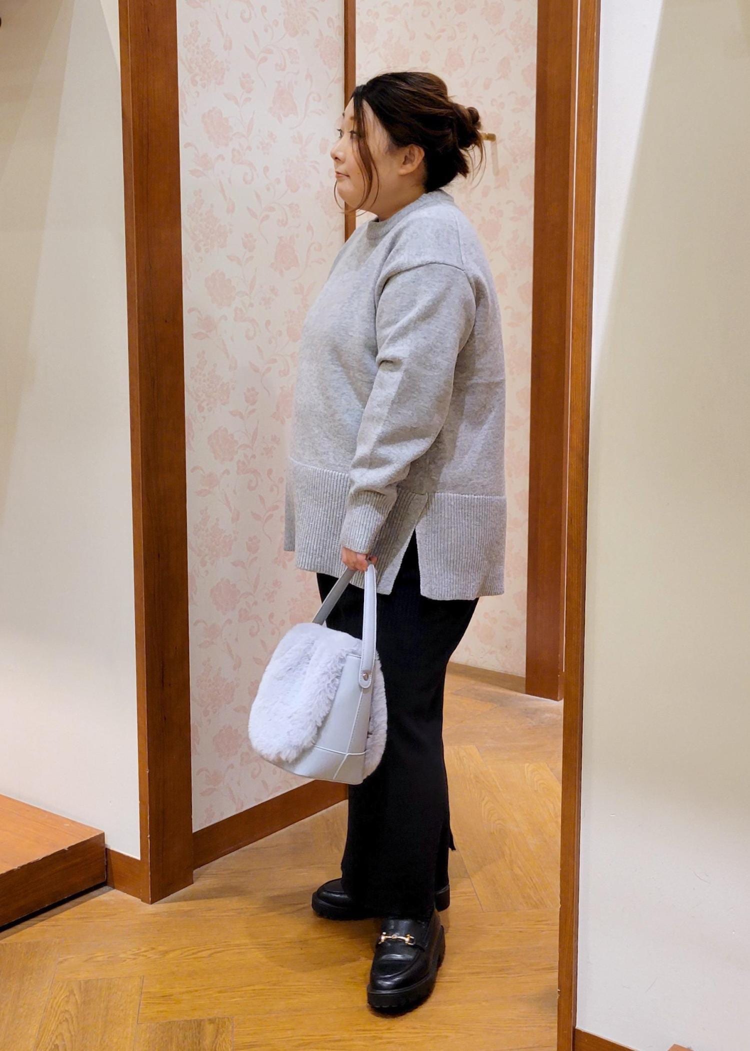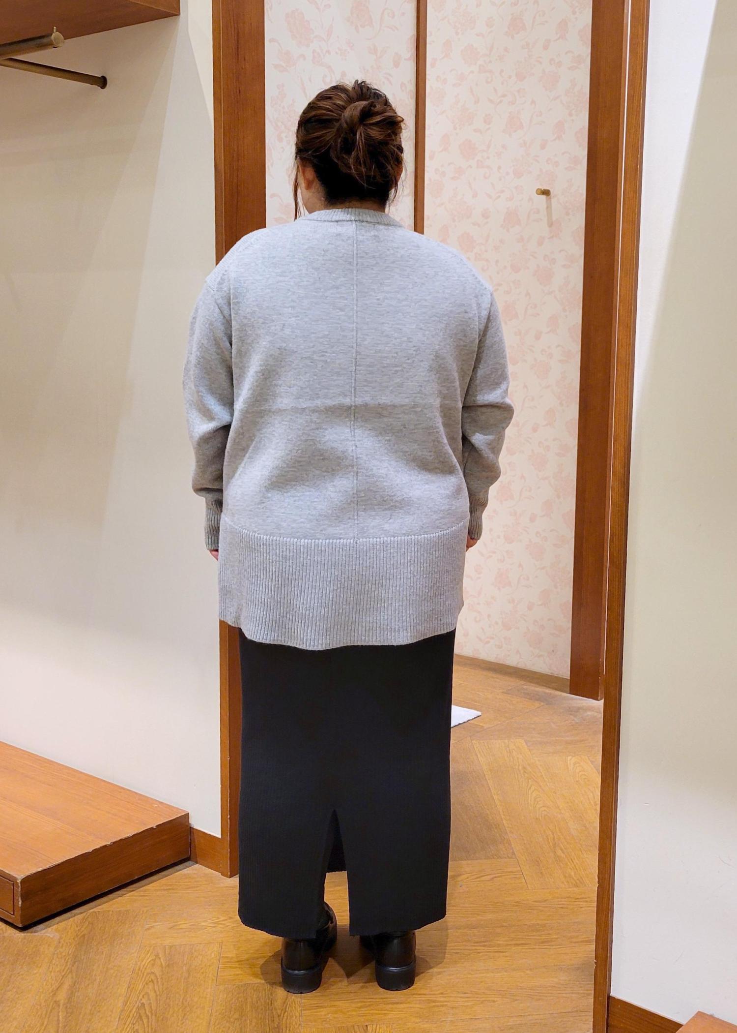 NEW!ROPÉ PICNIC【新色追加】着丈が選べるクルーネックサイドスリットニットプルオーバー/イージーケアライトグレー / MT¥3,993レビュー全体的にゆったりシルエットです。着丈が選べるニットのMTサイズ着用してます。お尻が隠れるぐらいの着丈で体型カバーしてくれます。チクチク感もないので安心して着れます。