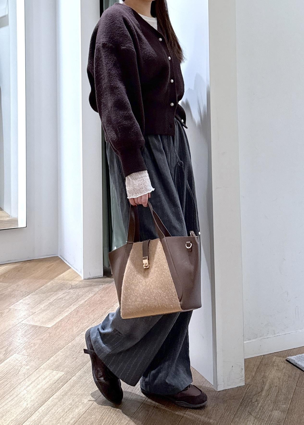 バイカラーの、素材が秋冬らしいカバンをアクセントに持ちました。