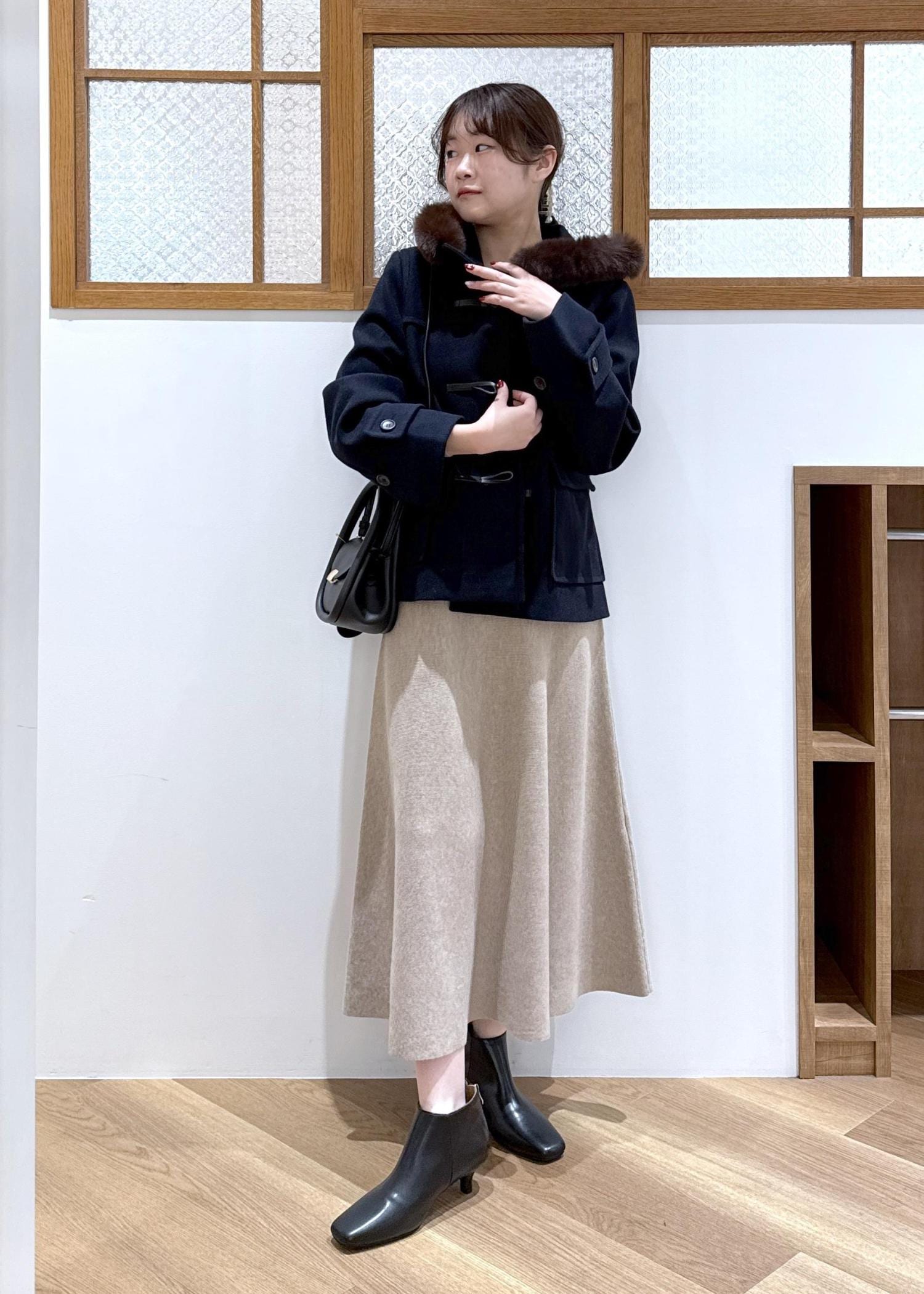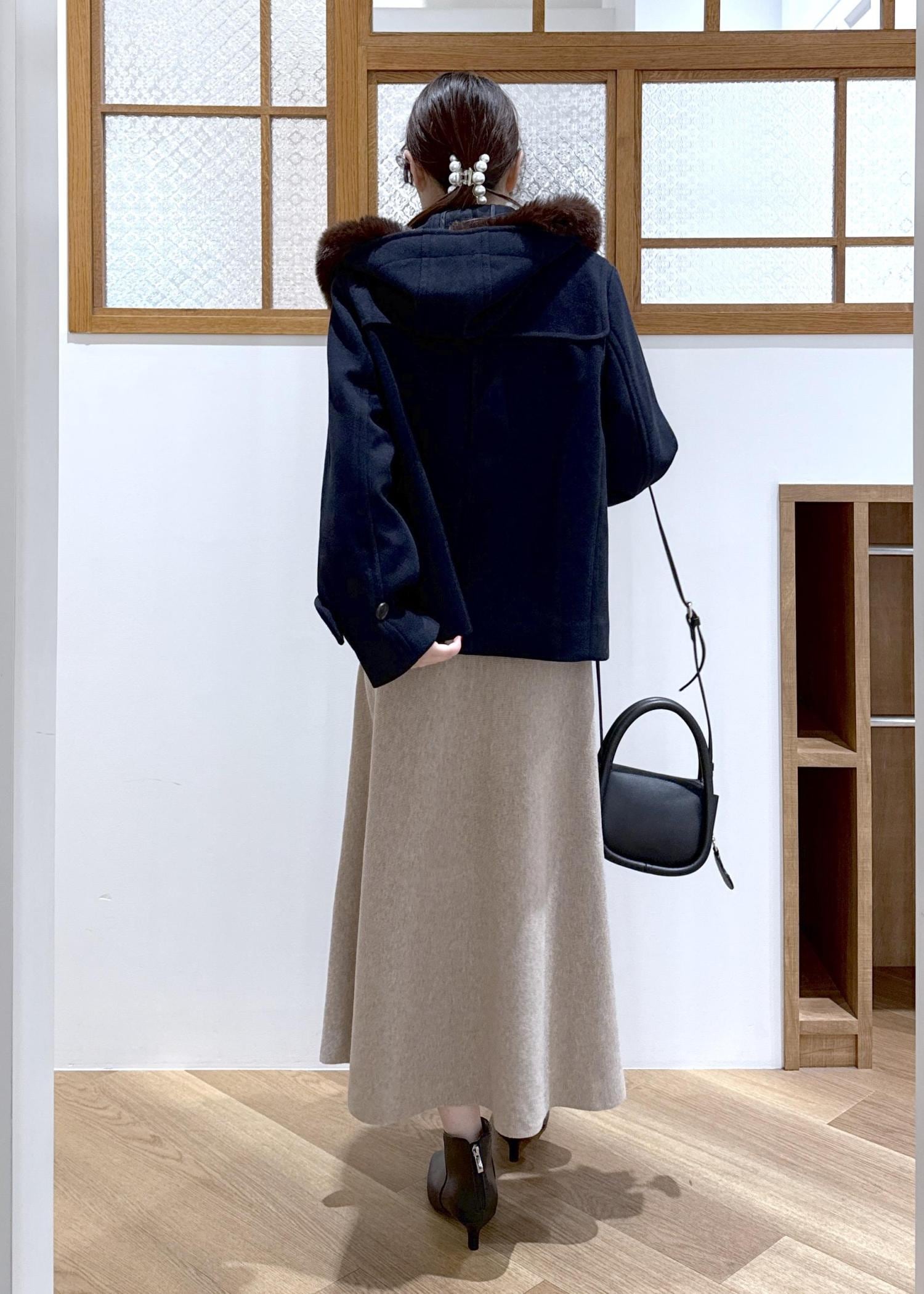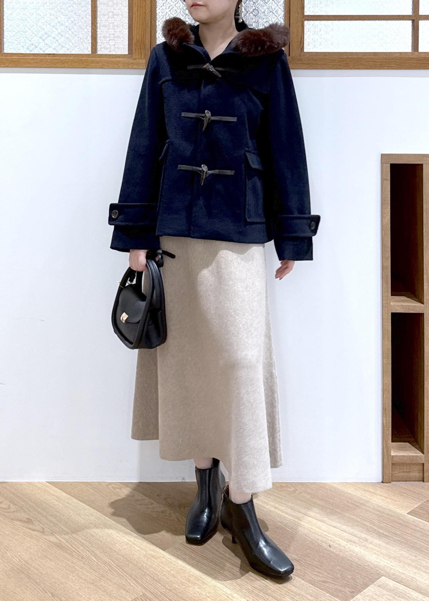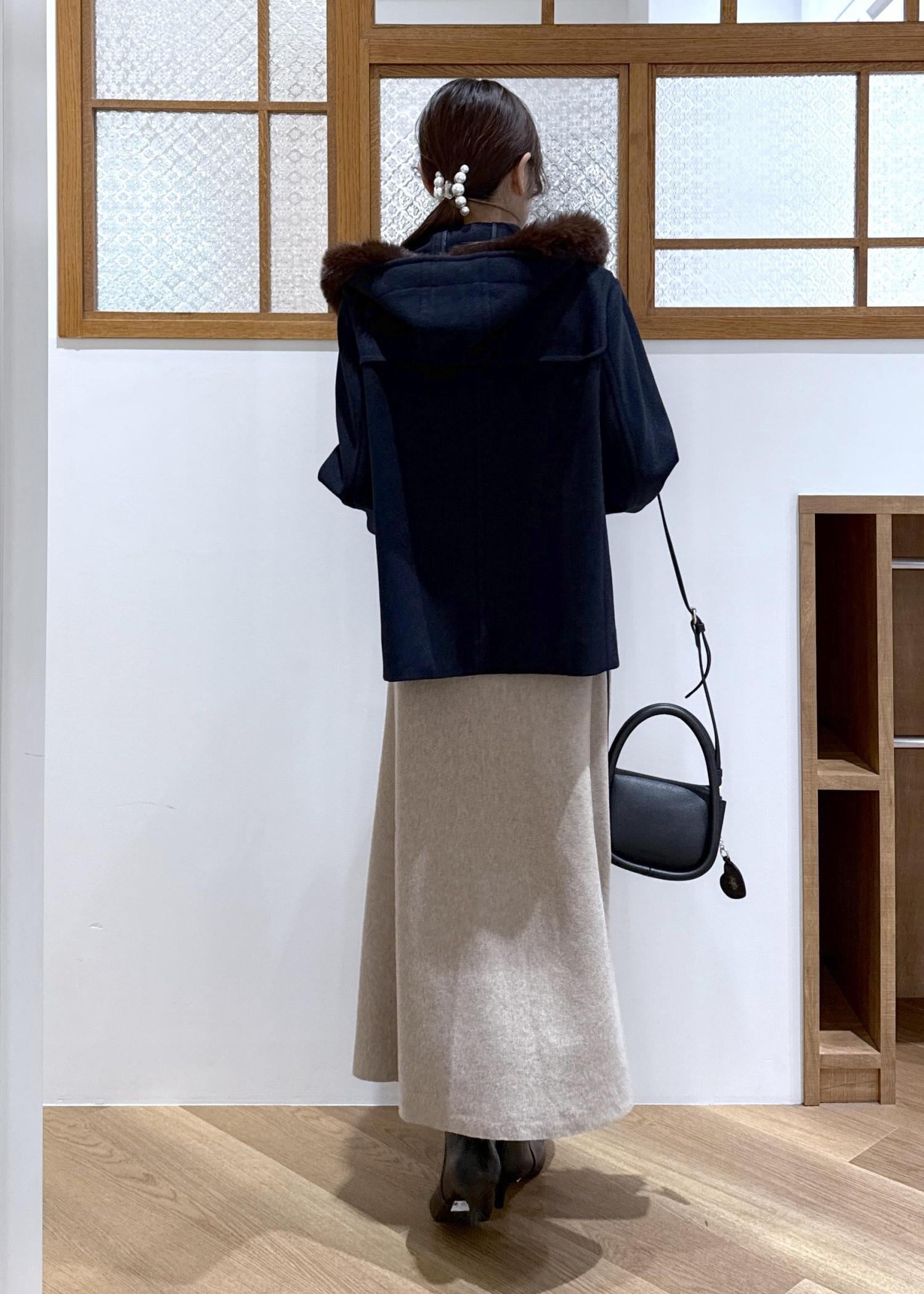 ファー付きのダッフルコートを羽織り、さらに華やかな印象に仕上げました。