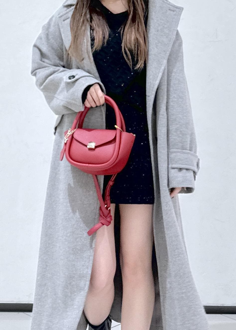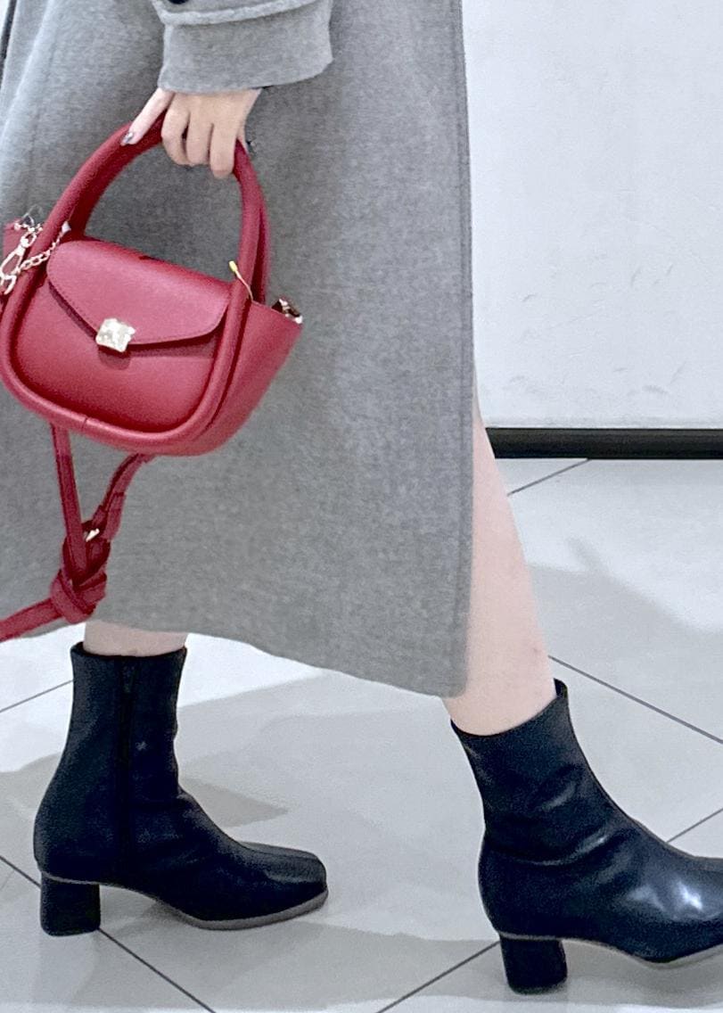 赤のバッグでクリスマス感も出した冬のデートコーデです♡