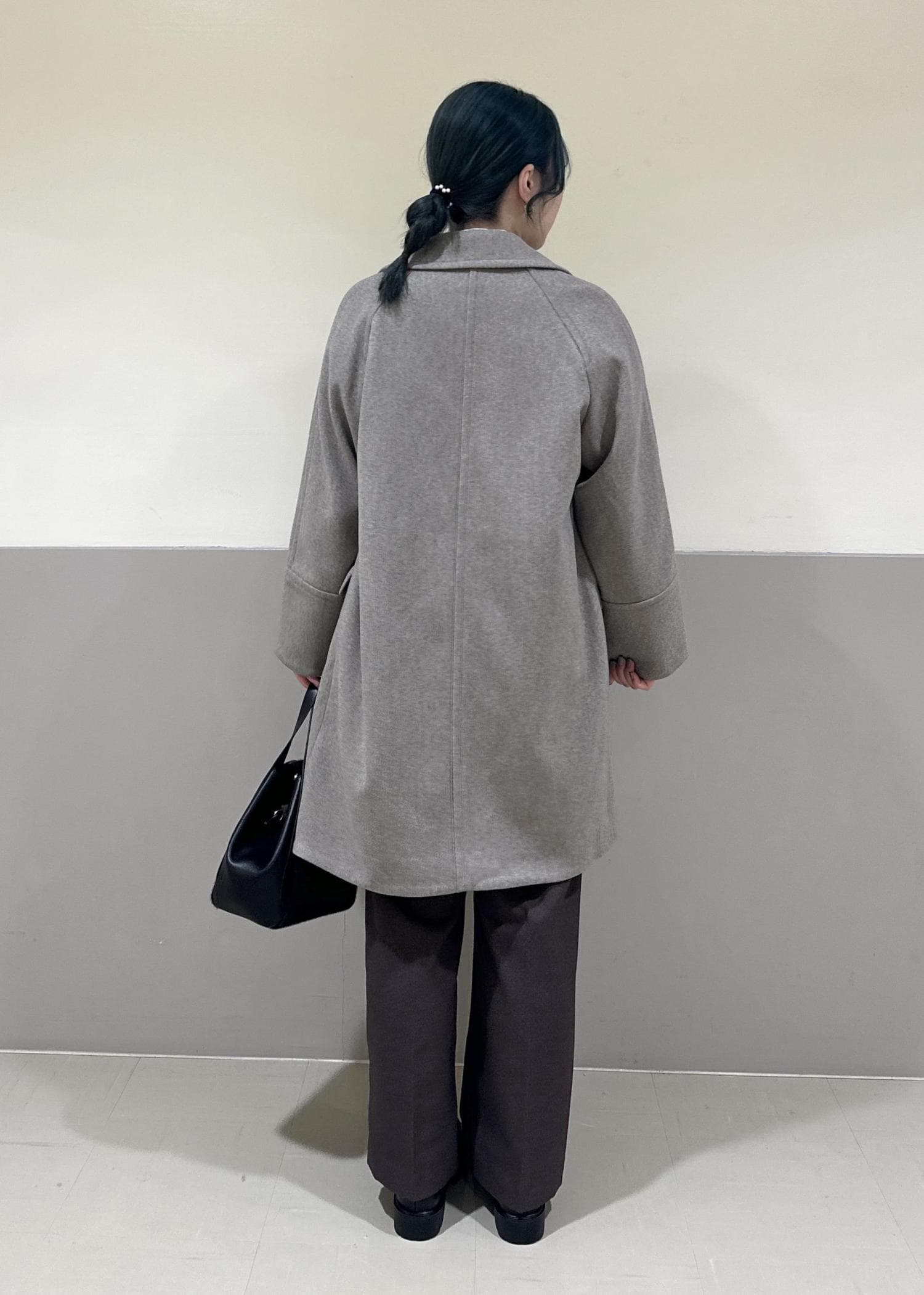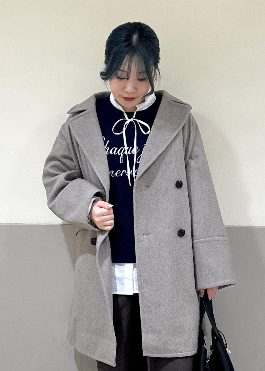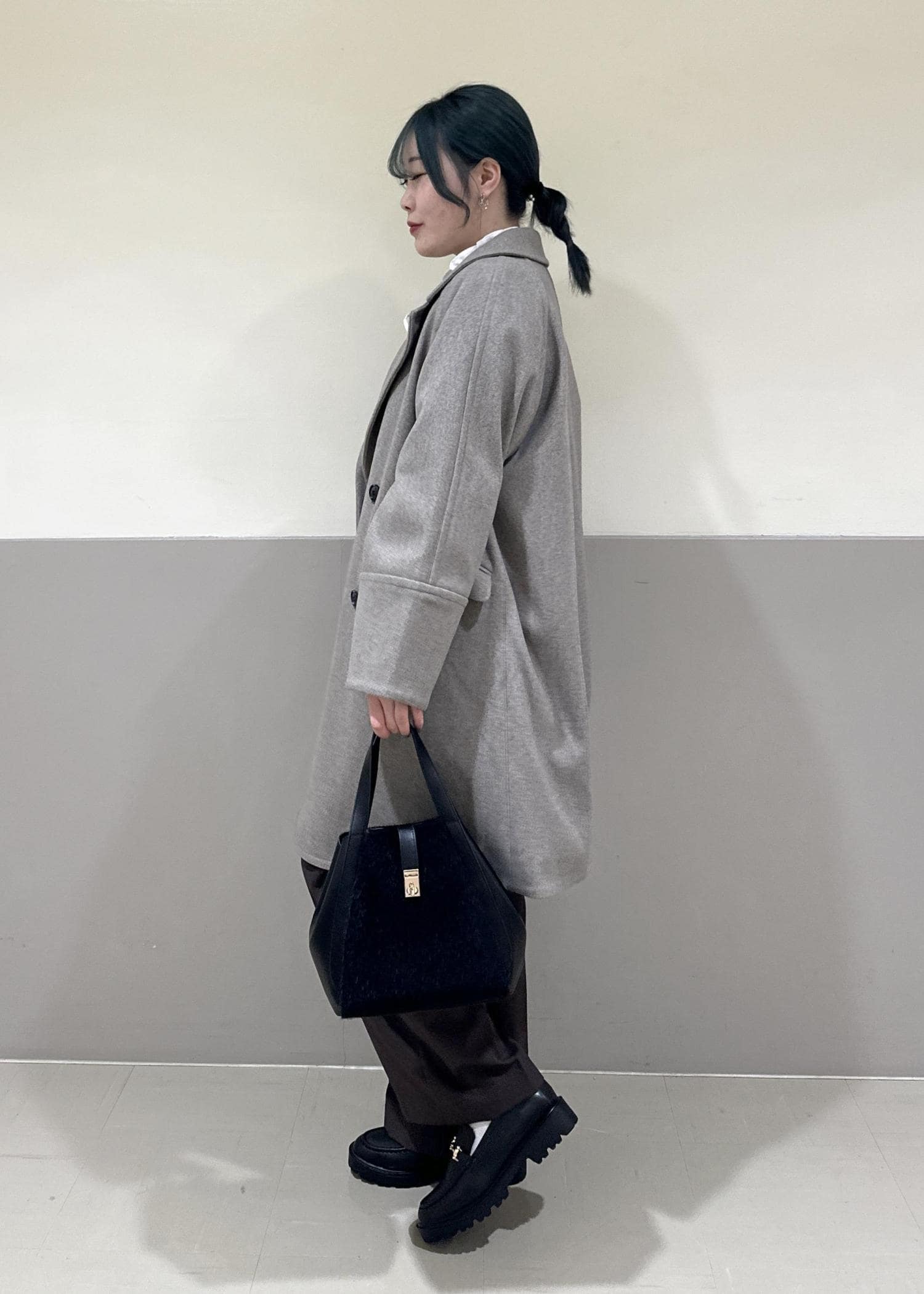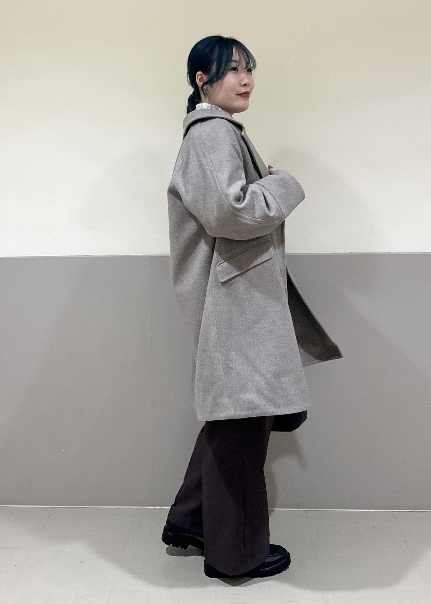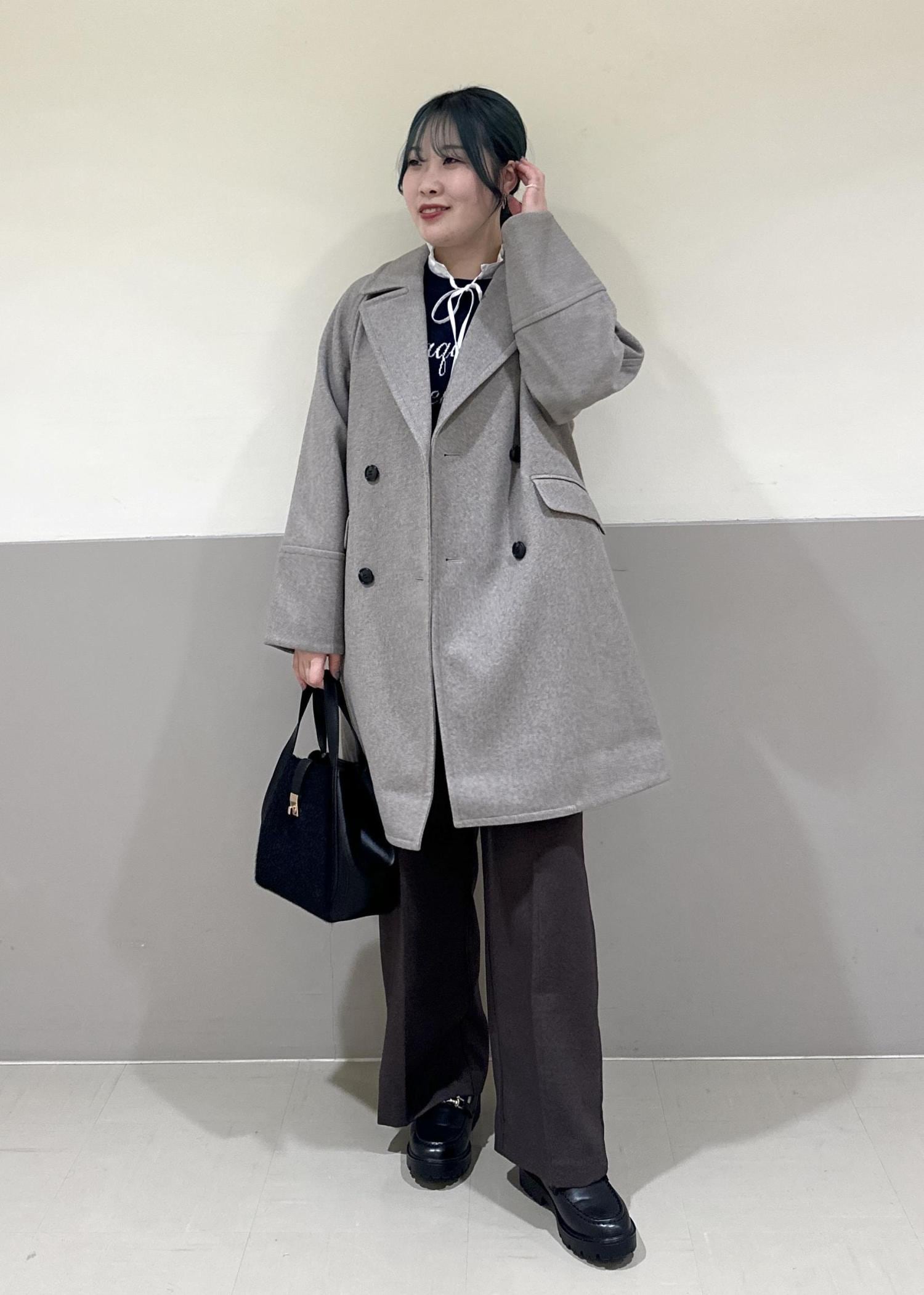 ジャケットを羽織らなくてもきっちり締まって見えるコーディネートに暖かいPコートを合わせた出勤コーデです!