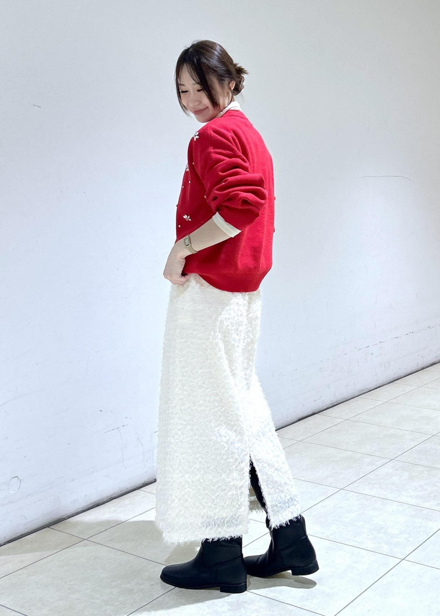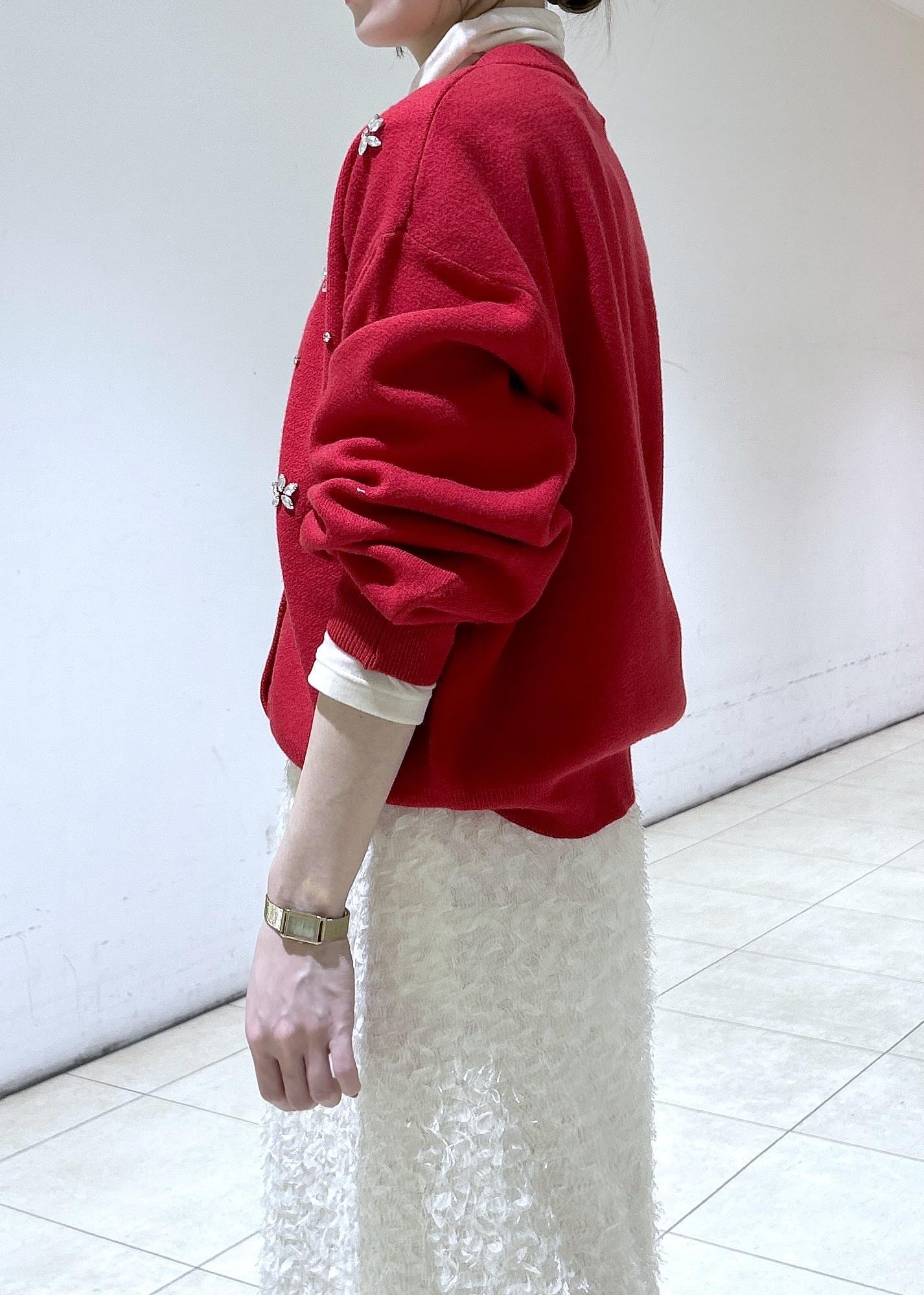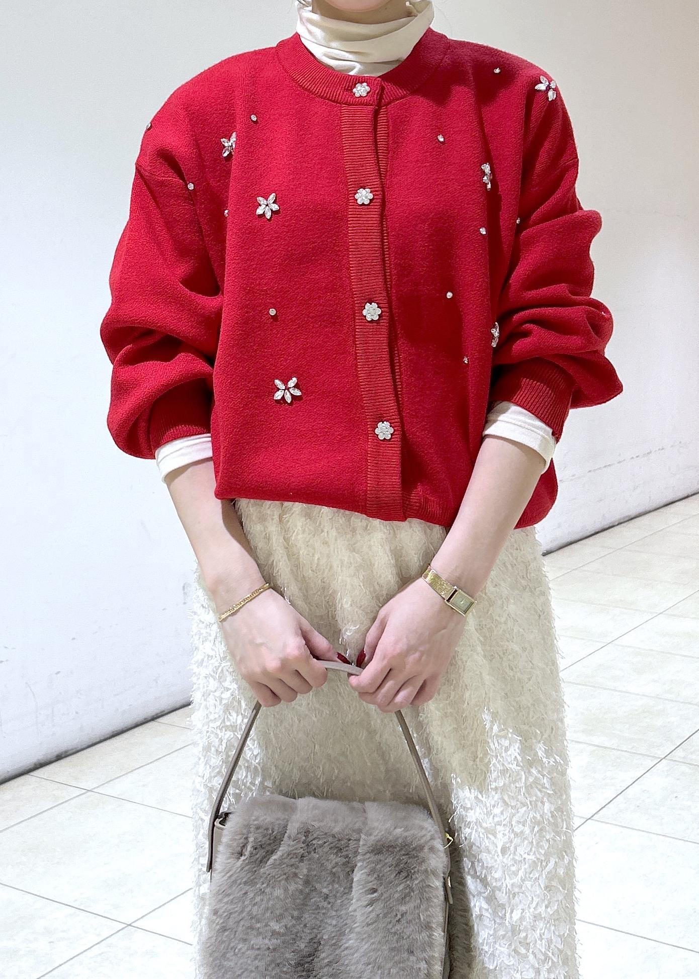 ROPÉ PICNICビジューニットカーディガンレッド / F¥5,995レビュービジューのキラキラがホリデーシーズンにぴったりなニットです♪