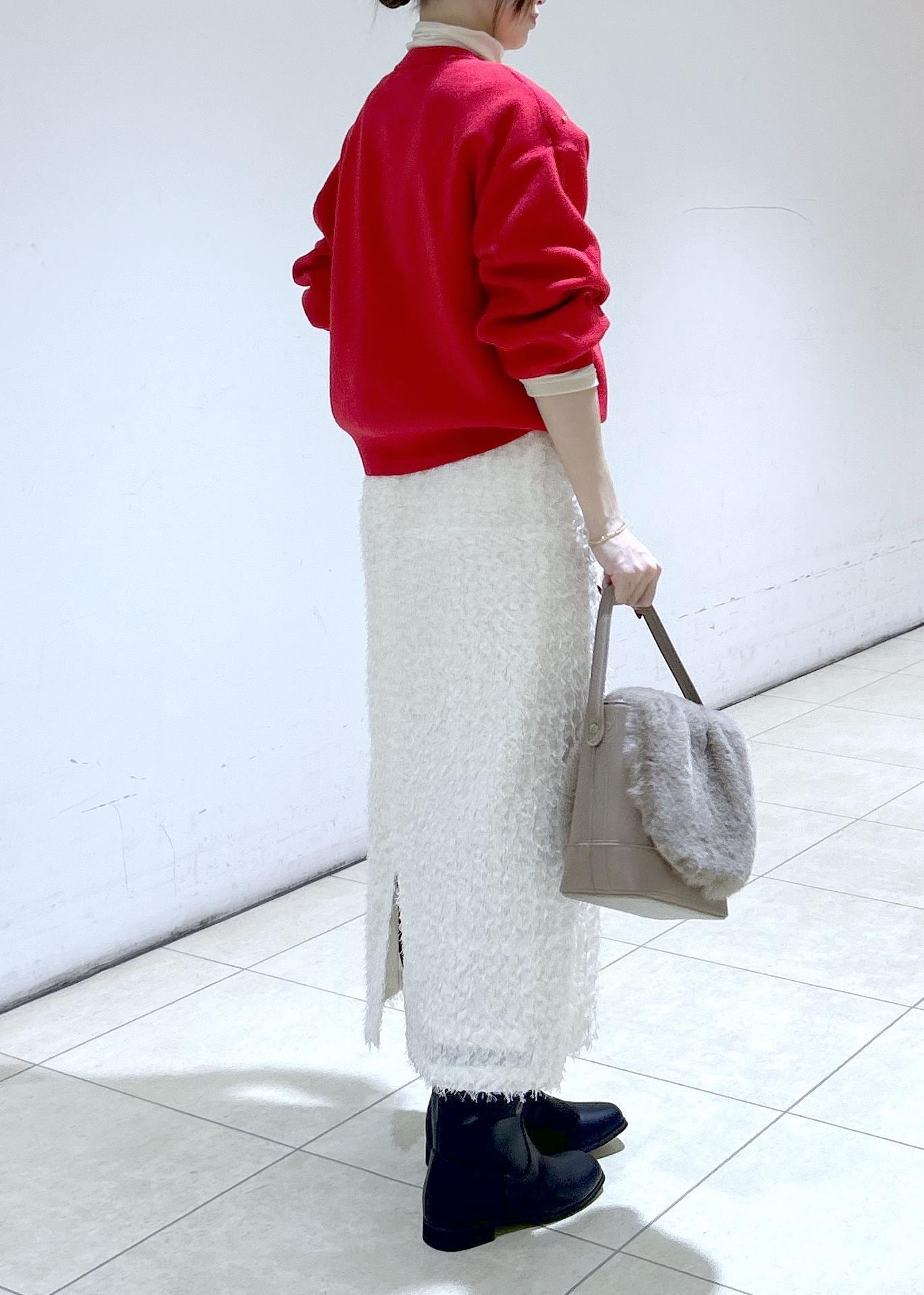 着丈腰回りくらいになり、スカート履いた時でもスッキリ着用頂けます。 -
