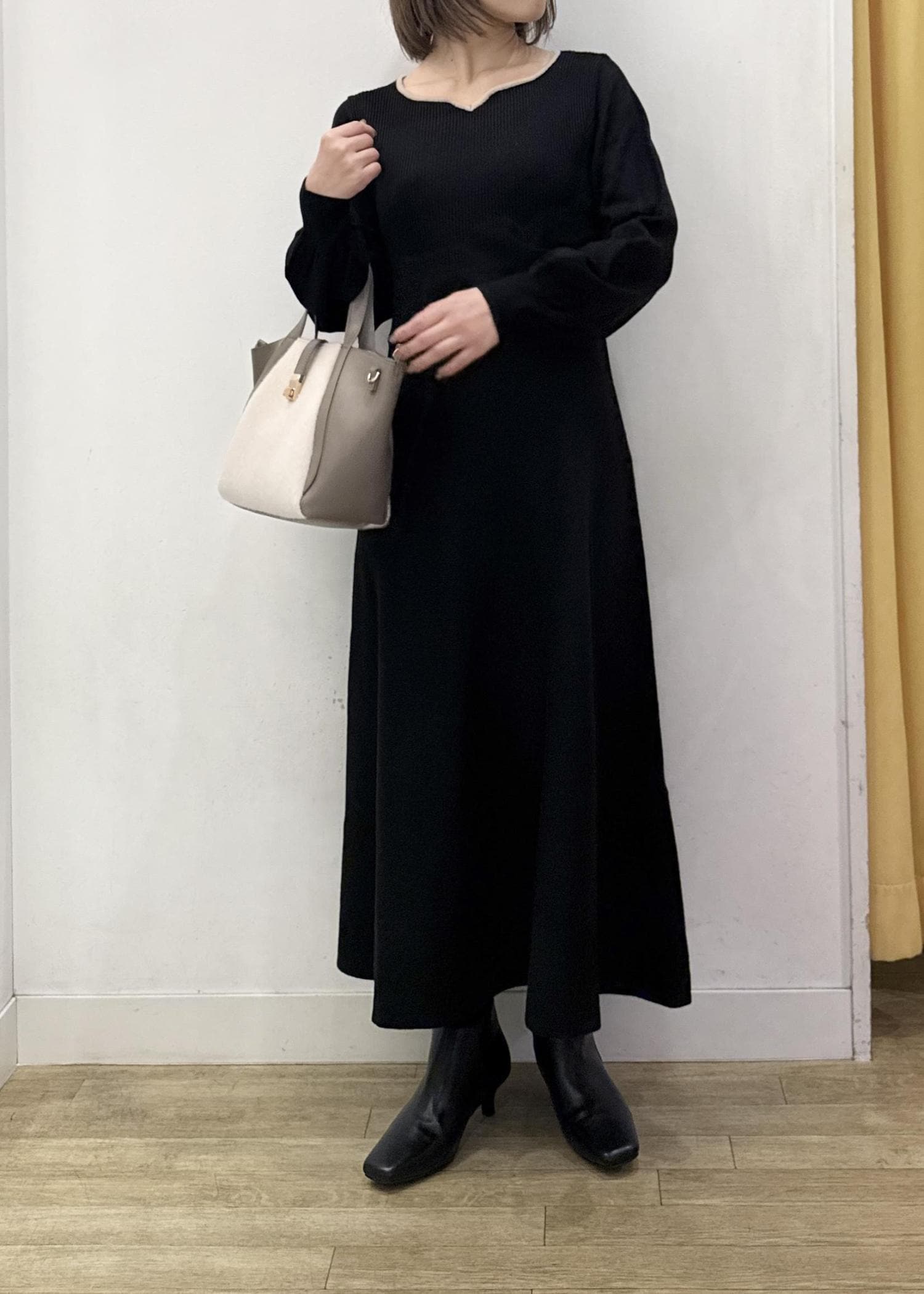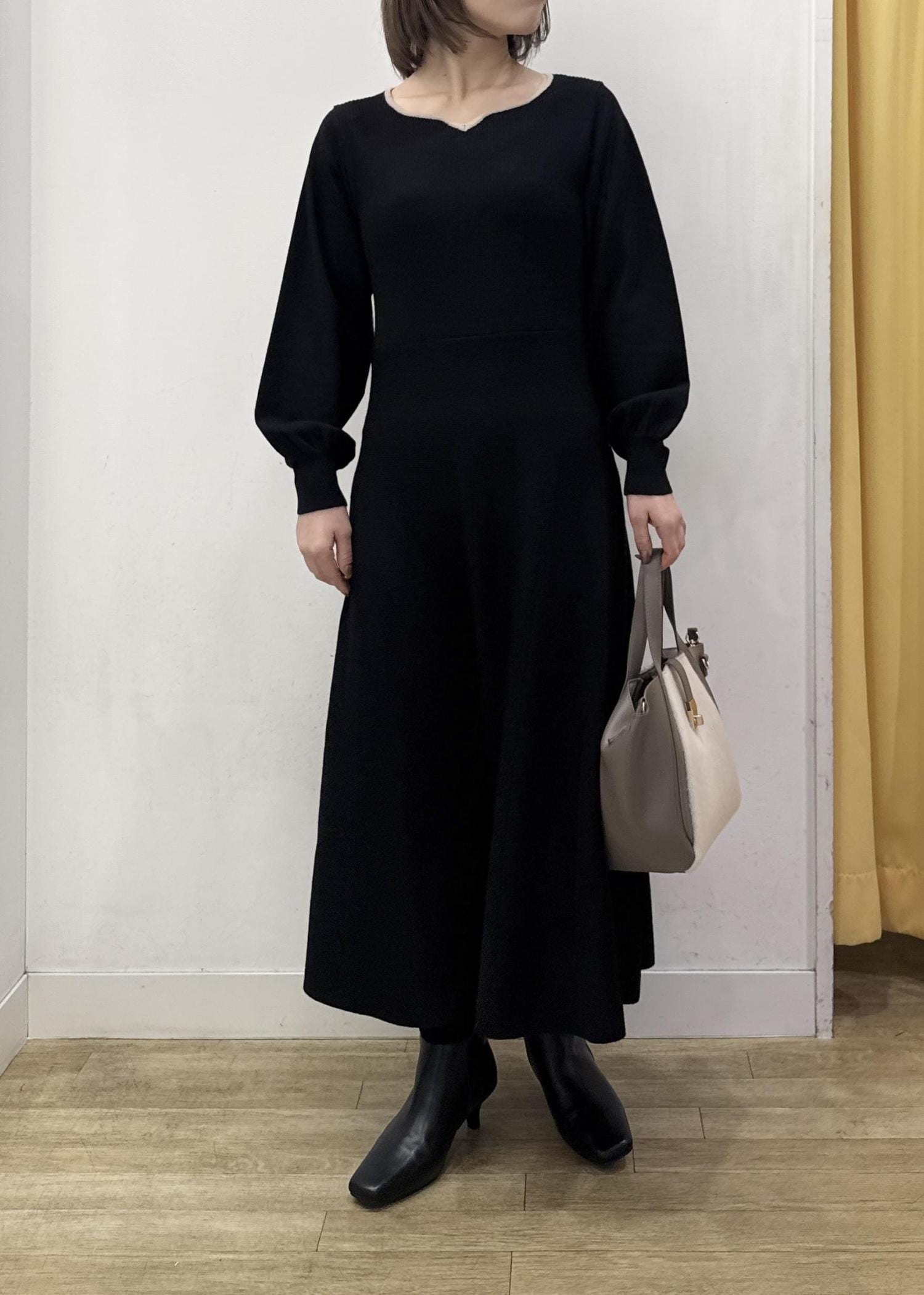 ROPÉ PICNICハートネックニットワンピースブラック / S¥7,491レビューSサイズでジャストサイズ、Mサイズで少しゆとりがあるのでインナー合わせもしやすいサイズ感でした。
