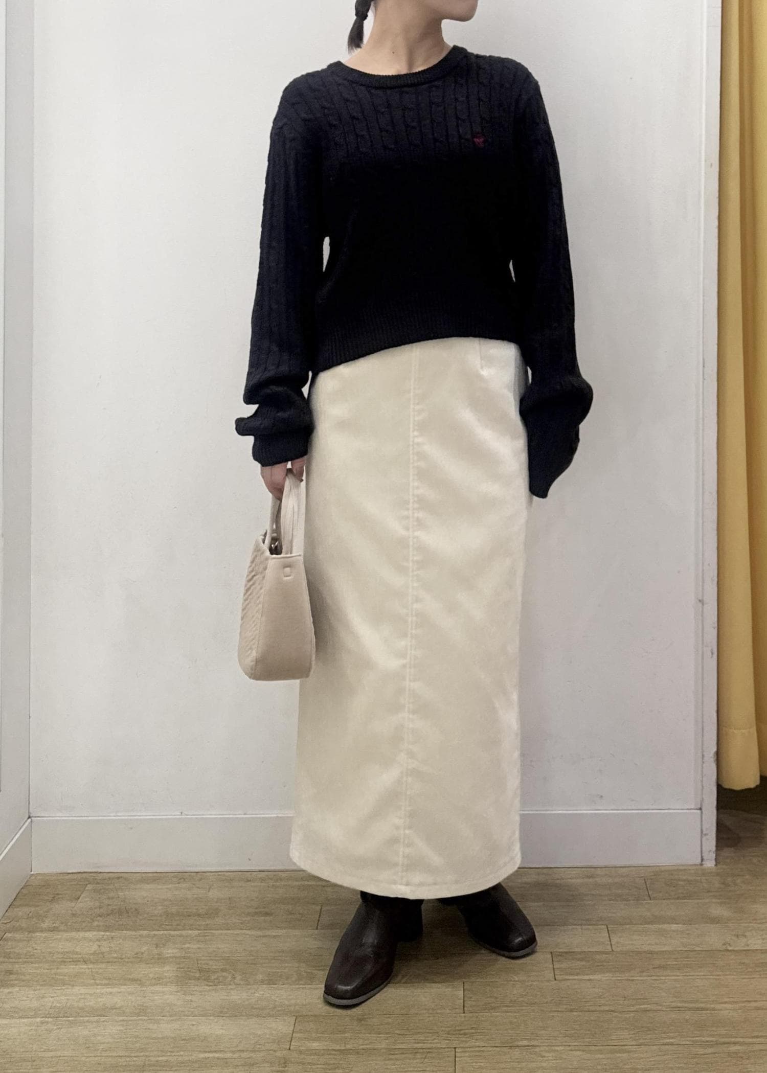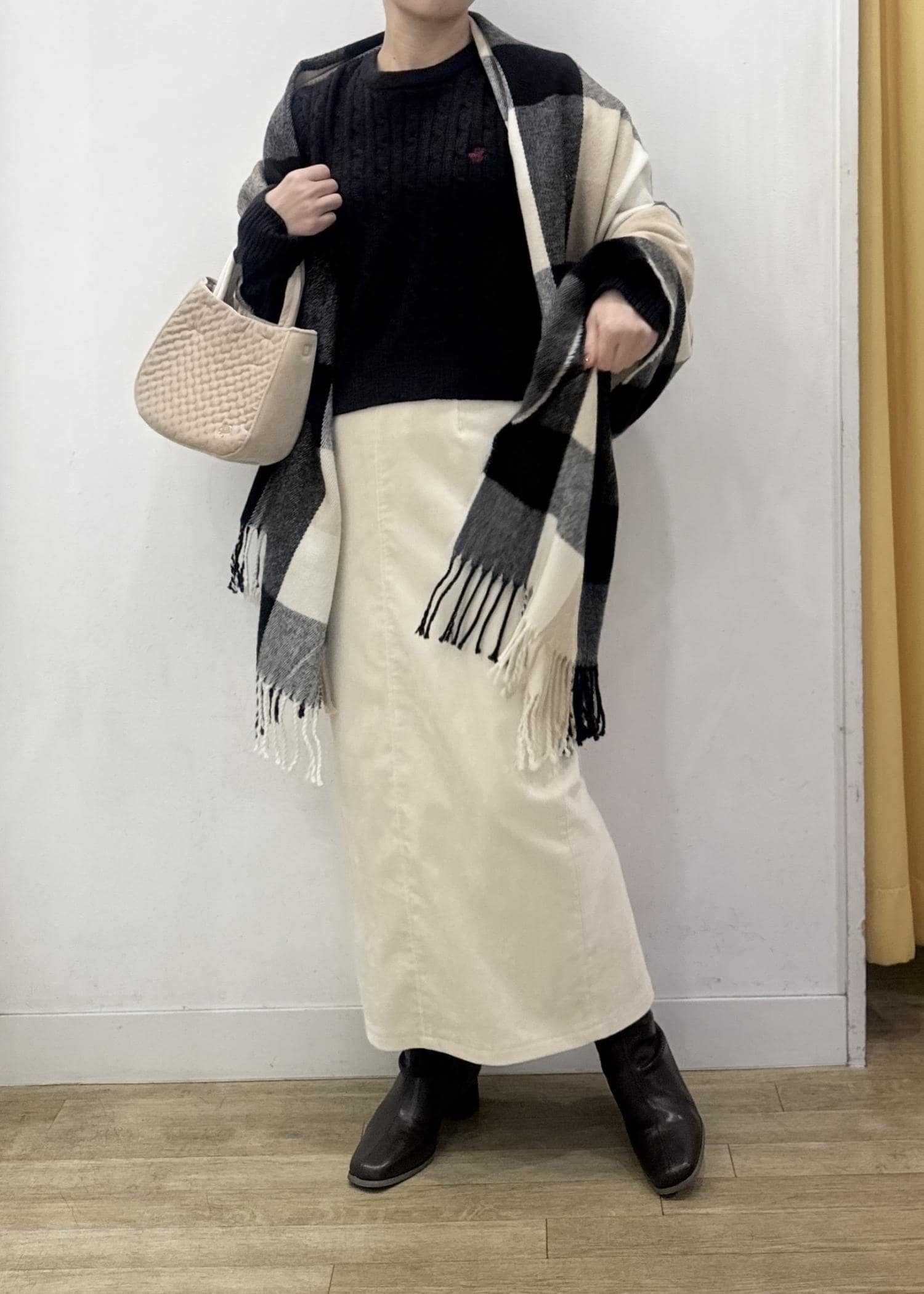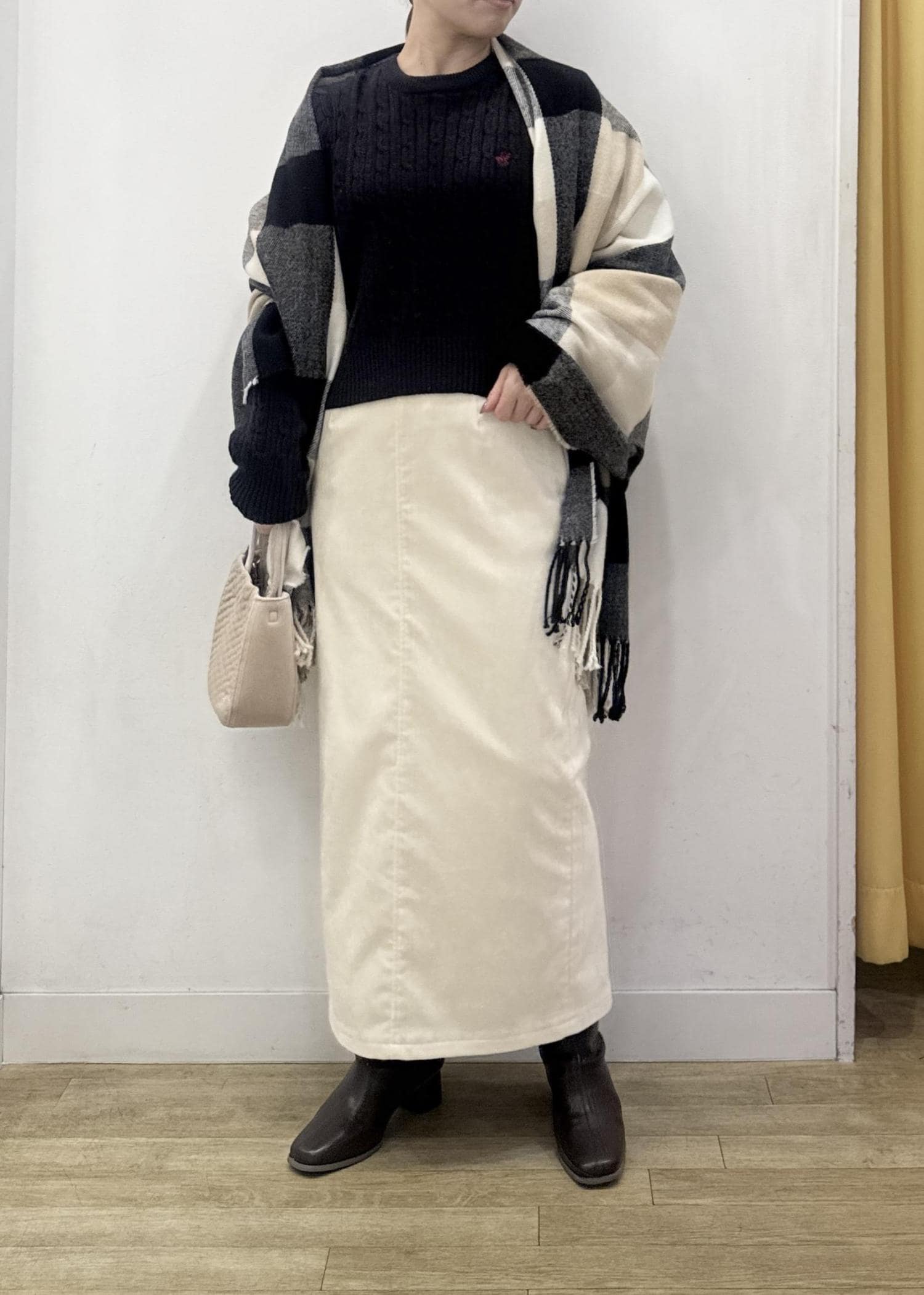 ゆるっとニット合わせでカジュアル見せや、スッキリとしたトップスと合わせてちょっとキレイ見えするコーディネートにもオススメです。 -