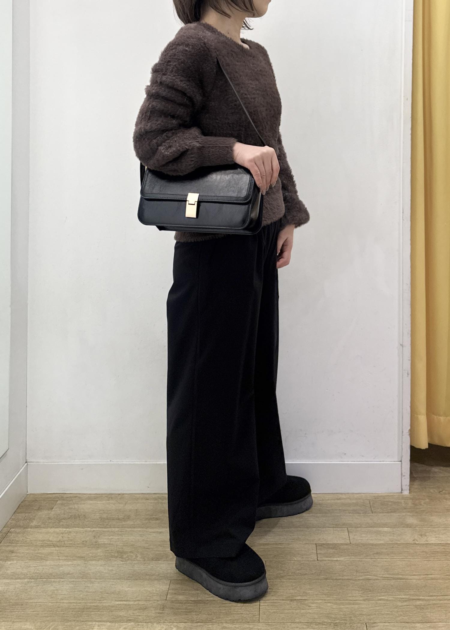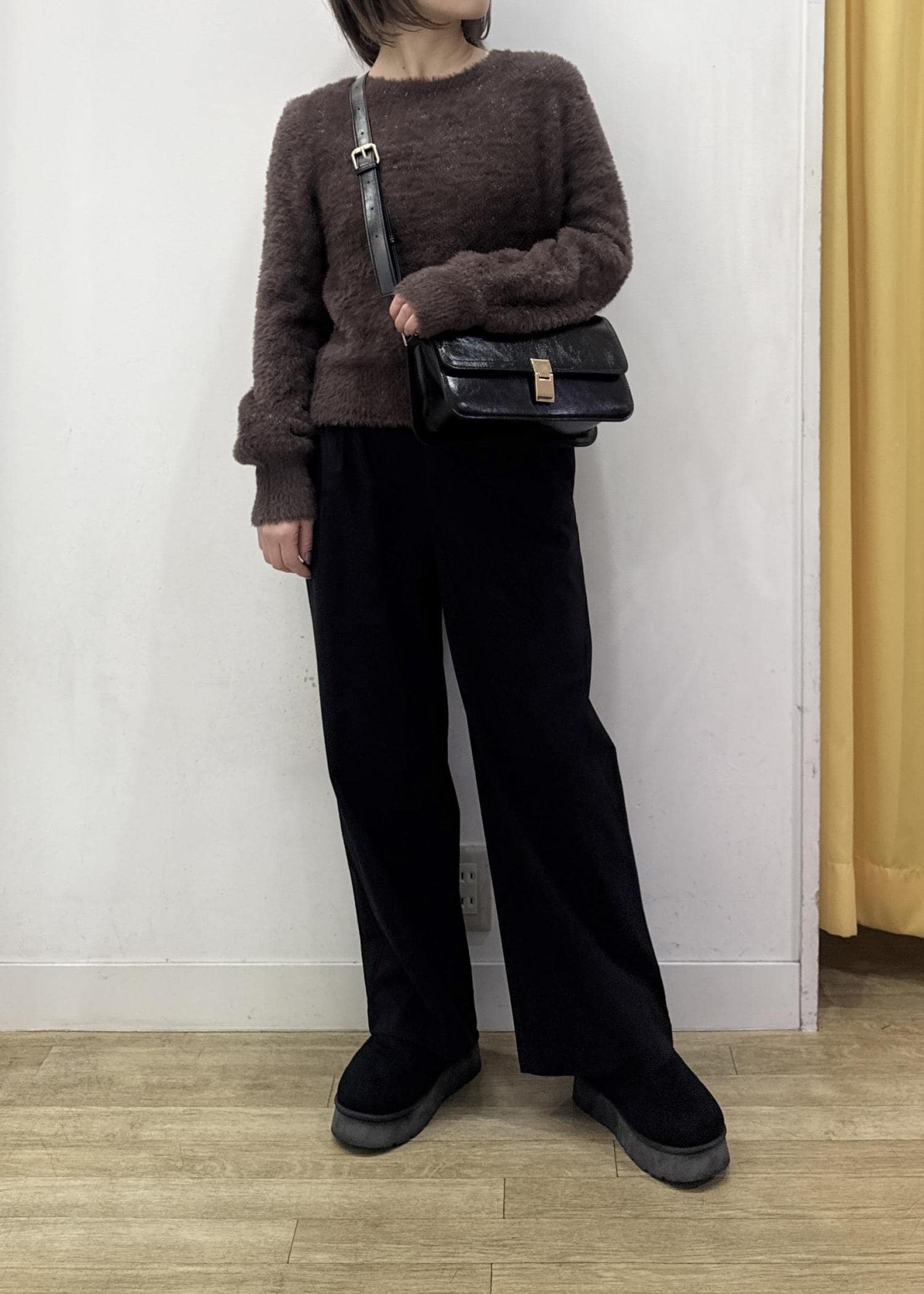 ショート丈で、もこもこニットでもスッキリとした印象で着ていただけます。 -
