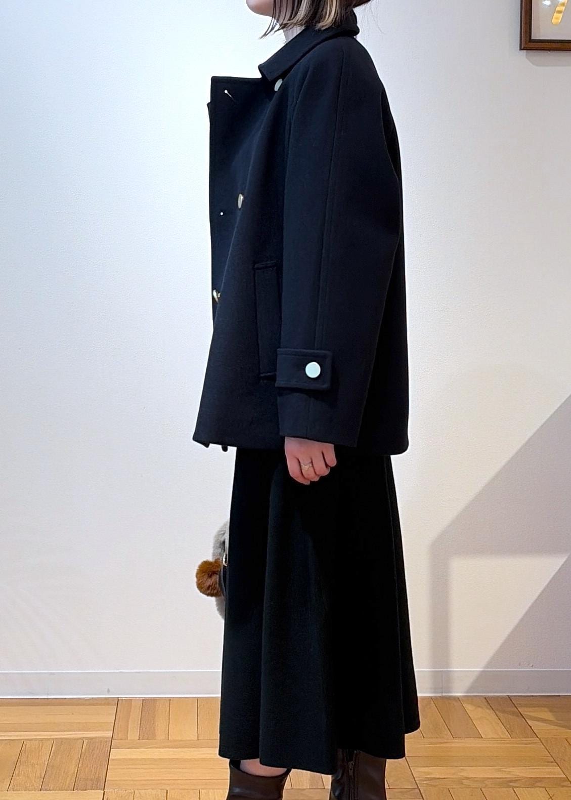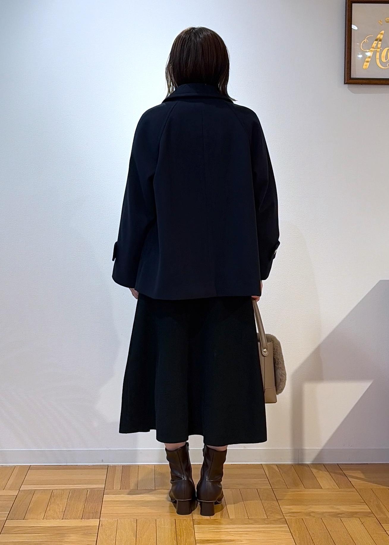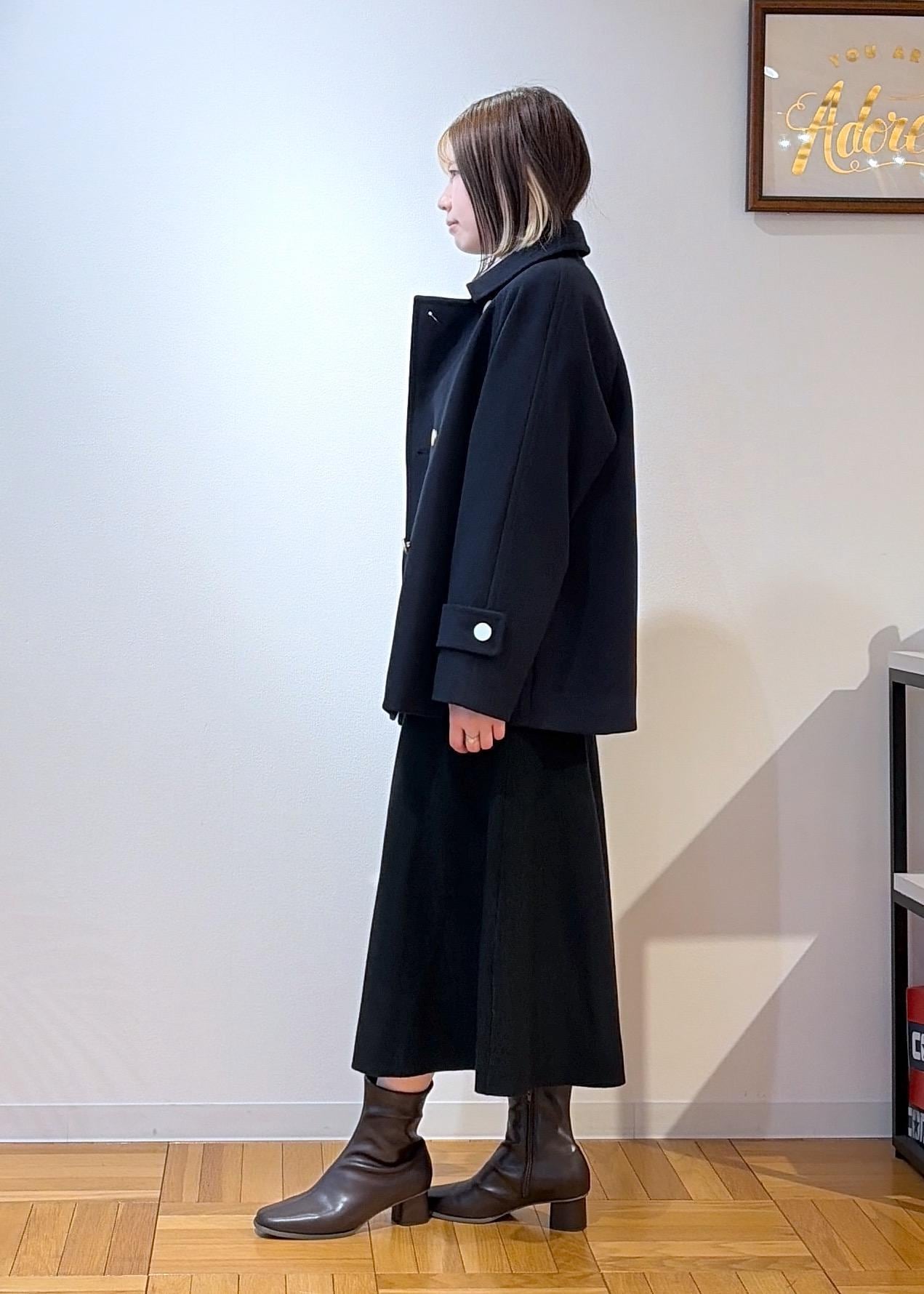 黒色のワンピースにネイビーのアウターで落ち着いたカラーの合わせなので、バッグは冬感+存在感のある物を選びました◎