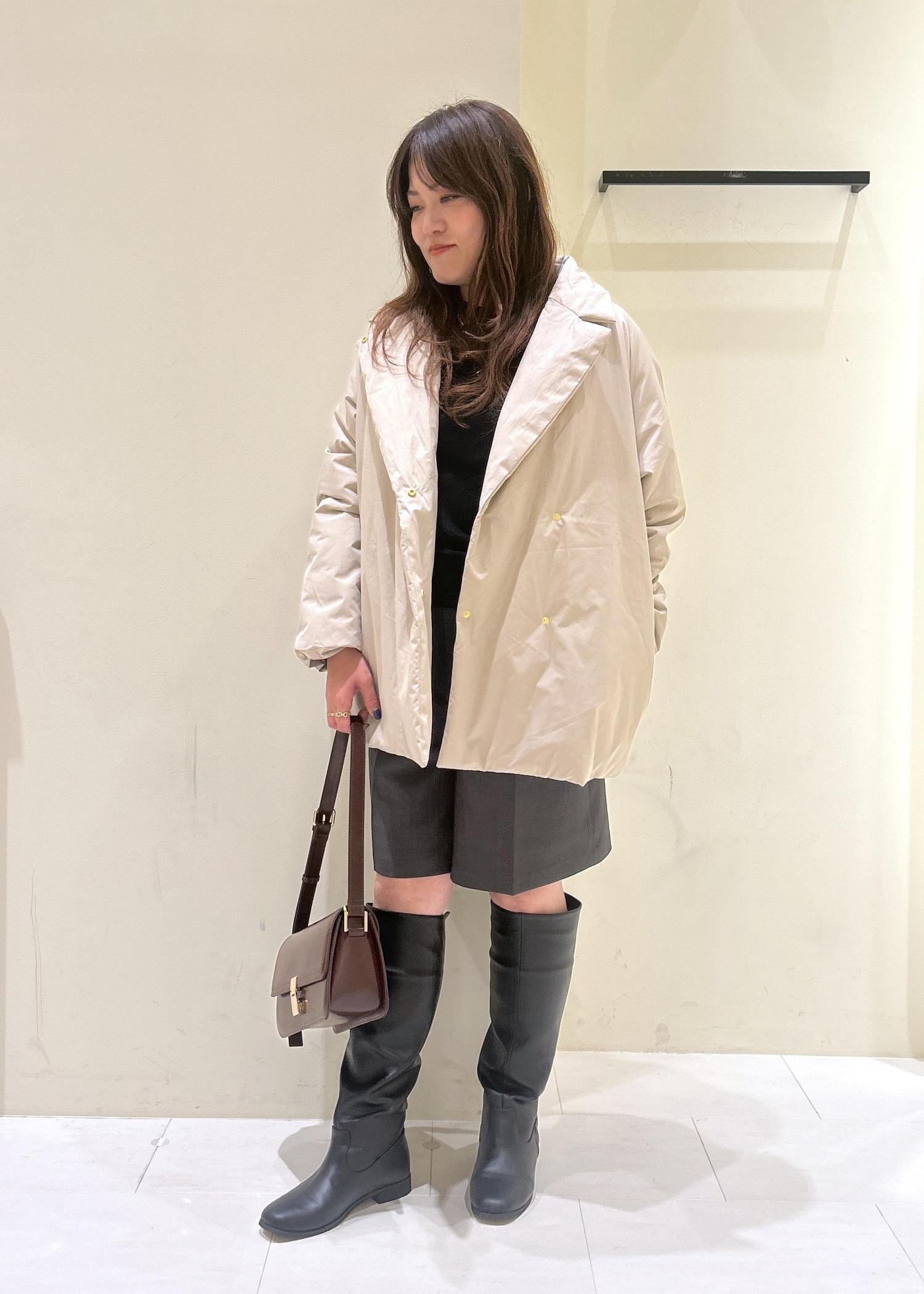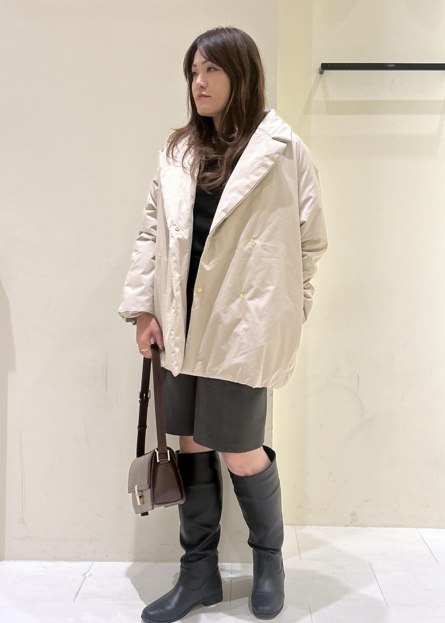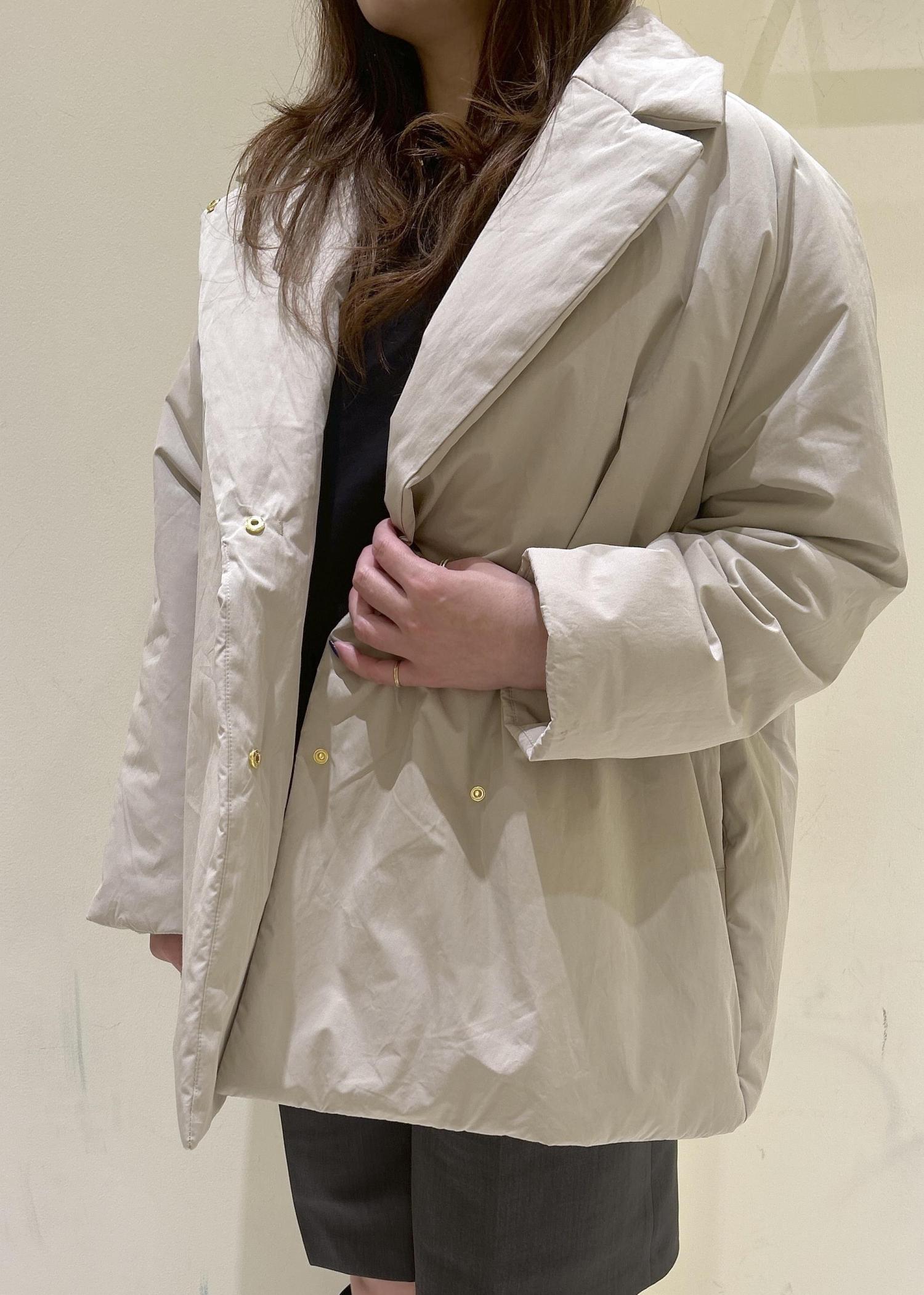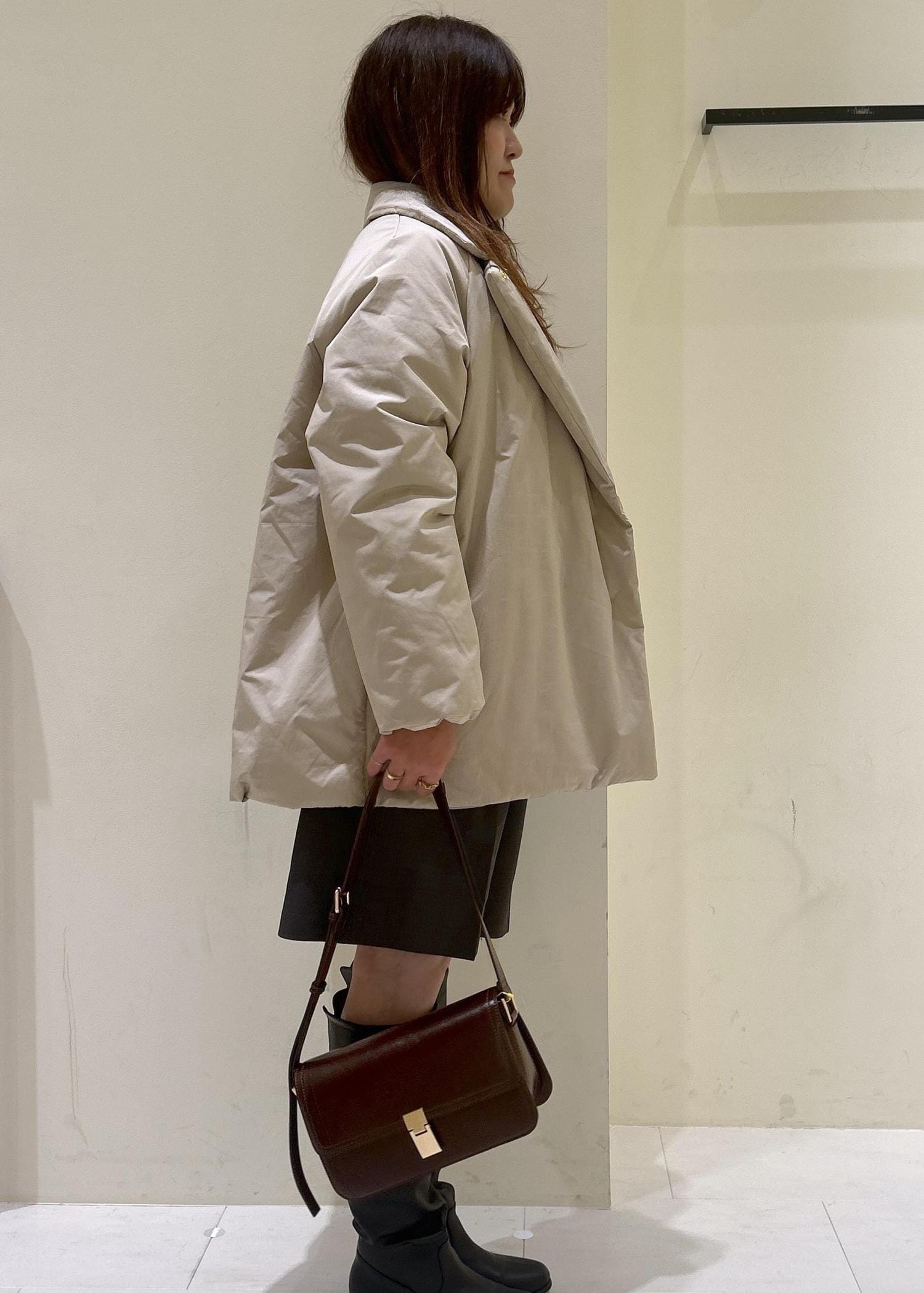 中綿のテーラード型のオーバーサイズコート合わせのシルエットがとても可愛いです!