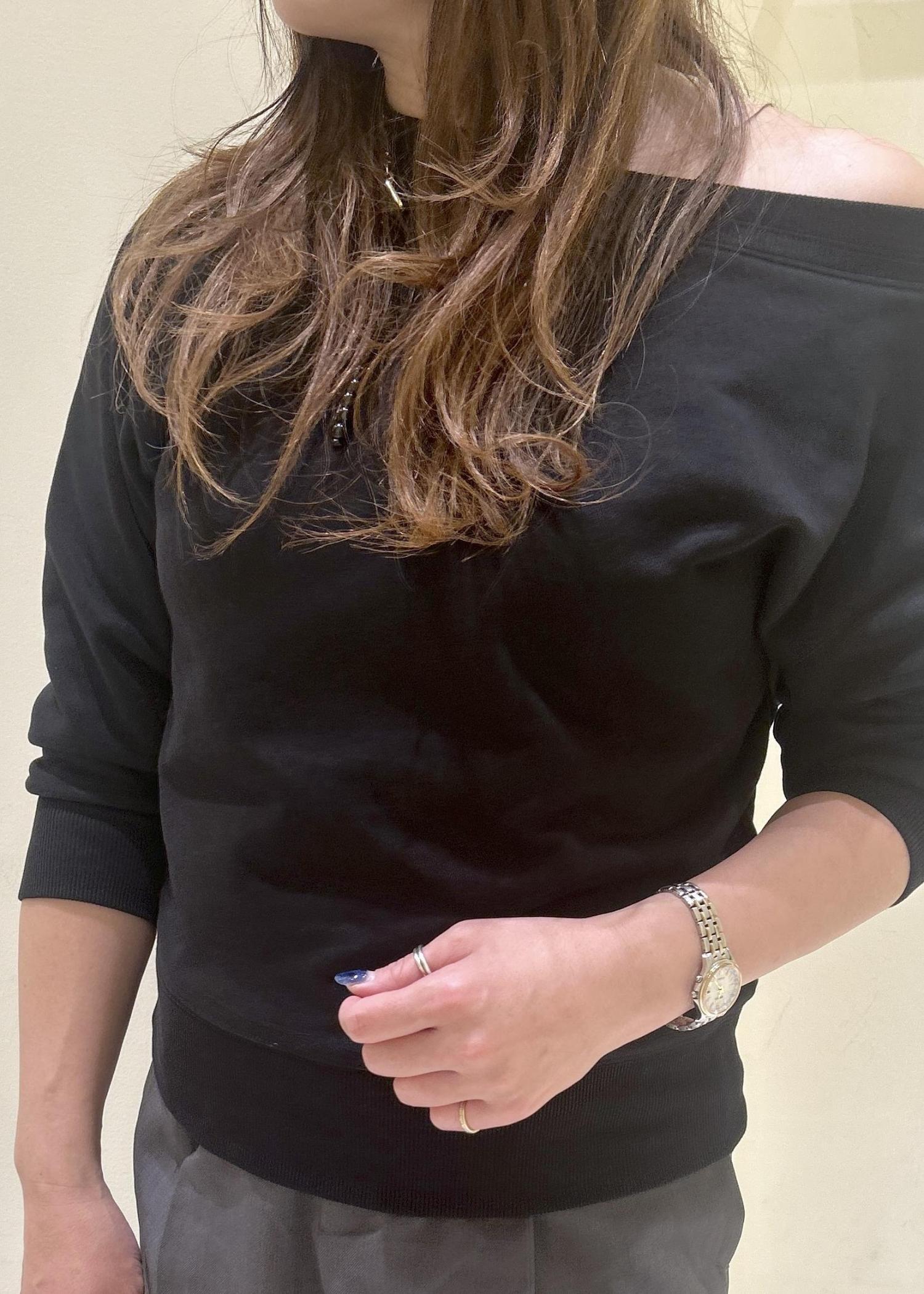 オフショル・ワンショルでカジュアル過ぎず女性らしさをプラスしたスウェットトップスです。