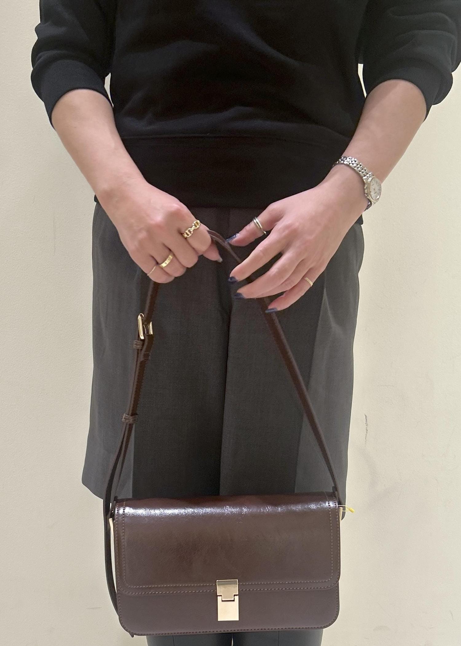 マットなレザー調素材で綺麗めにもカジュアルにも使いやすいです。